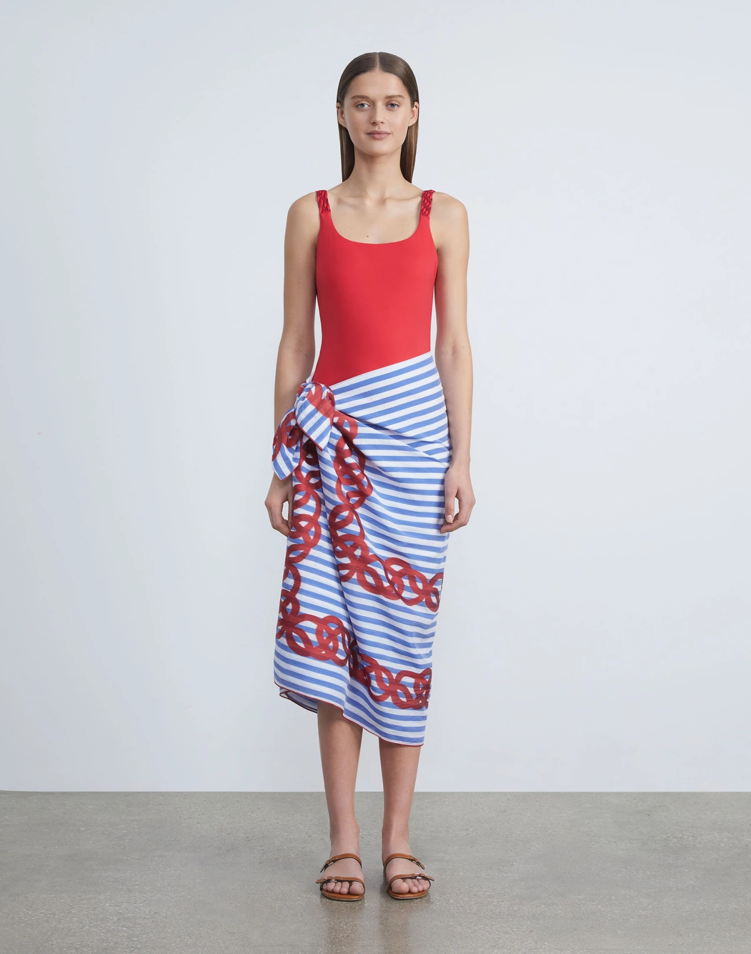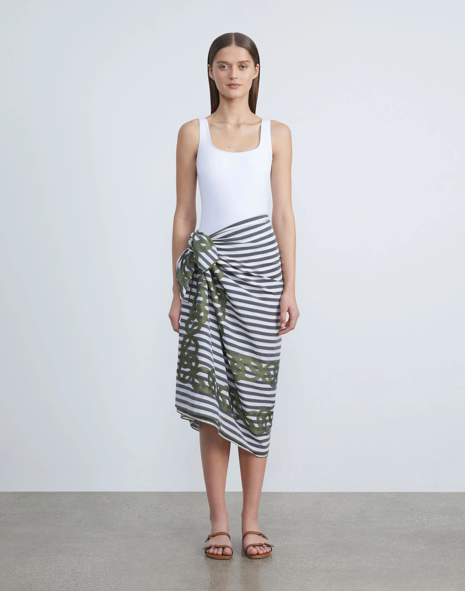 Crafted in Italy, this chic poolside pareo reinterprets the L148 8 Knot icon in a nautical-inspired link motif on bold, graphic stripes. Part of the new L148 Swim collection, it’s unexpectedly light in an airy blend of Italian cotton and silk, and cut in a generous shape for versatile styling.