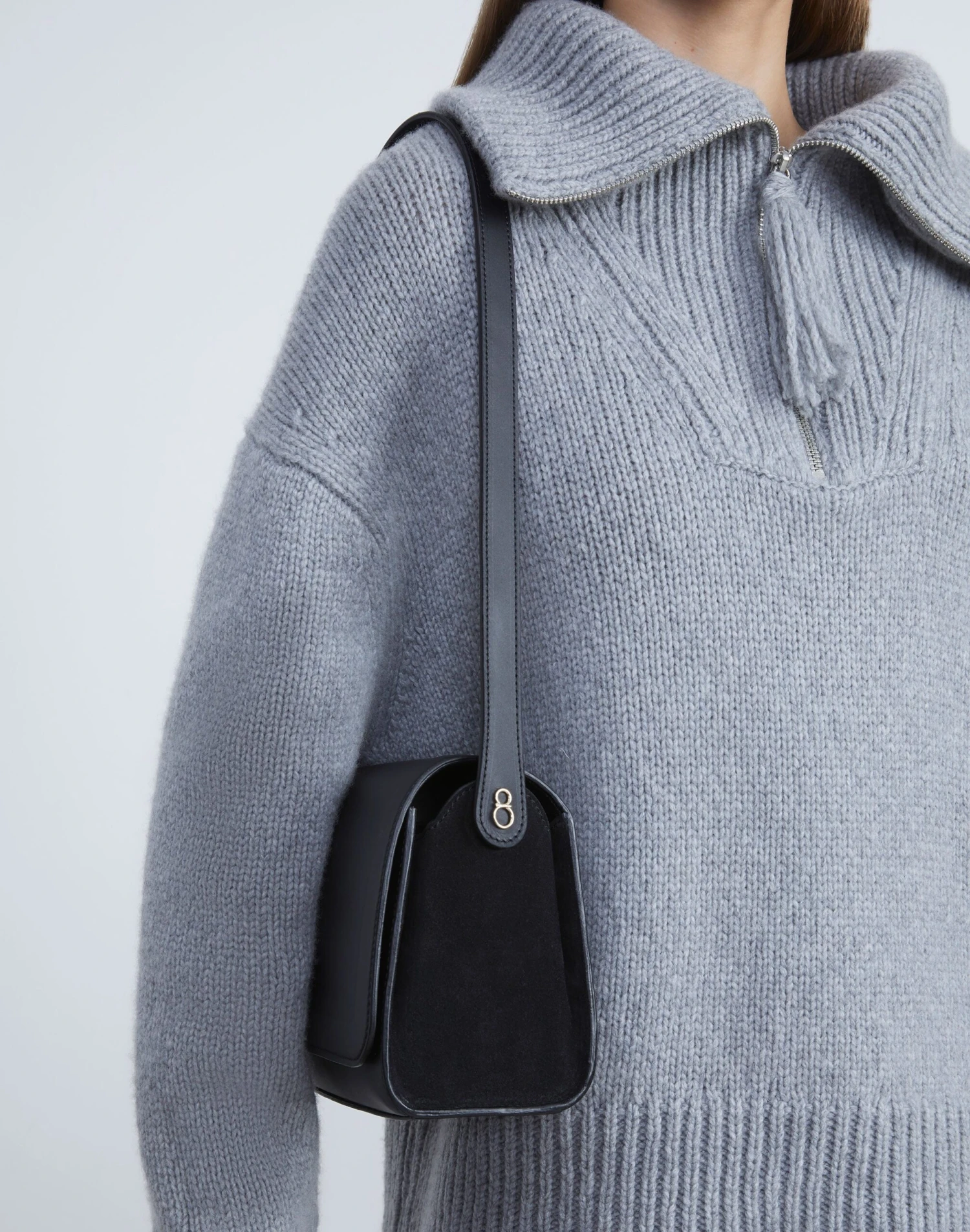 Rooted in traditional Italian craftsmanship, the 8 Knot Saddle Bag is expertly crafted from smooth Italian calfskin leather in a structured shape, with a sizeable interior and suede side gussets that fold out for ease and volume. An adjustable strap is punctuated with subtle 8 Knot hardware and L Beam embossed rivets, while intricate topstitching highlights the artisanship behind the design.