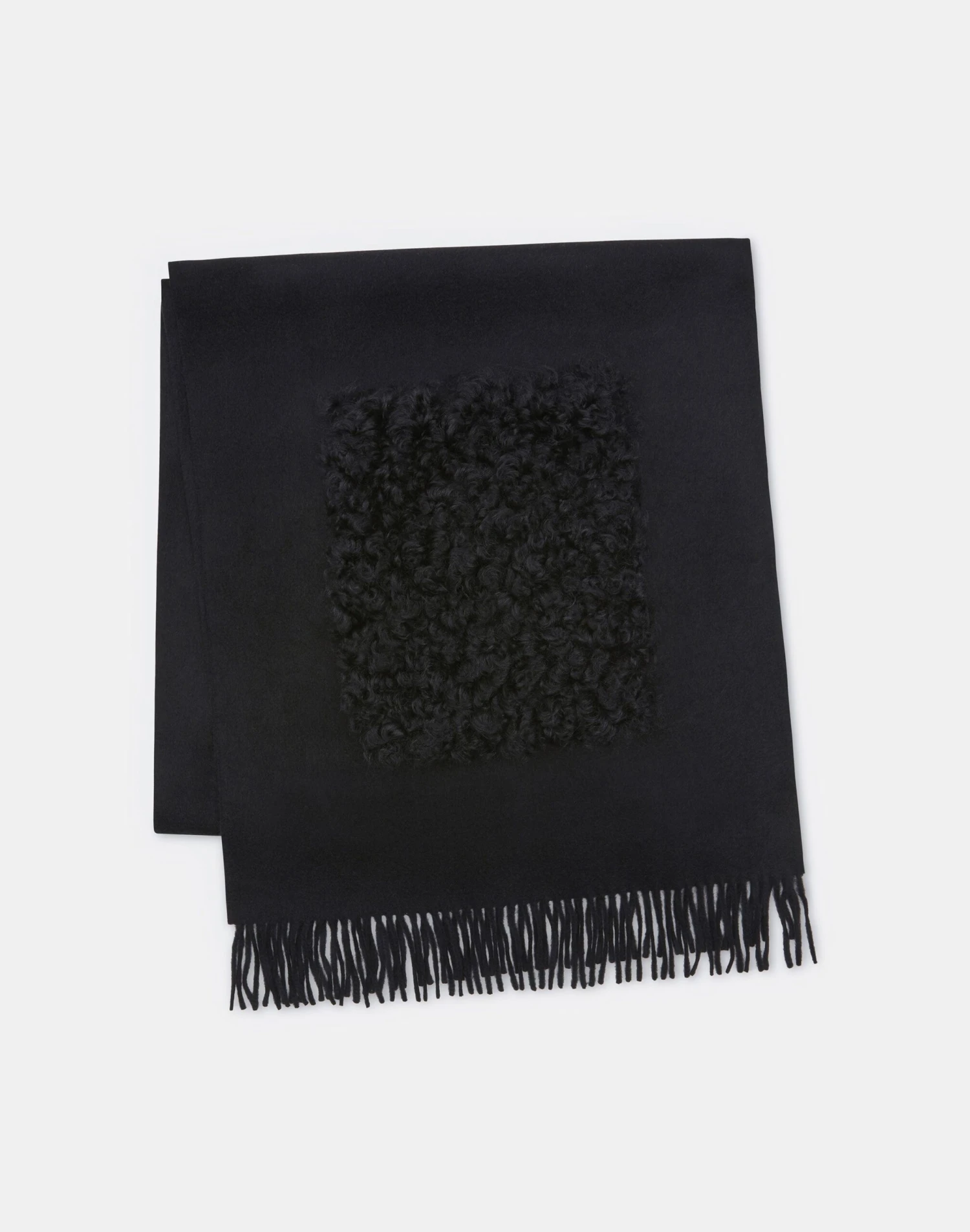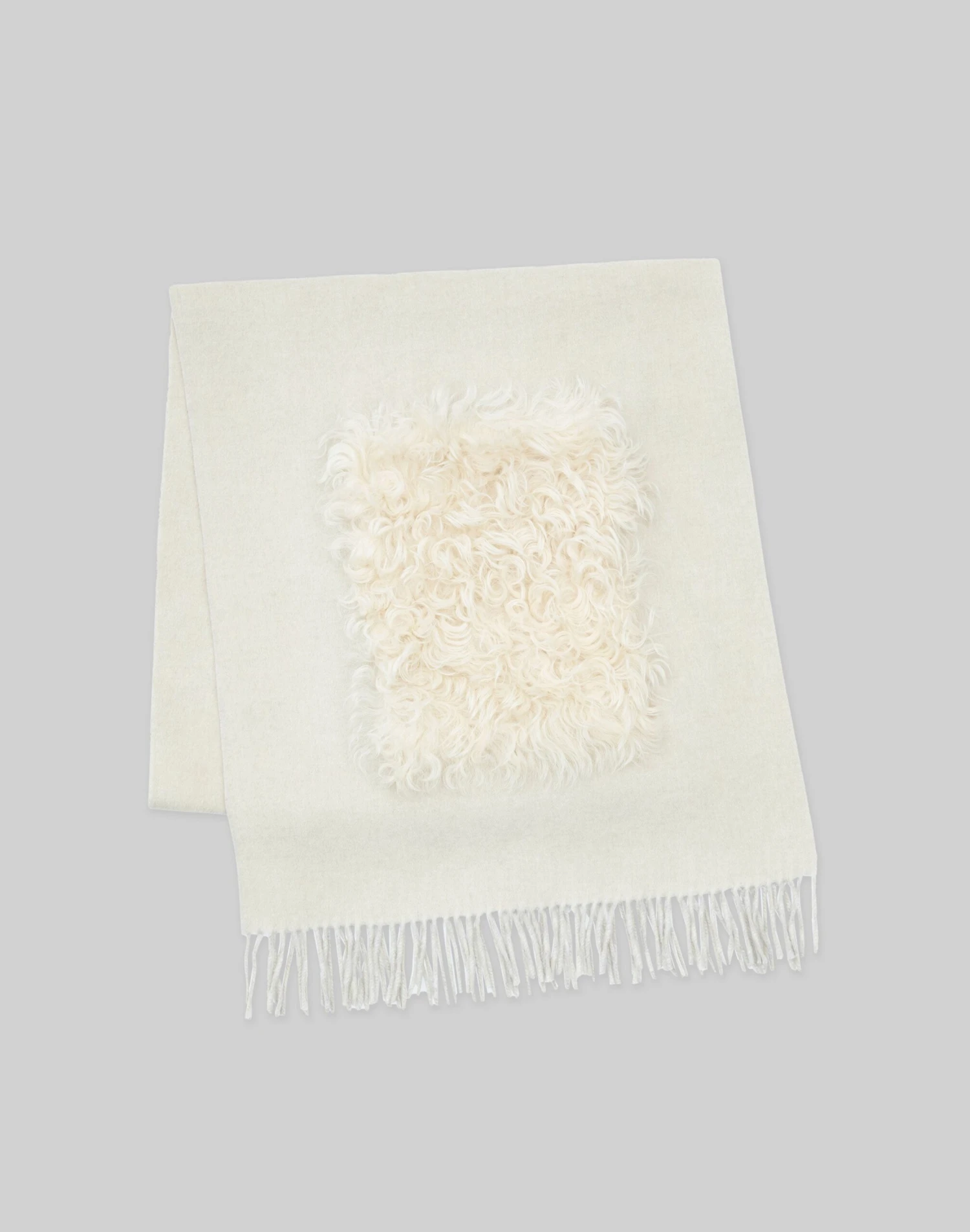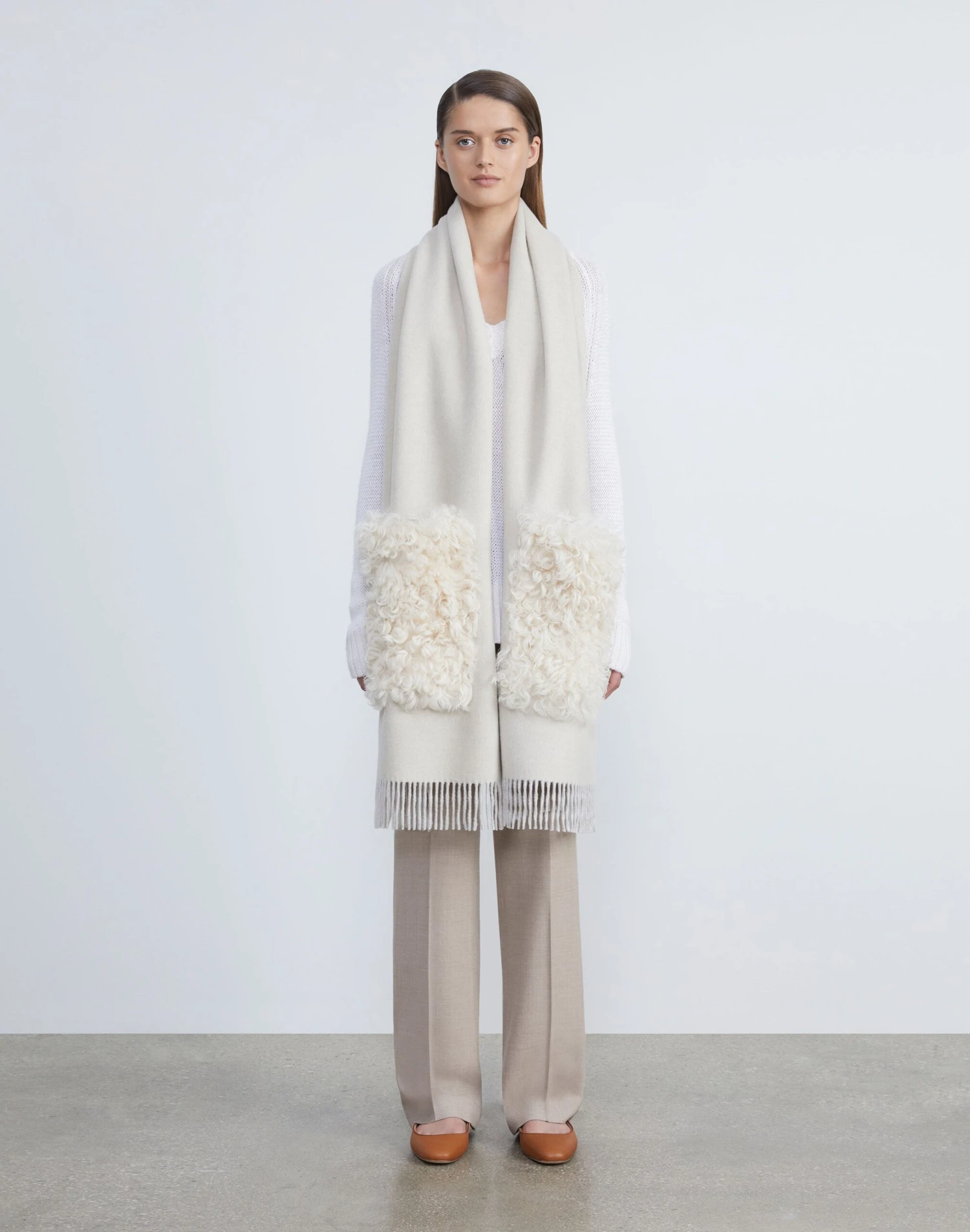The ultimate cold weather finishing accent, this signature L148 pocket shawl is luxuriously crafted in soft cashmere and trimmed with plush shearling along the pockets. It’s designed in an elongated shape made for easy layering, and finished with fringe-trimmed edges for an added element of texture.