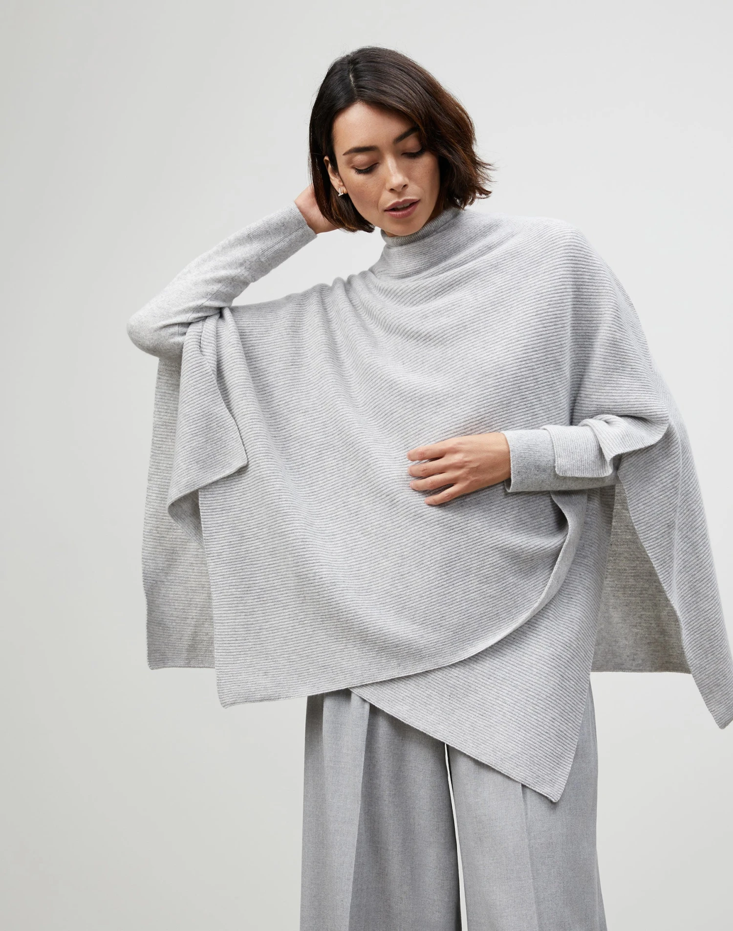 Beautifully wrapped around you and held in place with a button, or gently thrown over your shoulders, this cashmere cape is lightweight and soft to the touch. Perfectly layered over your favorite dinner outfit.