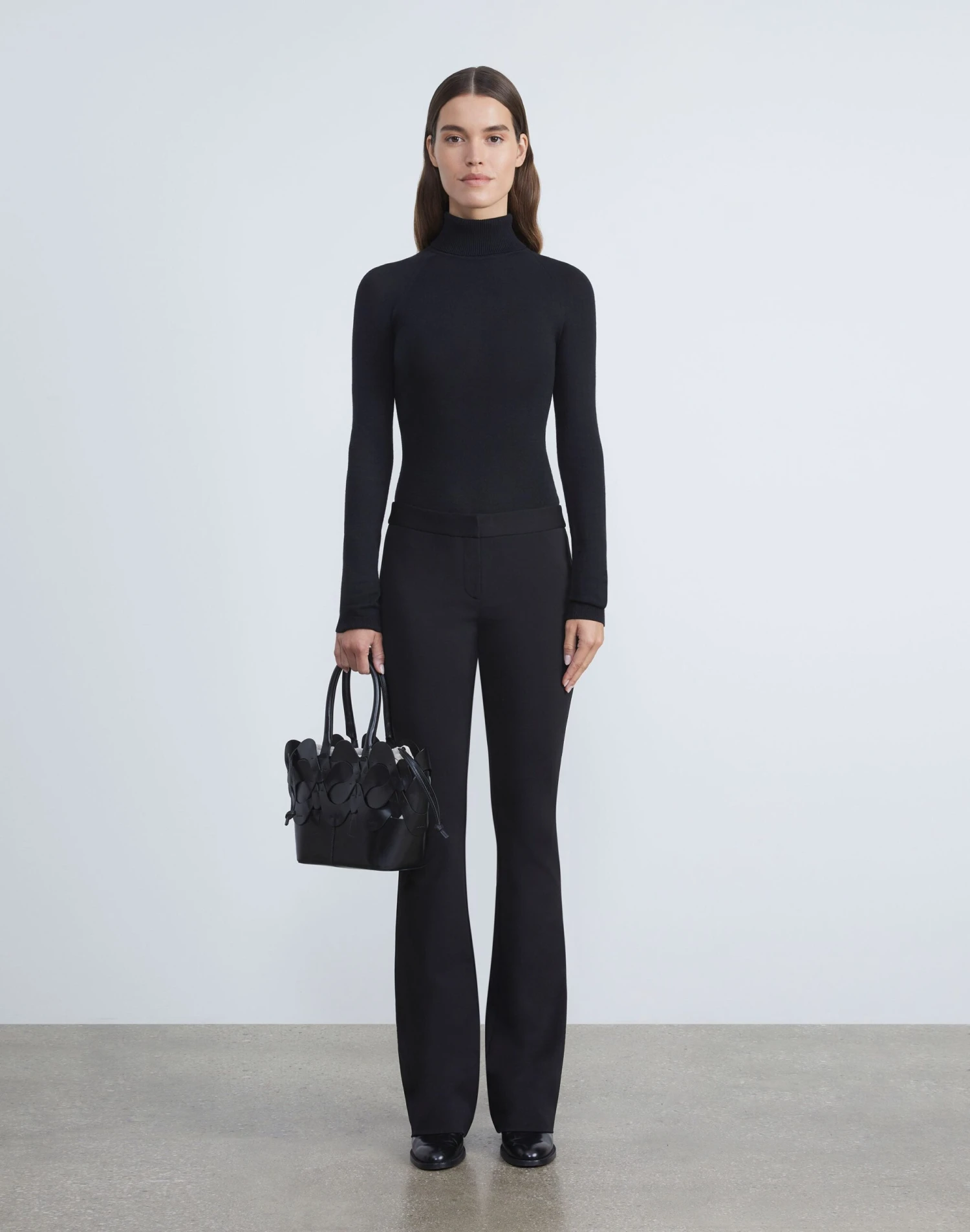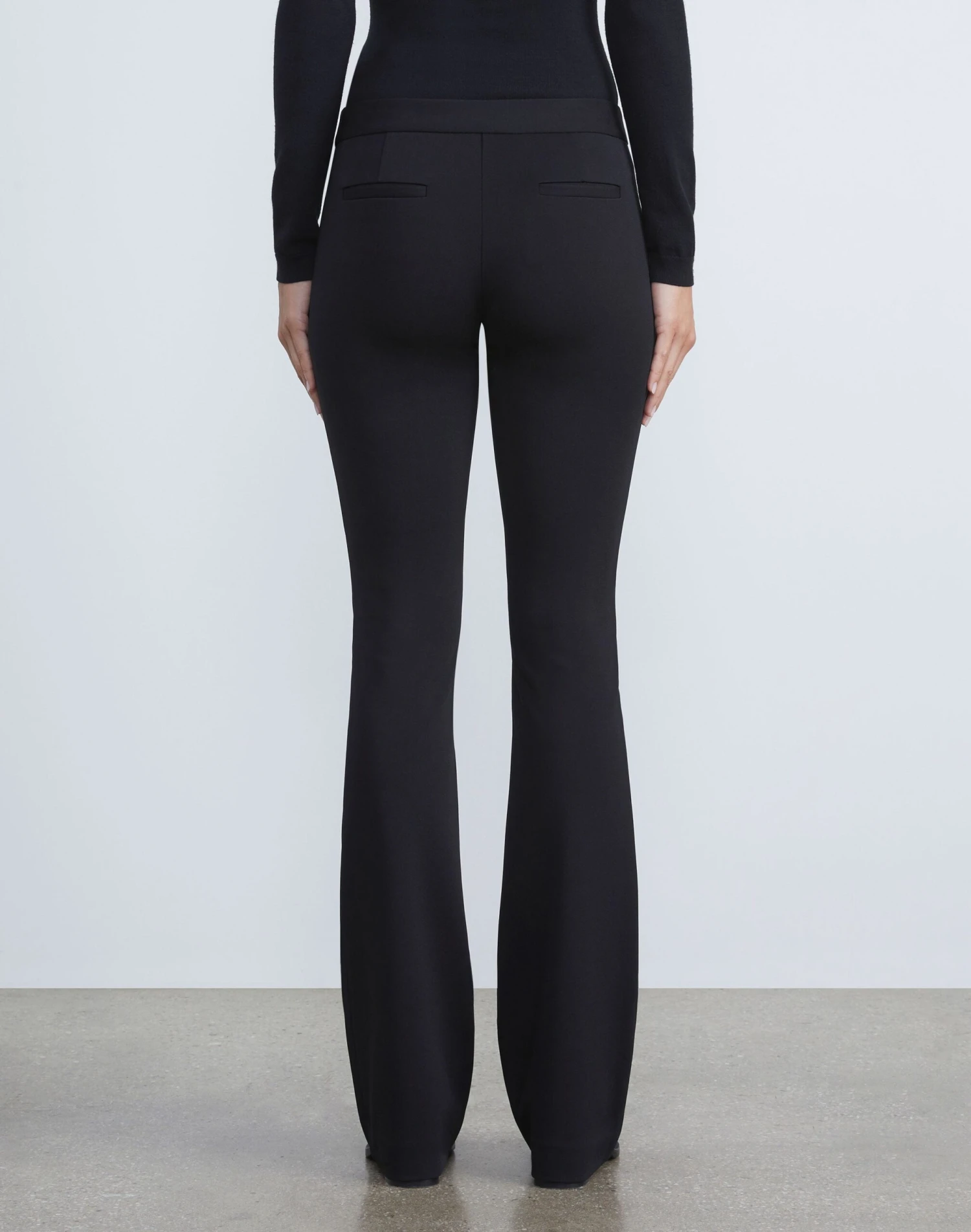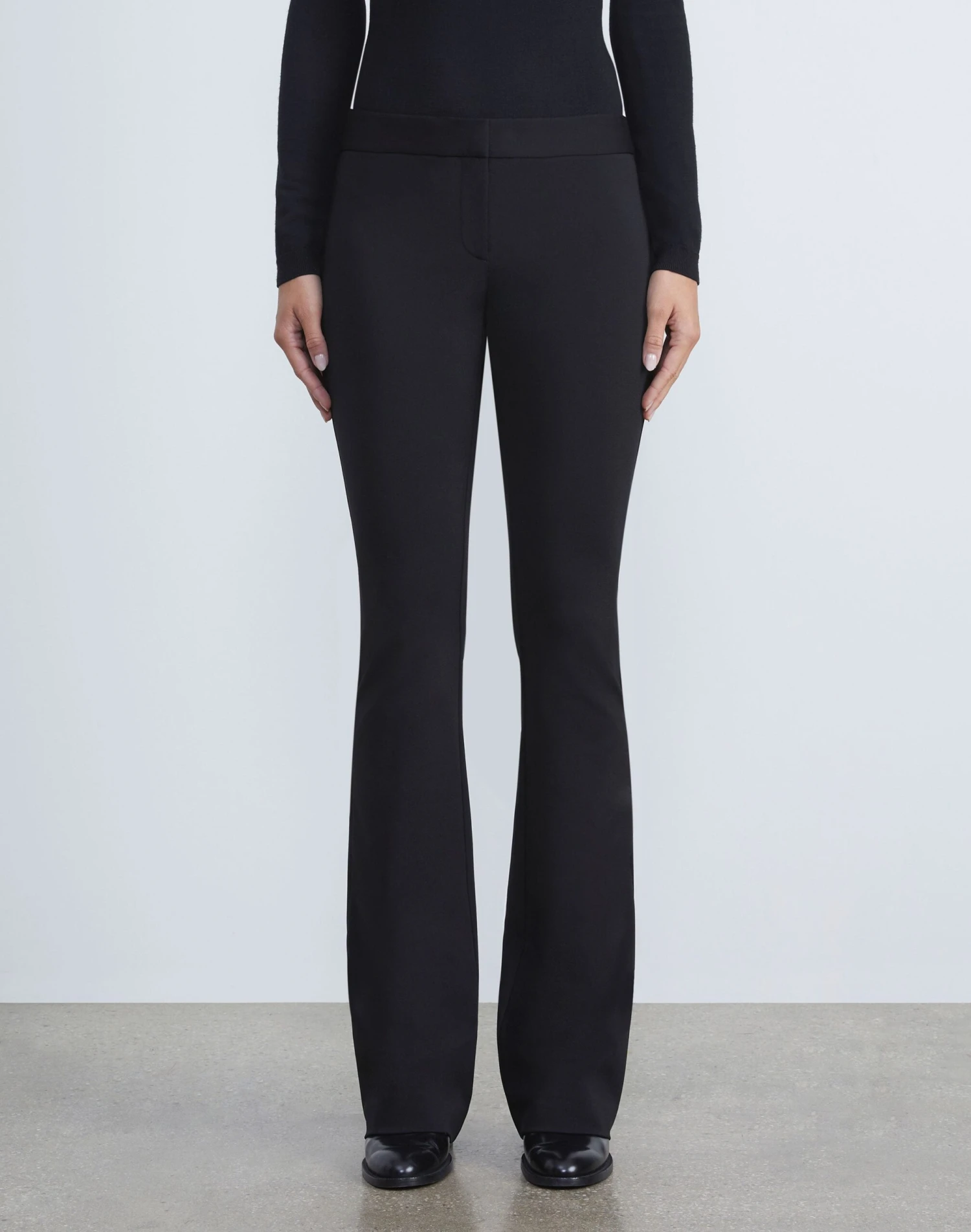 Meticulous tailoring and precise proportions combine in the Waldorf pant, expertly cut for a close fit with an elongated length and sharply cut, flared hem. It’s constructed from compact Italian viscose infused with stretch for contouring shape and cleanly finished with a flat waistband and hook & eye closure.