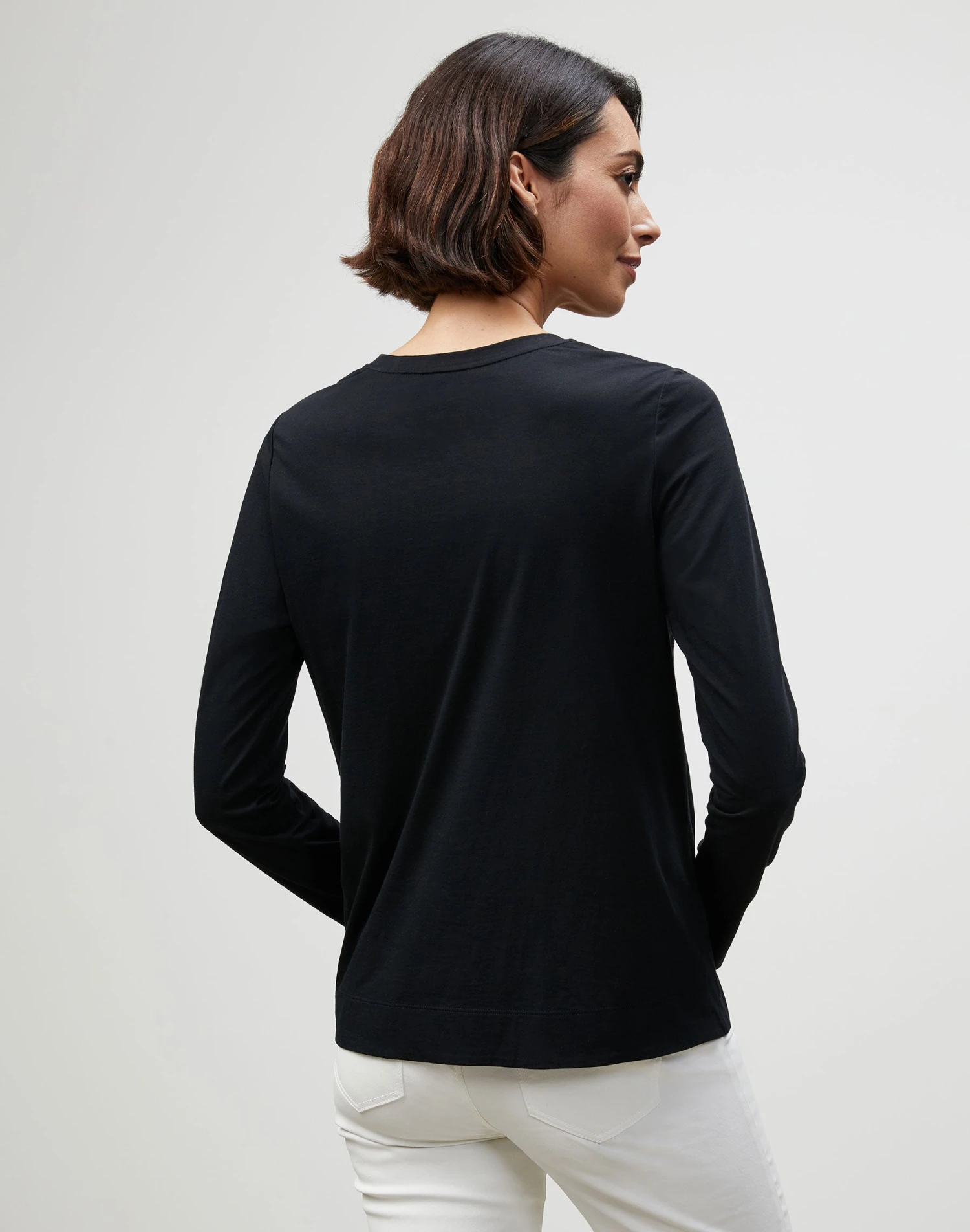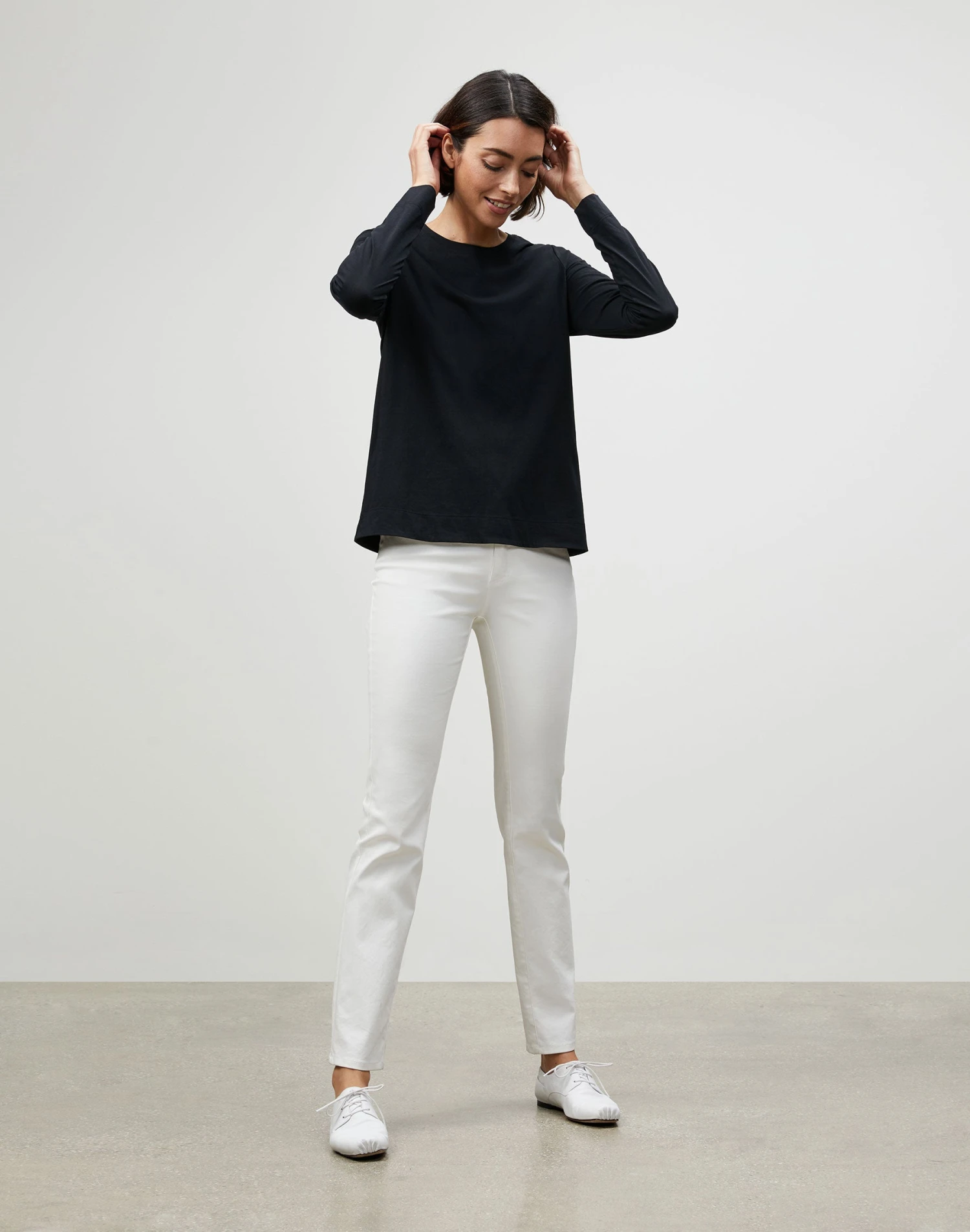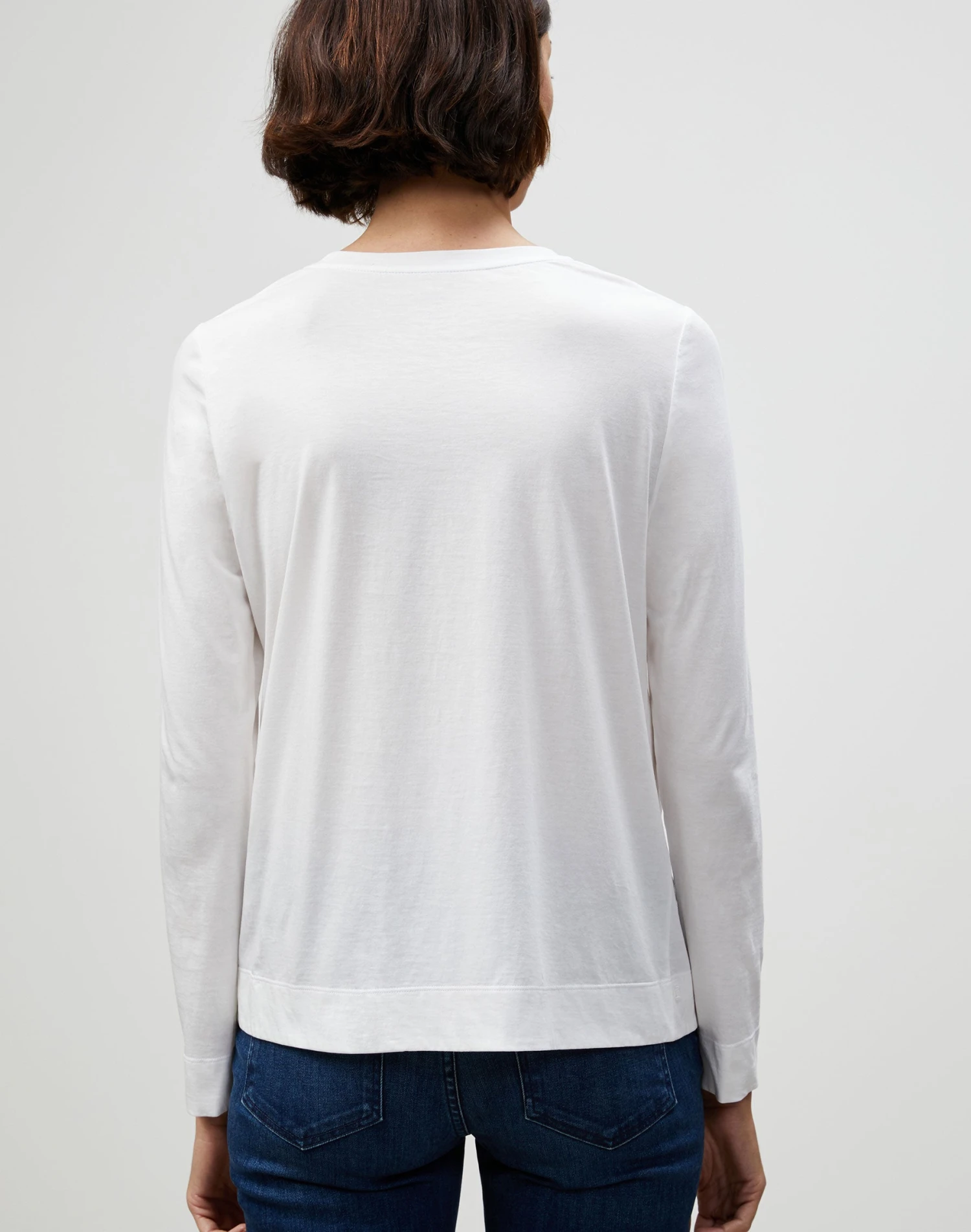 A classic t-shirt structure and crafted from pure comfortable, soft cotton, the Modern Tee is a true closet staple that every woman needs. With long sleeves, a crewneck and slightly below hip length, this piece is endlessly versatile and sophisticated.
