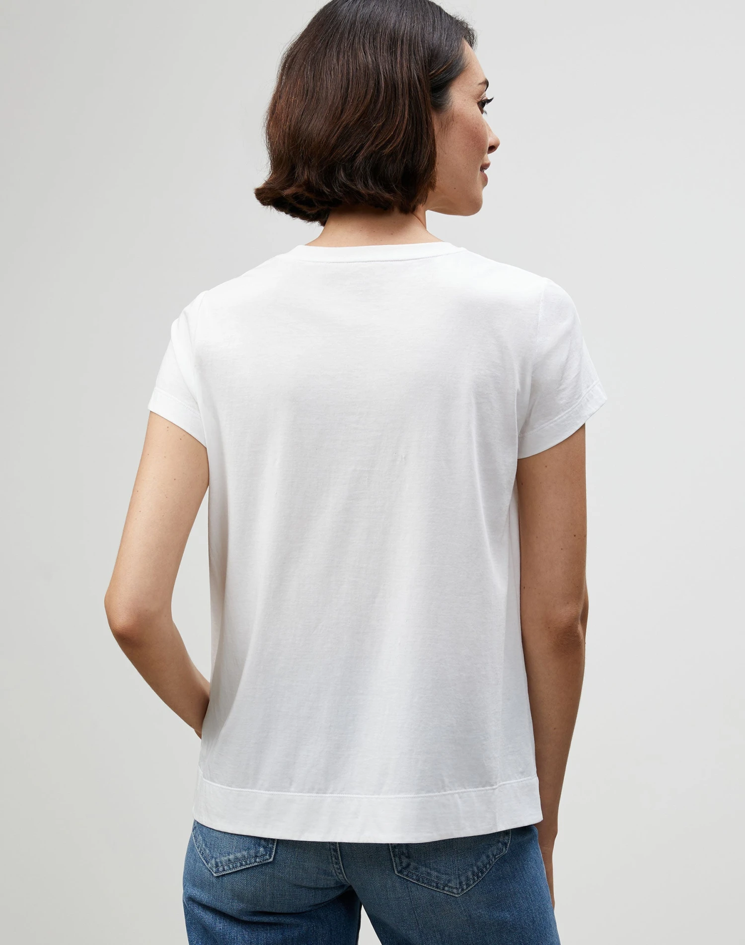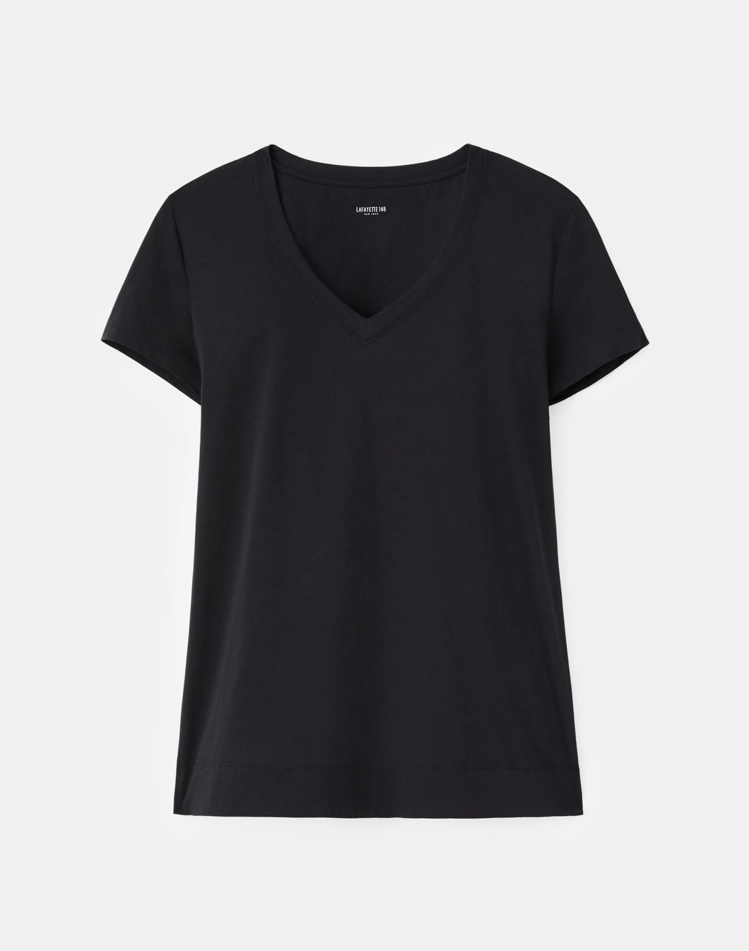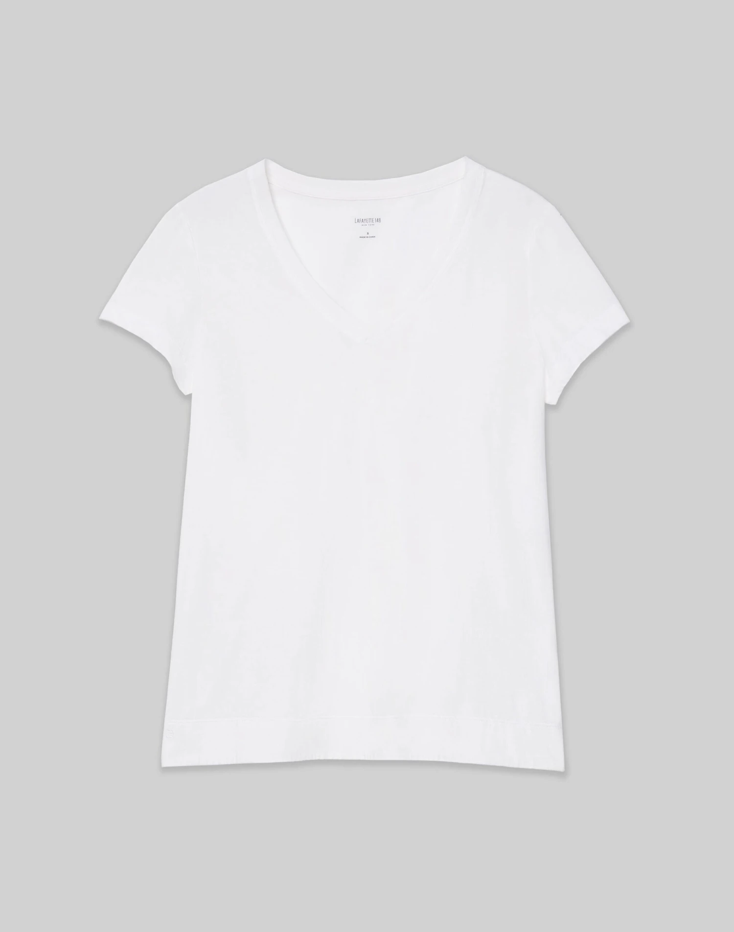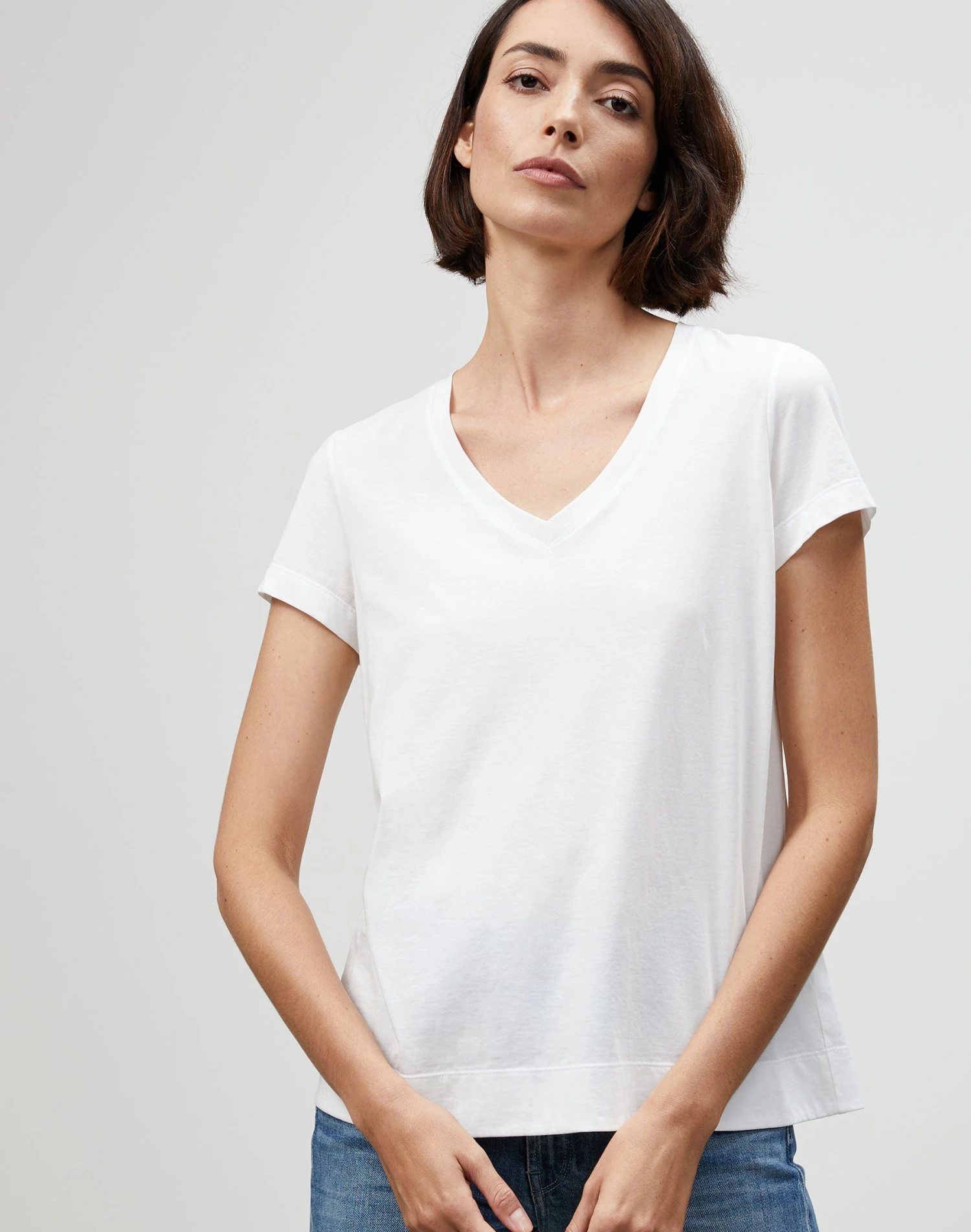 Crafted from pure, soft cotton, the Modern Tee is a wardrobe staple. With a V-neck and easy hip length, this piece is endlessly versatile.