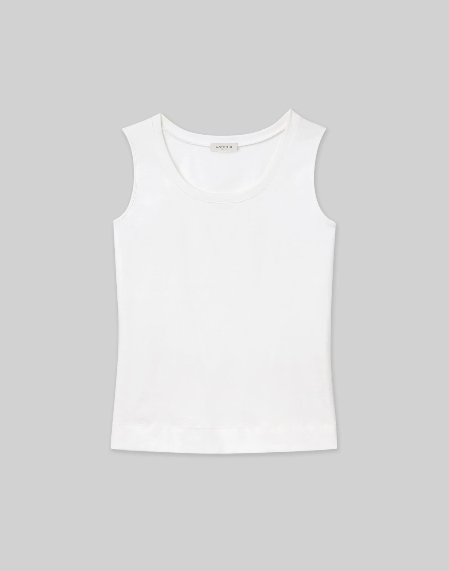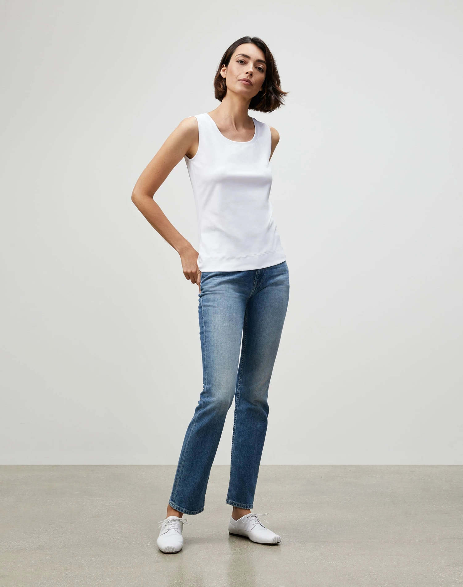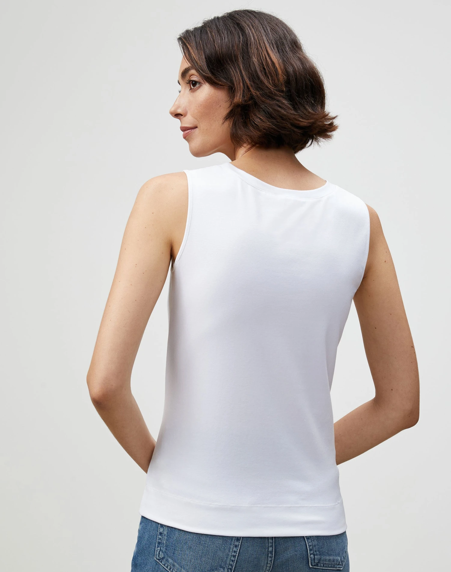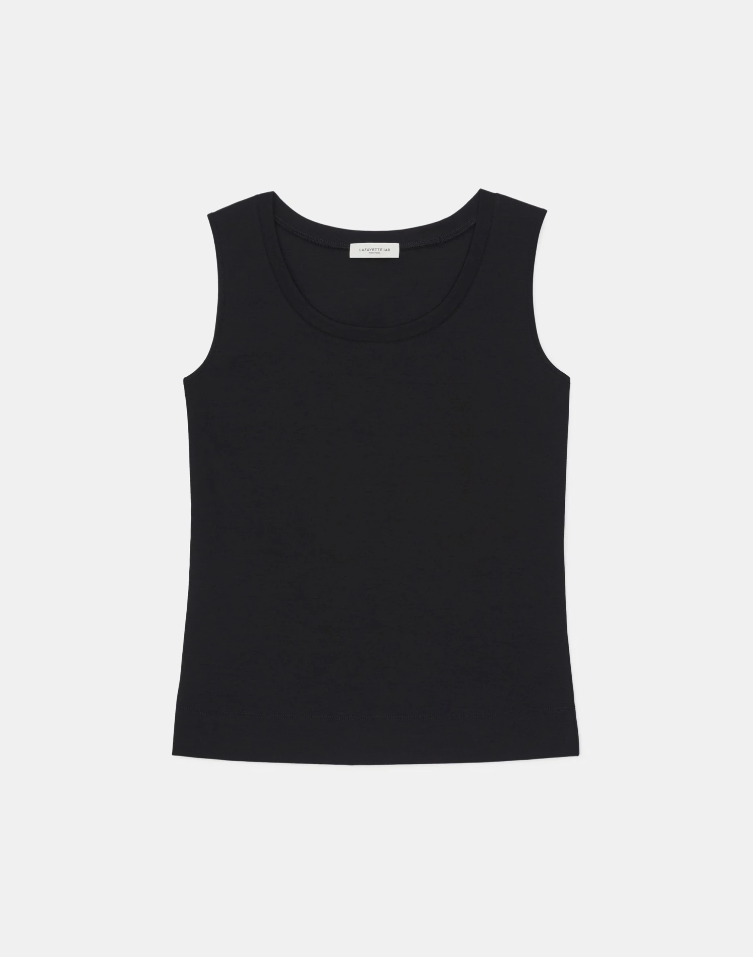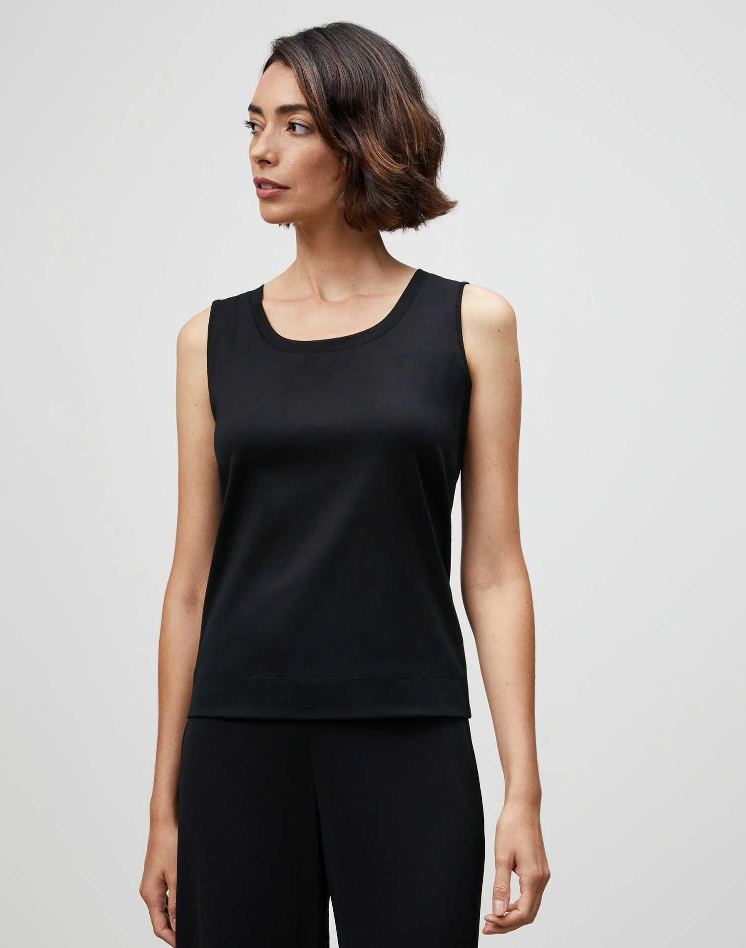 An essential underpinning, this modern tank is rendered in soft cotton rib with a hint of stretch. The sleeveless design is crafted for ease with a scoop neck and classic fit.