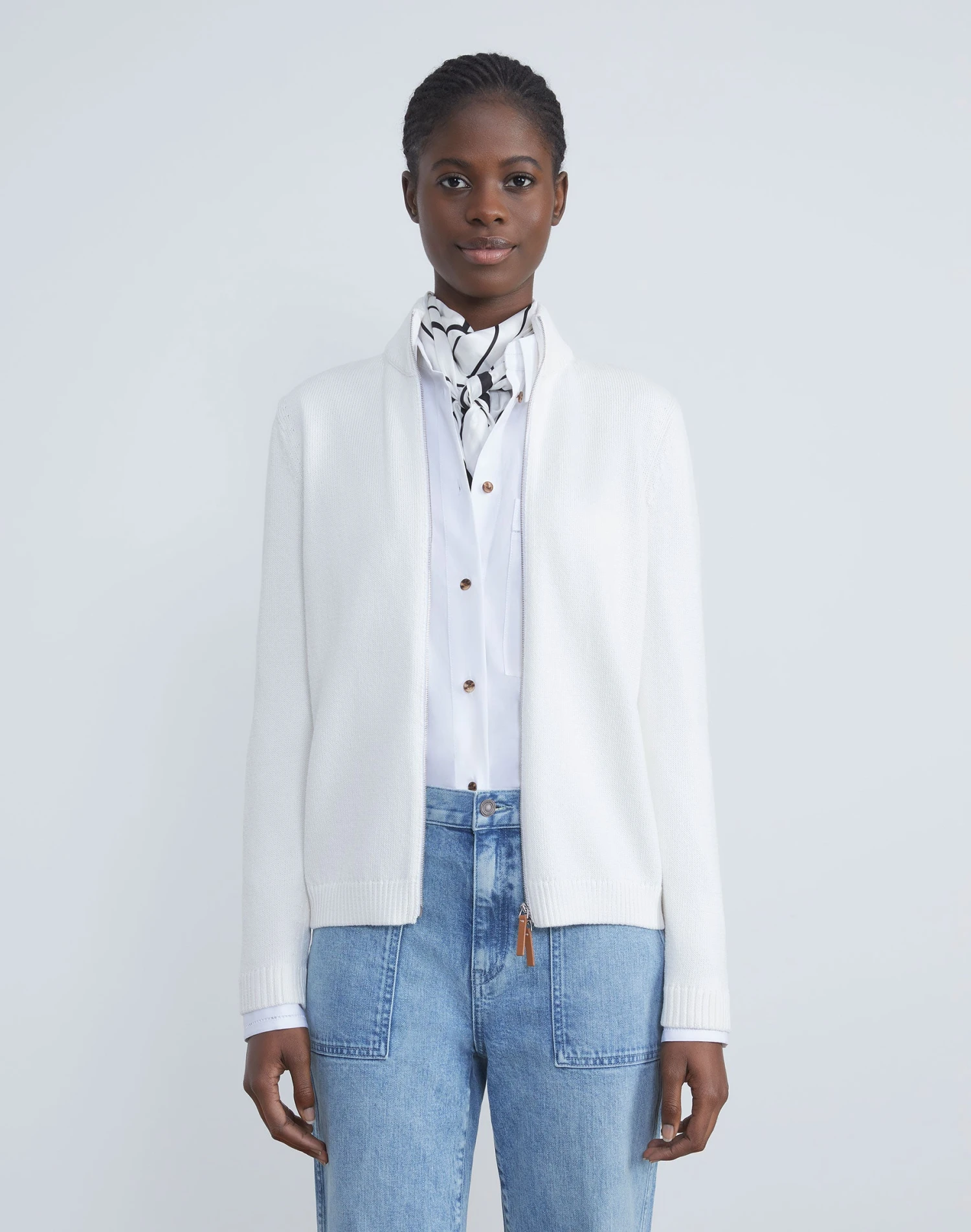 Exceptional craft and seasonless versatility combine in this relaxed-fit bomber, impeccably knit from Italian cotton and silk-blended yarns. The layerable silhouette features L148’s signature two-way zip closure, finished with tonal leather pulls, and ribbed trims for cozy definition.