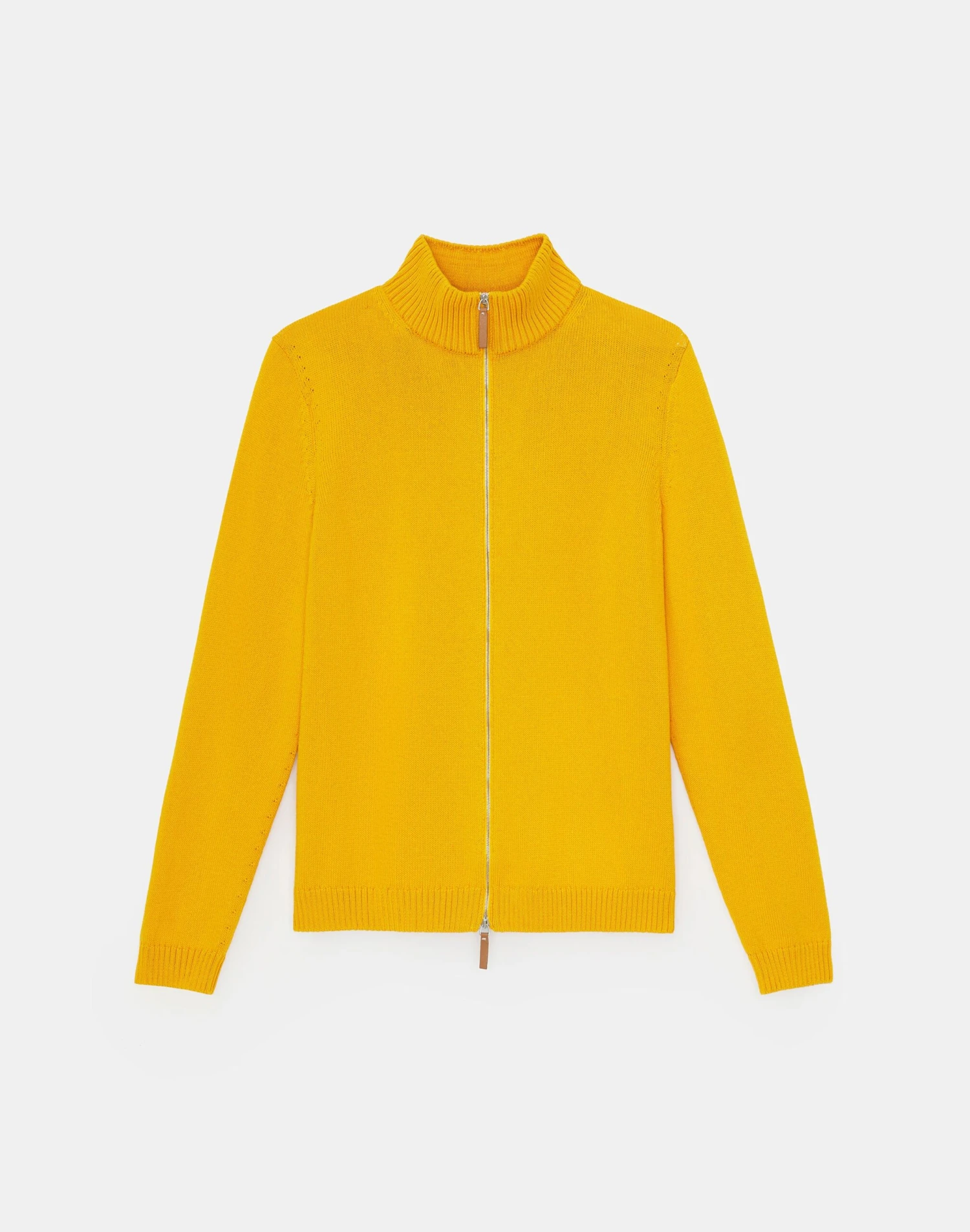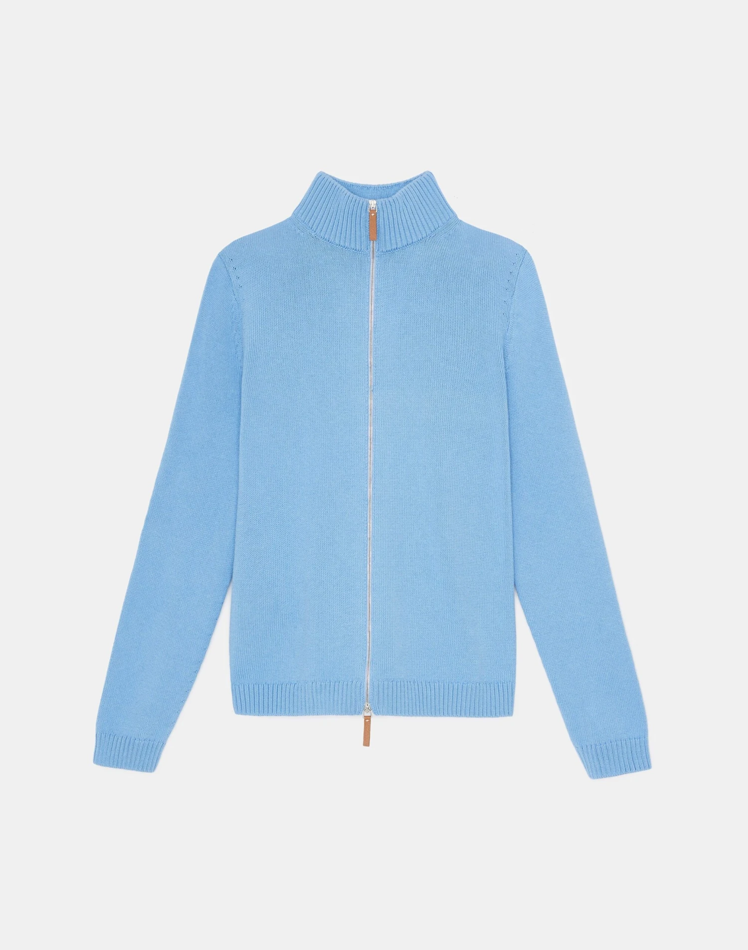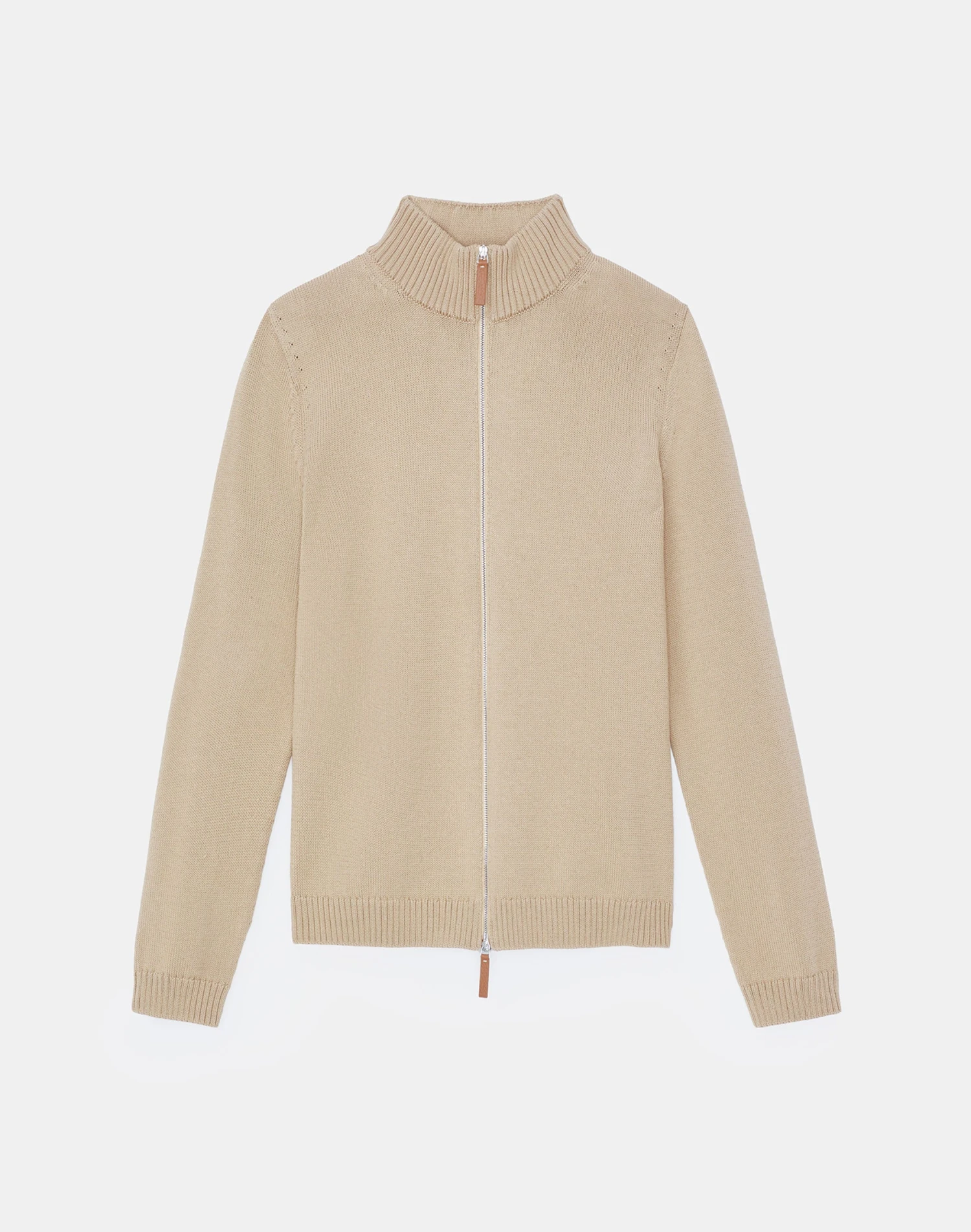 - 2-way zip front; leather pulls