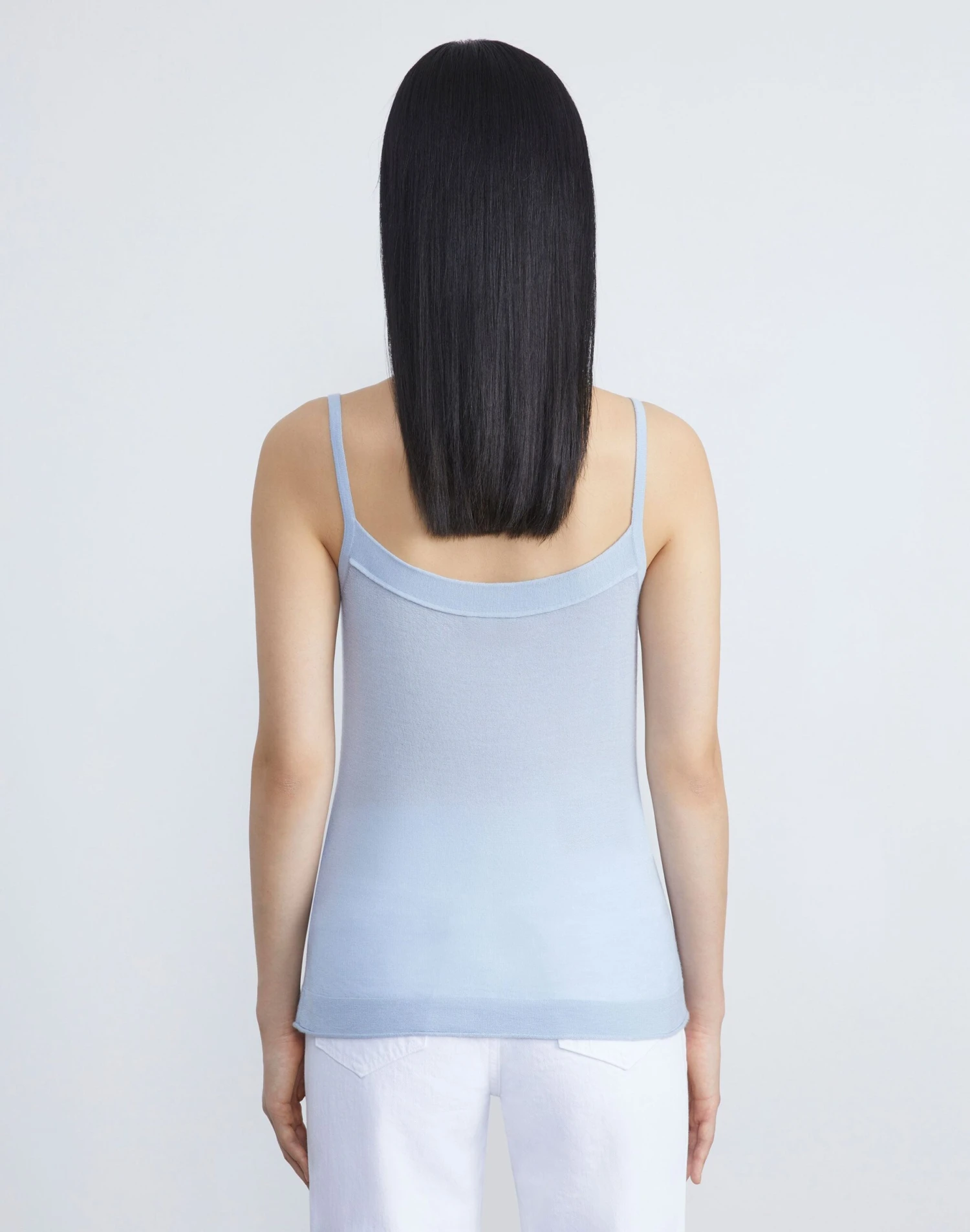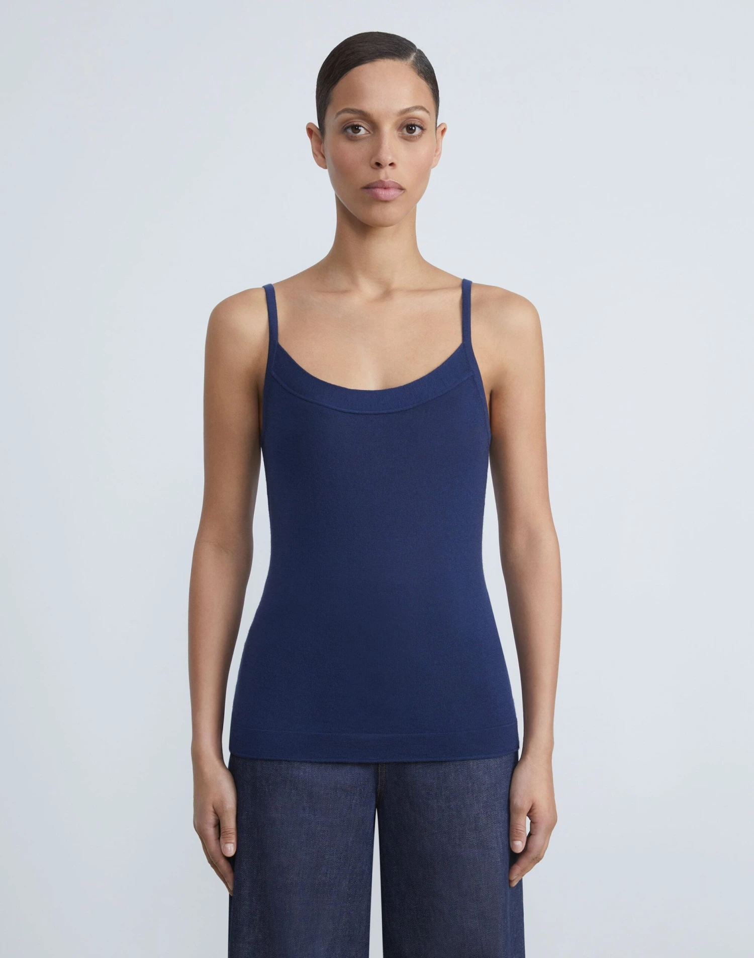 Introducing an ultra lightweight knit designed to span the seasons, this sleeveless top is delicately rendered in the softest fine gauge cashmere. The fitted silhouette features a wide, curved neckline, thin straps and artisanal rolled edges. Make it a set with the coordinating cashmere .