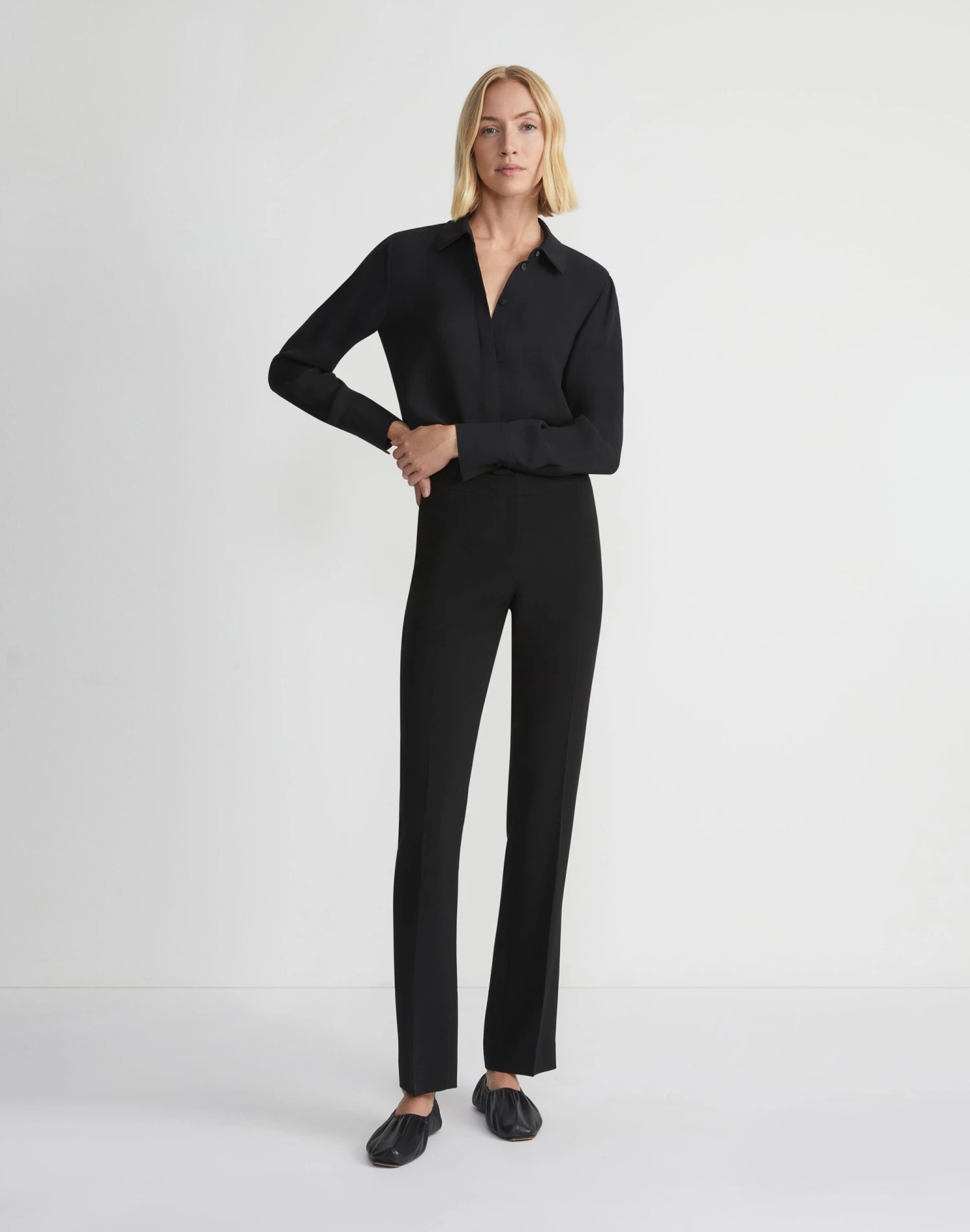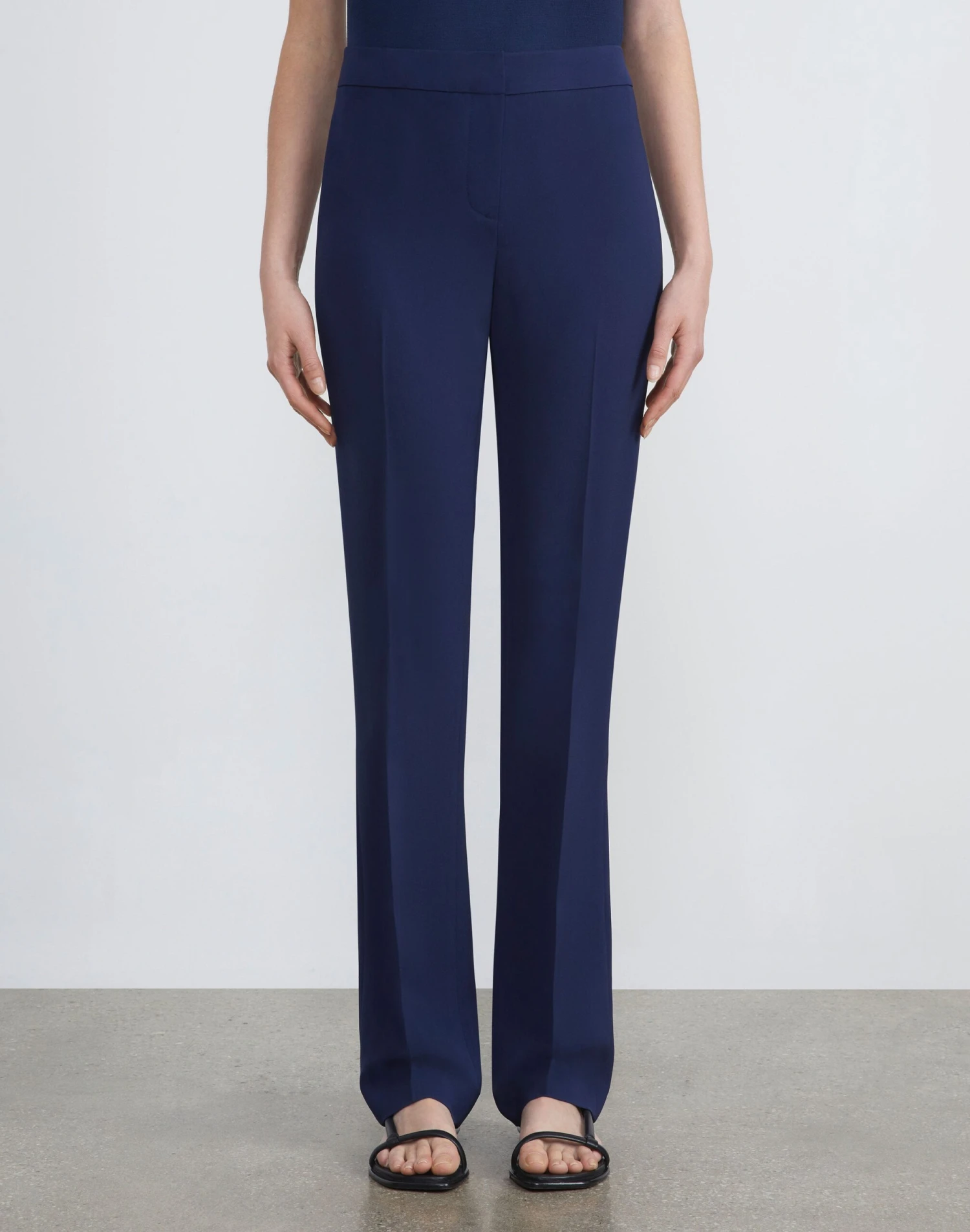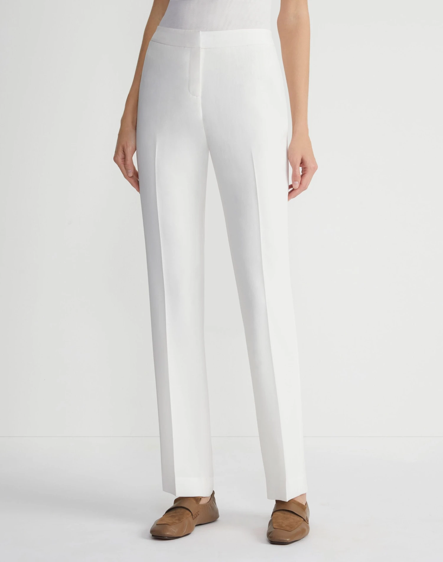 Combining clean lines with tailored polish, the Barrow pant modernizes the classic trouser with an elongating, full length and straight leg. Crafted from Lafayette 148’s heritage Finesse Crepe—a tactile, seasonless fabric with impeccable drape, this high-rise pair sits slightly above the waist while precision darting lends a flawless fit.