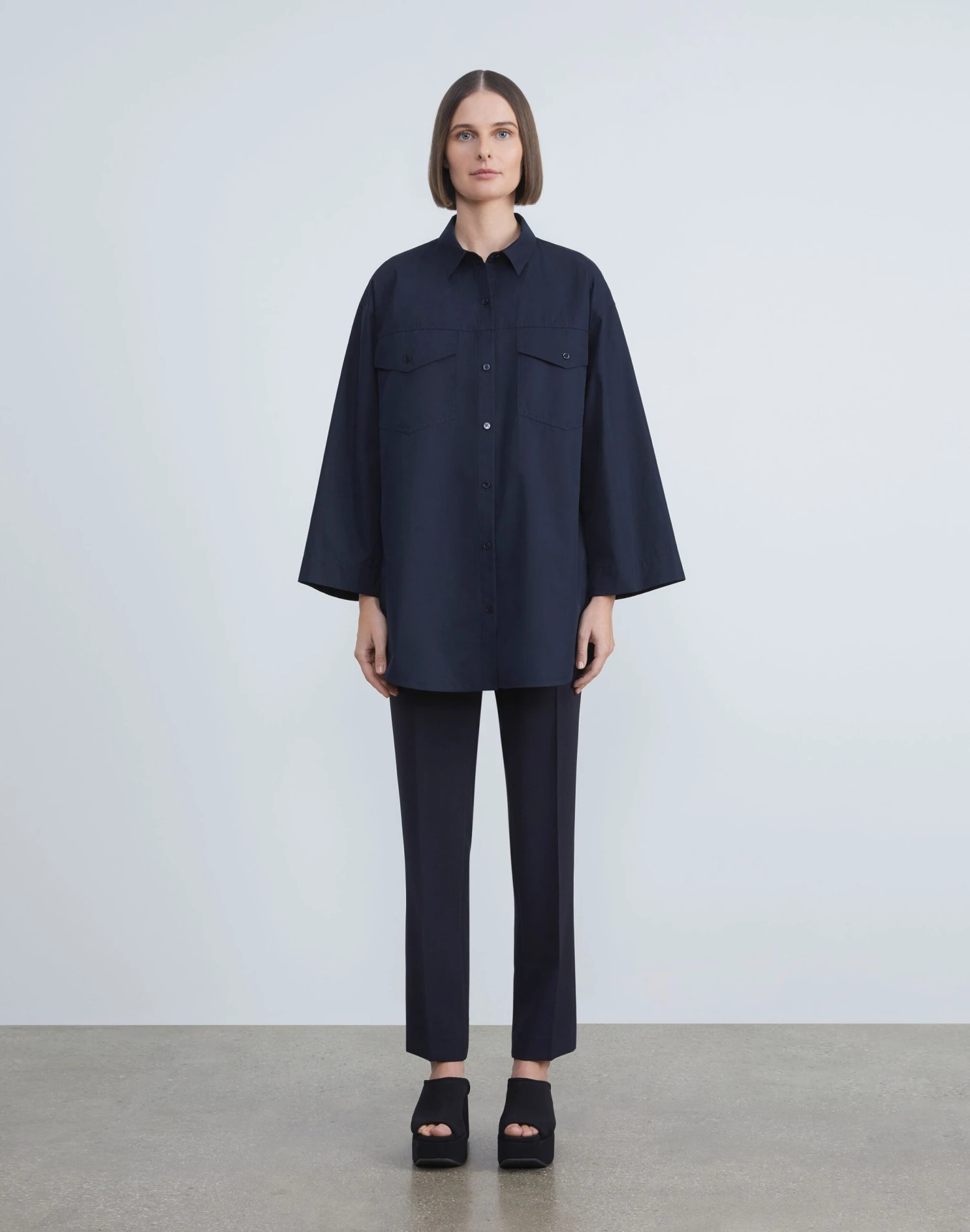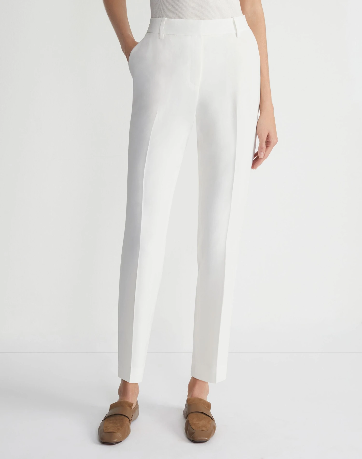 Classic tailoring with a twist, L148’s signature Clinton pant is precision cut with a streamlined straight-leg fit, from the sculpting high-rise to the polished ankle length. It’s crafted from House heritage Finesse Crepe fabric, and finished with a clean front zip and sharp pressed creases.