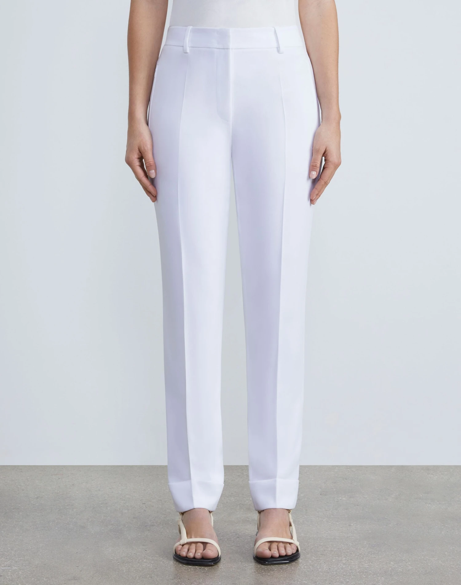 Flawlessly tailored in House heritage Finesse Crepe, L148’s signature Essex pant is precision cut for a slim fit with a waist-defining high rise and ankle crop length. The modern trouser silhouette features crisp pressed creases, zip pockets and cuffed hems.