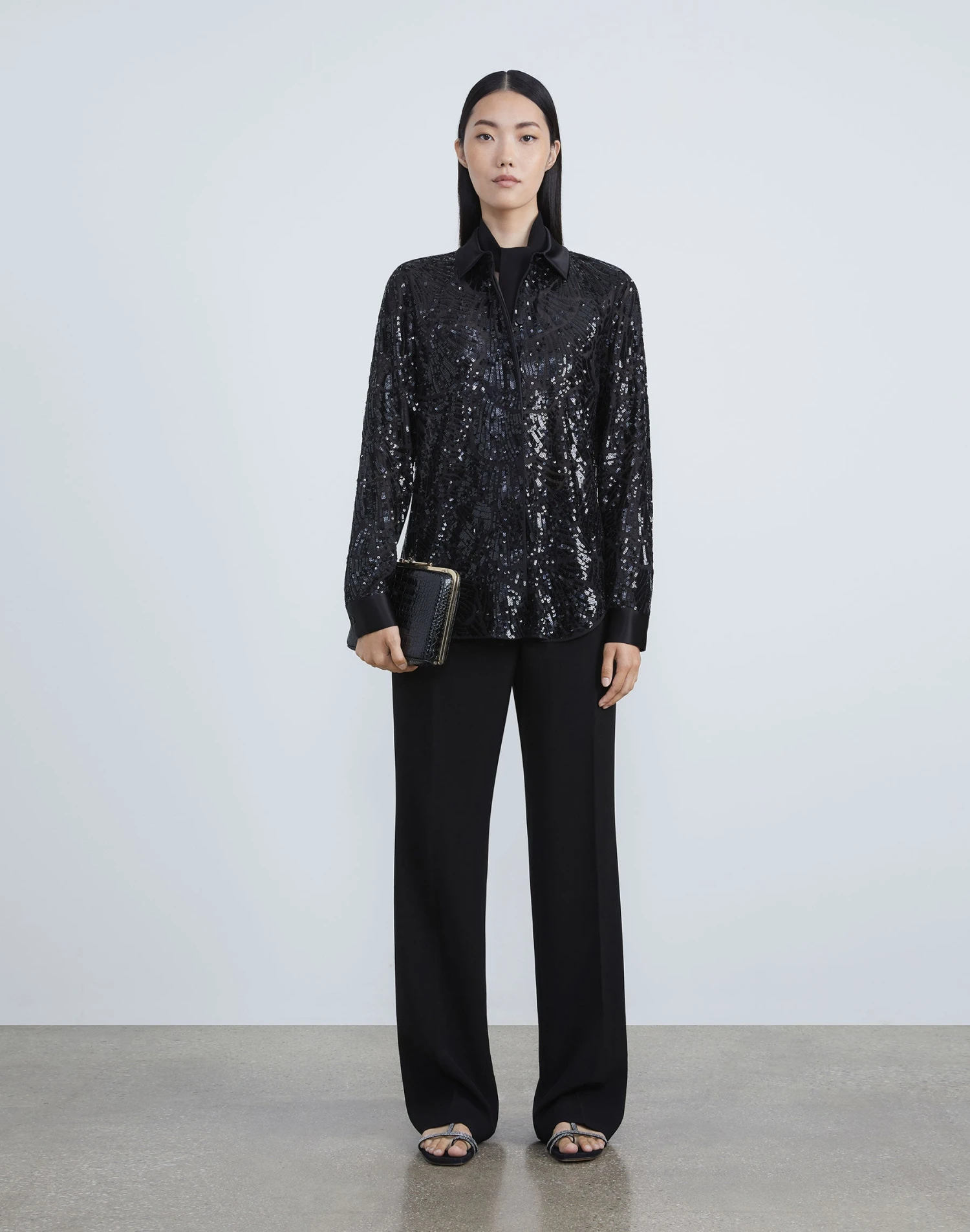 Precision tailoring meets fluidity in the Gates Pant, expertly cut with a high-rise, full-leg and elongated length. Finesse Crepe fabric lends a perfect drape and rich texture, while pressed front creases infuse the look with polish.