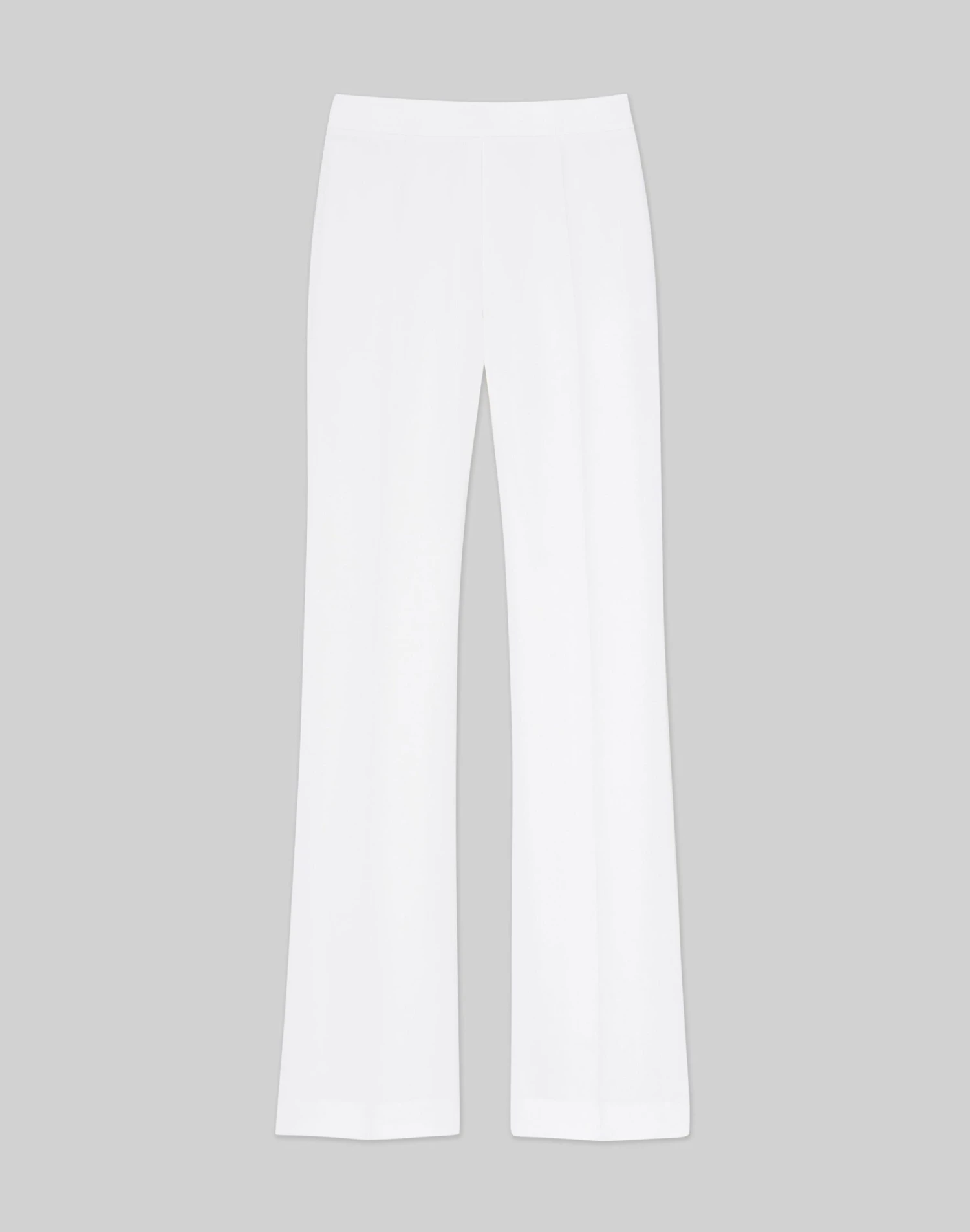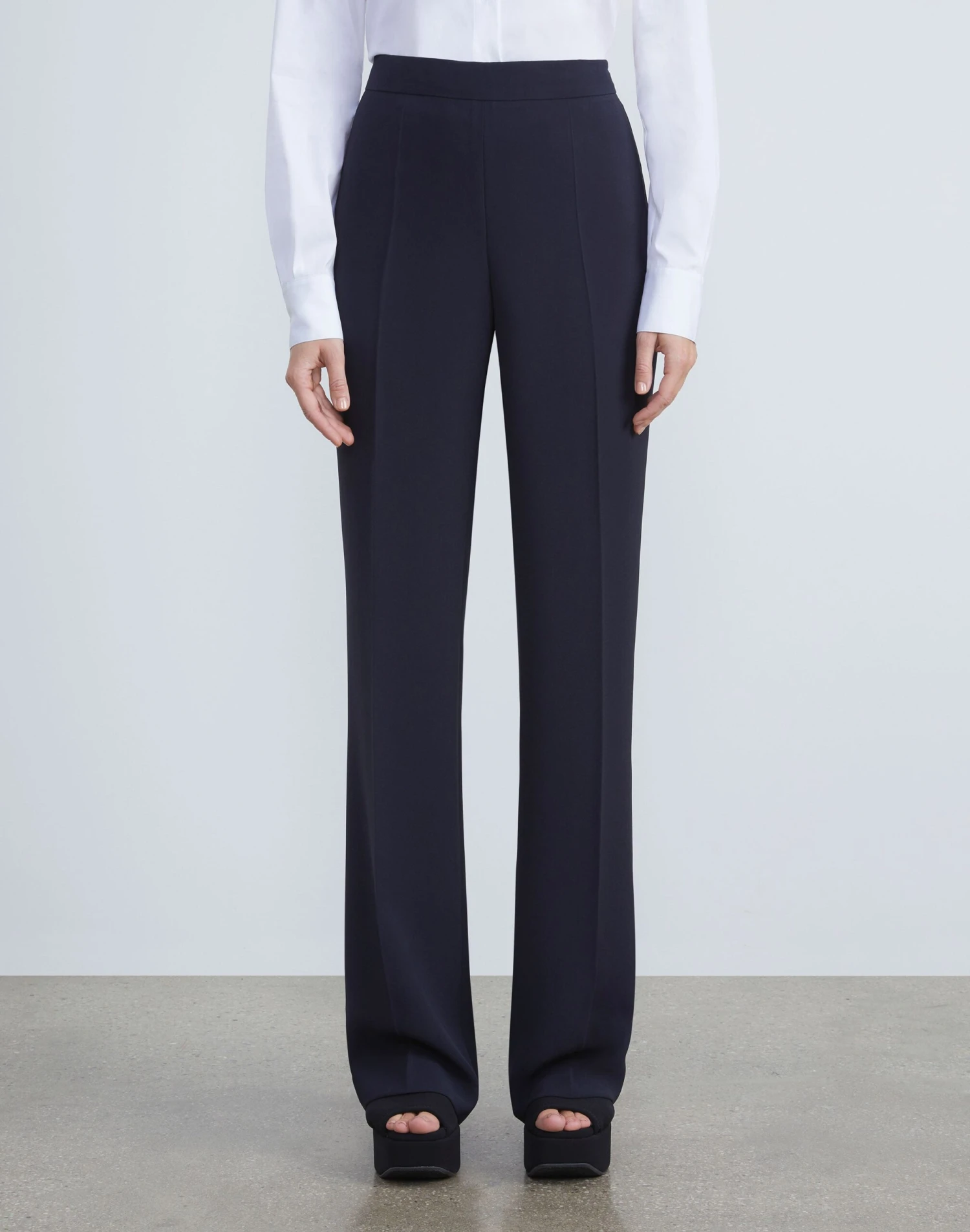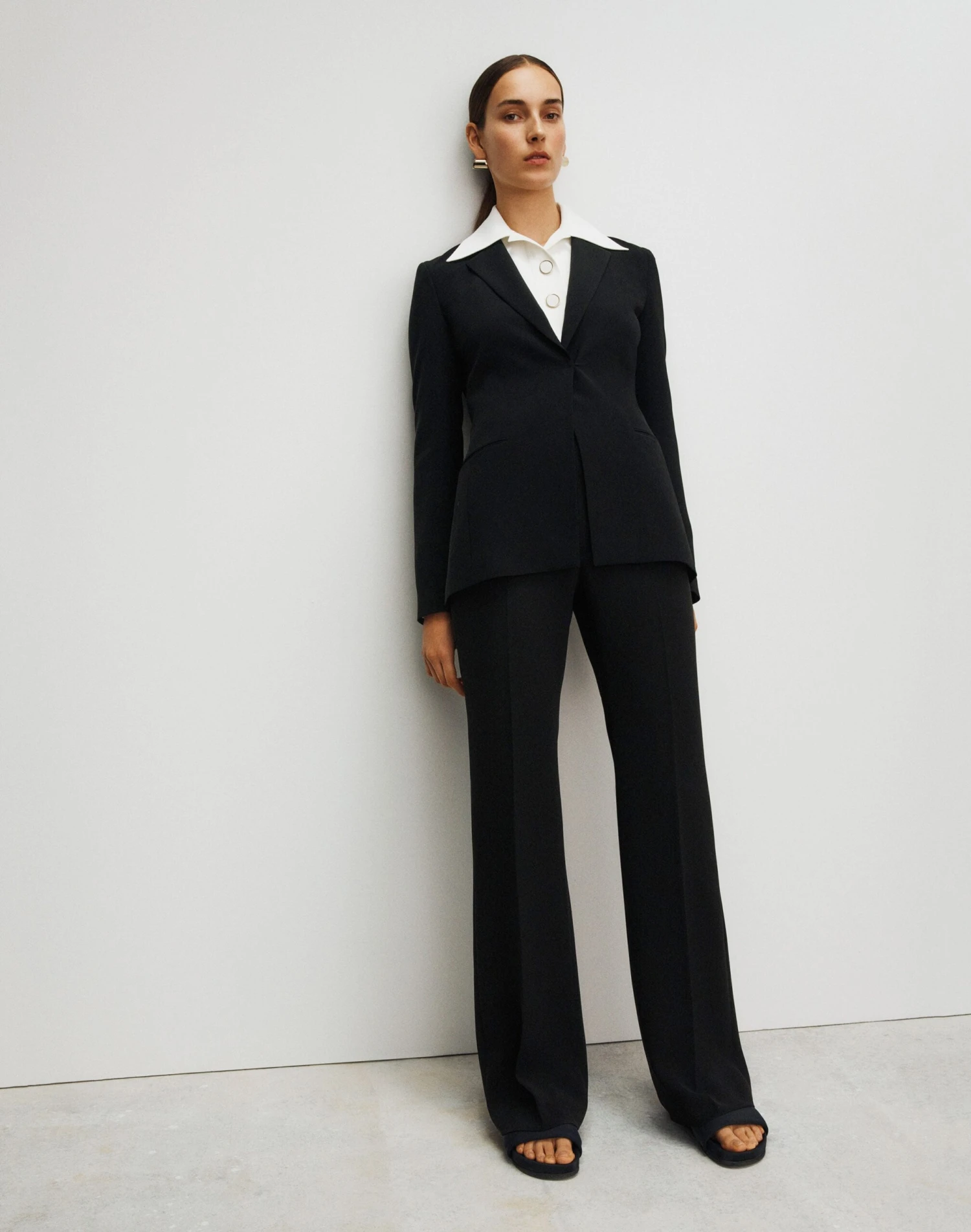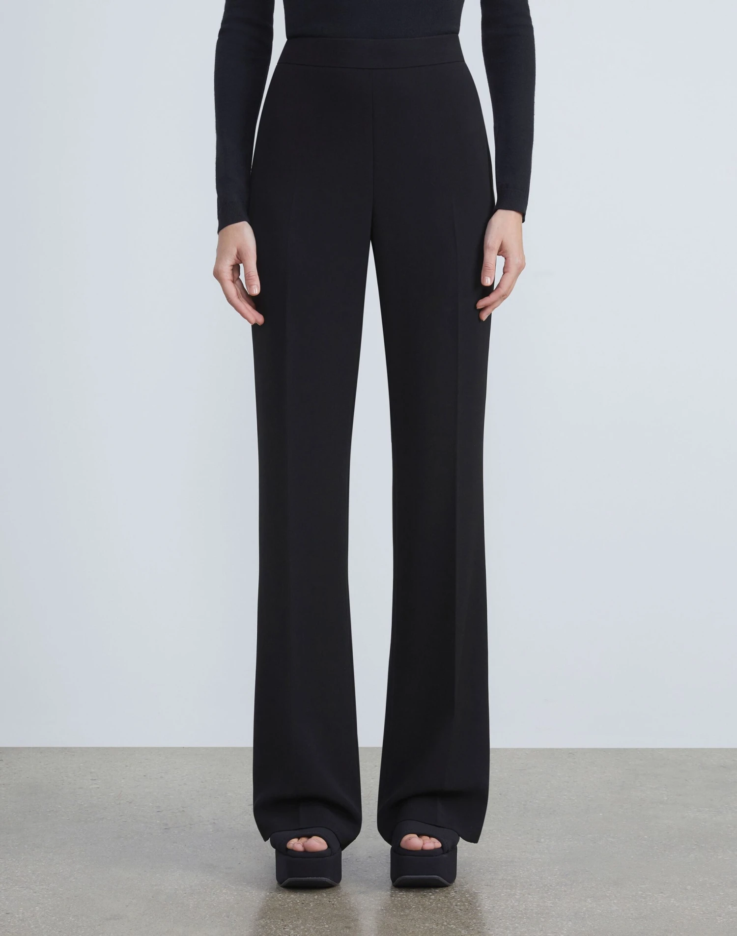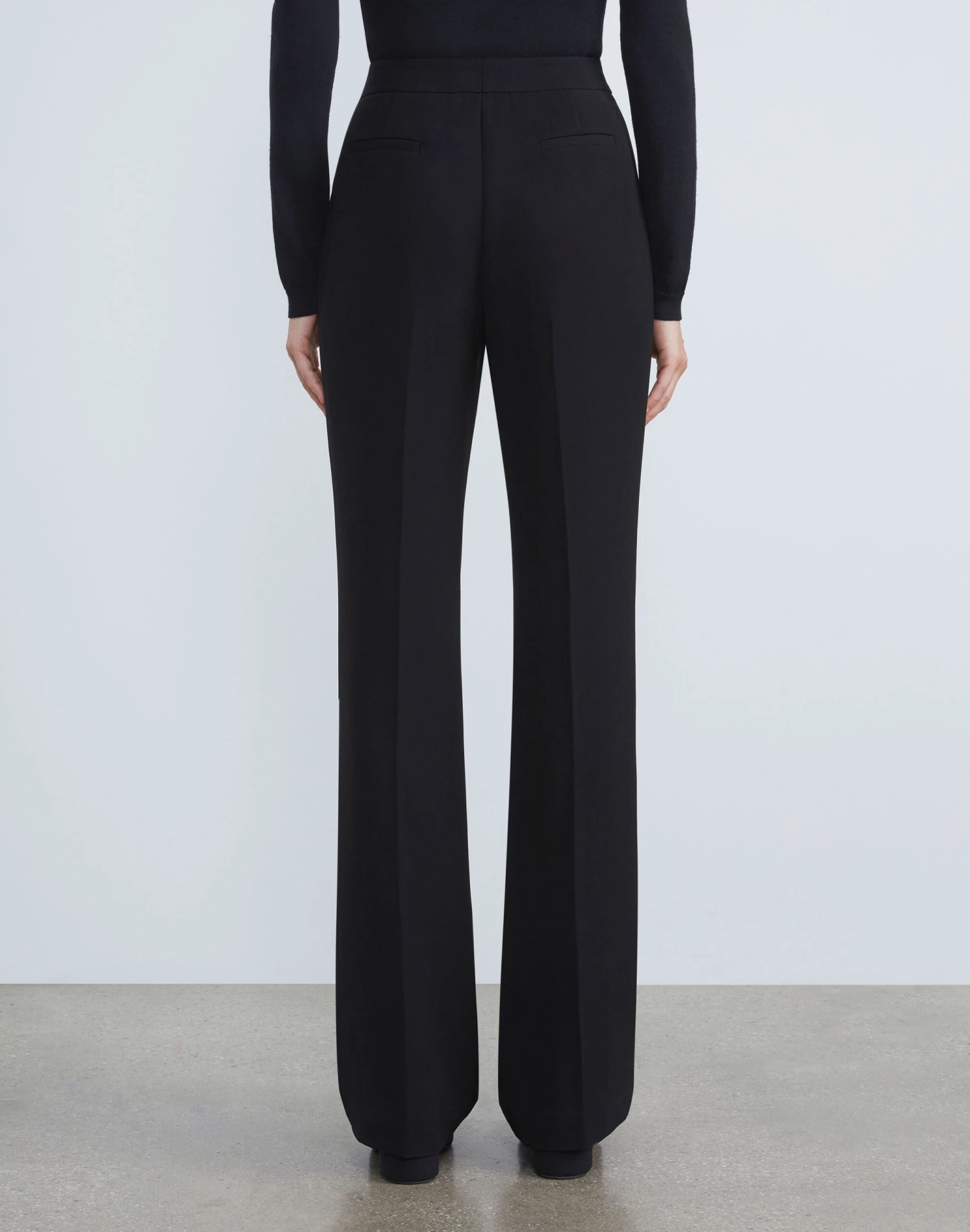 The Gates pant is remastered with a waist-sculpting high rise, elongated length and sharp, flared hem. The fitted silhouette is tailored from House heritage Finesse Crepe fabric, and finished with a clean side zip and soft pressed creases.