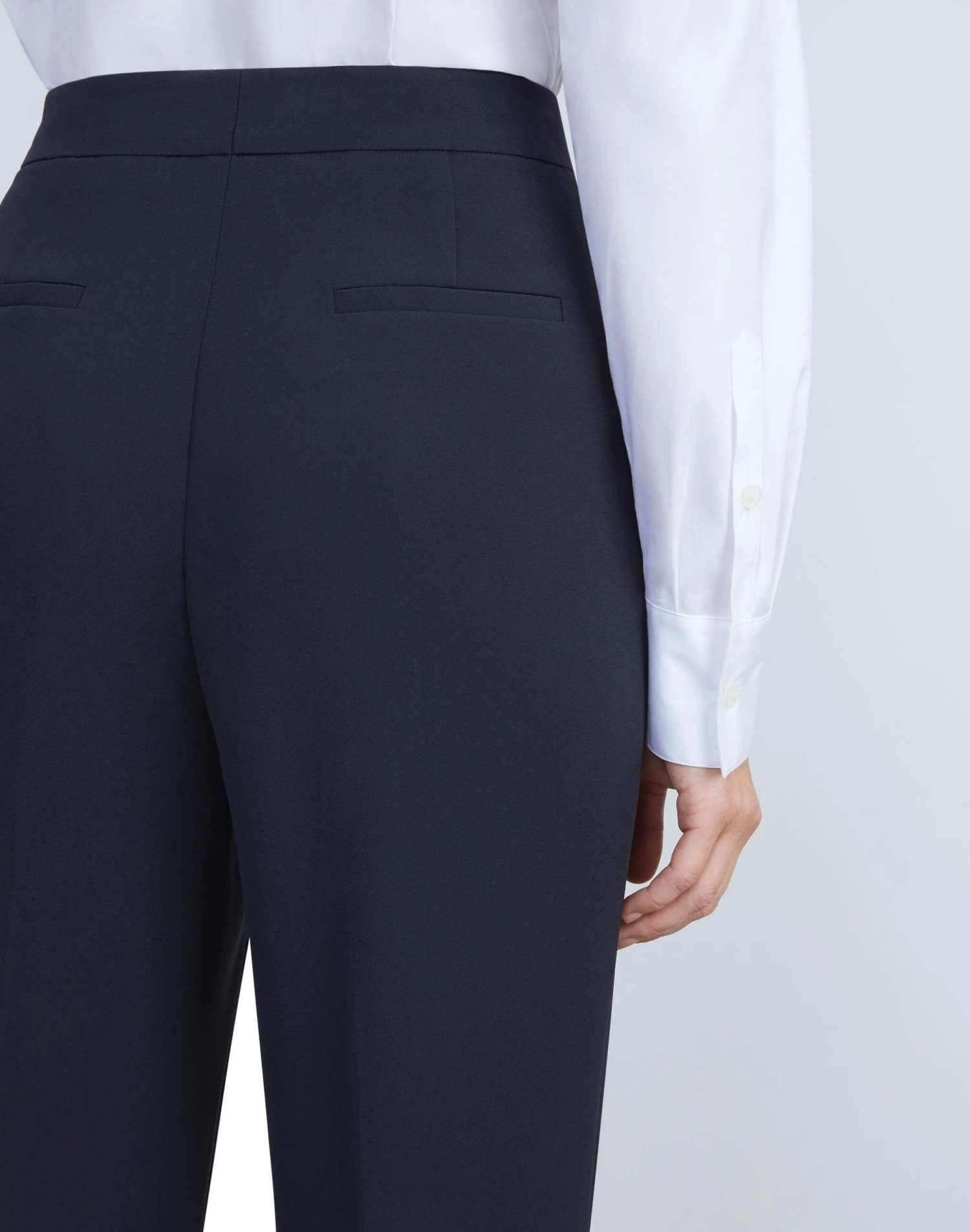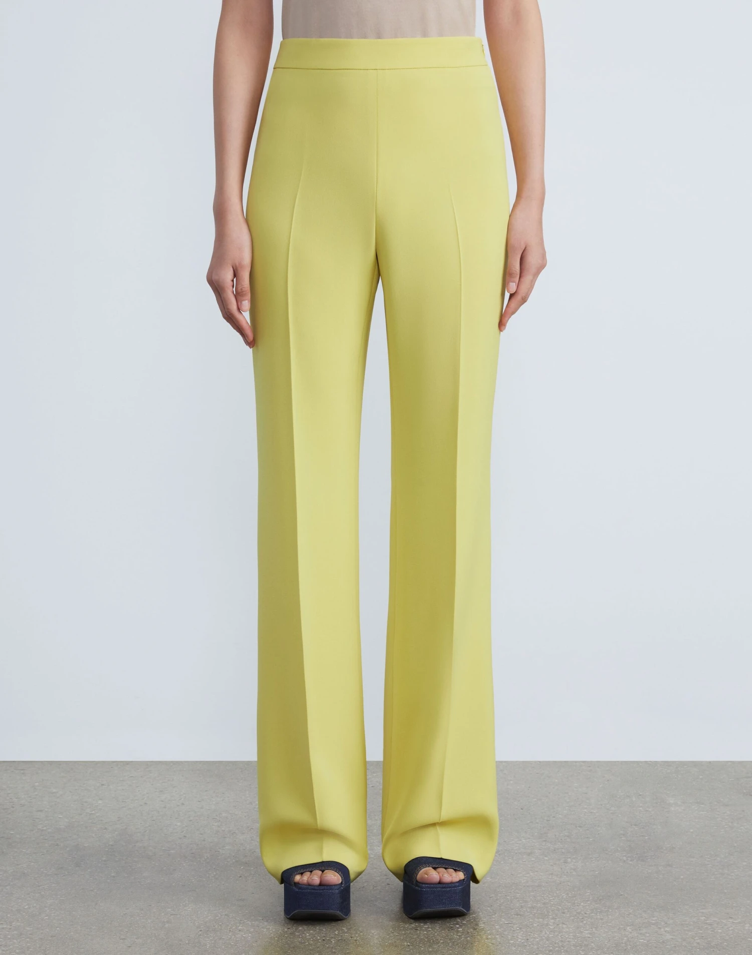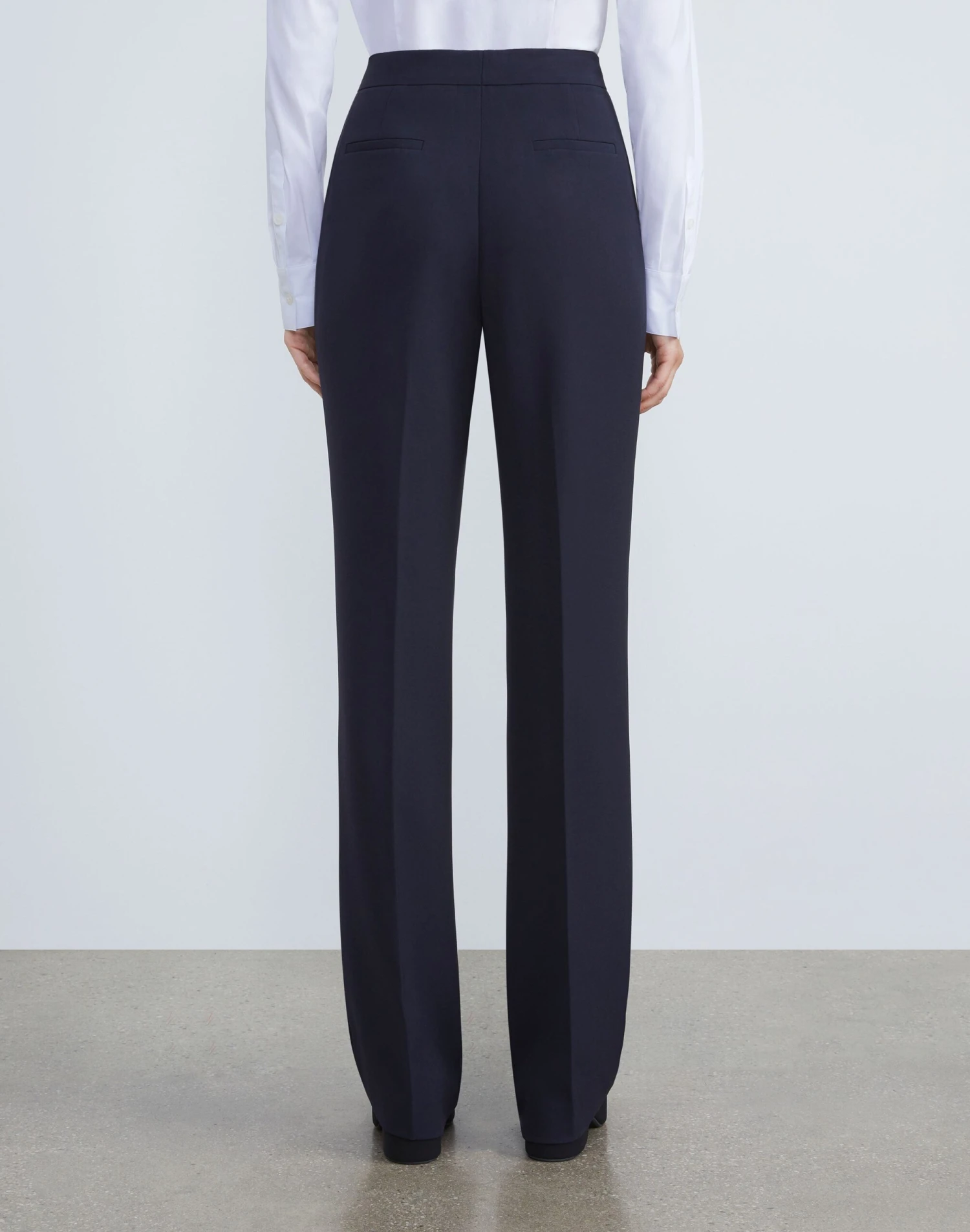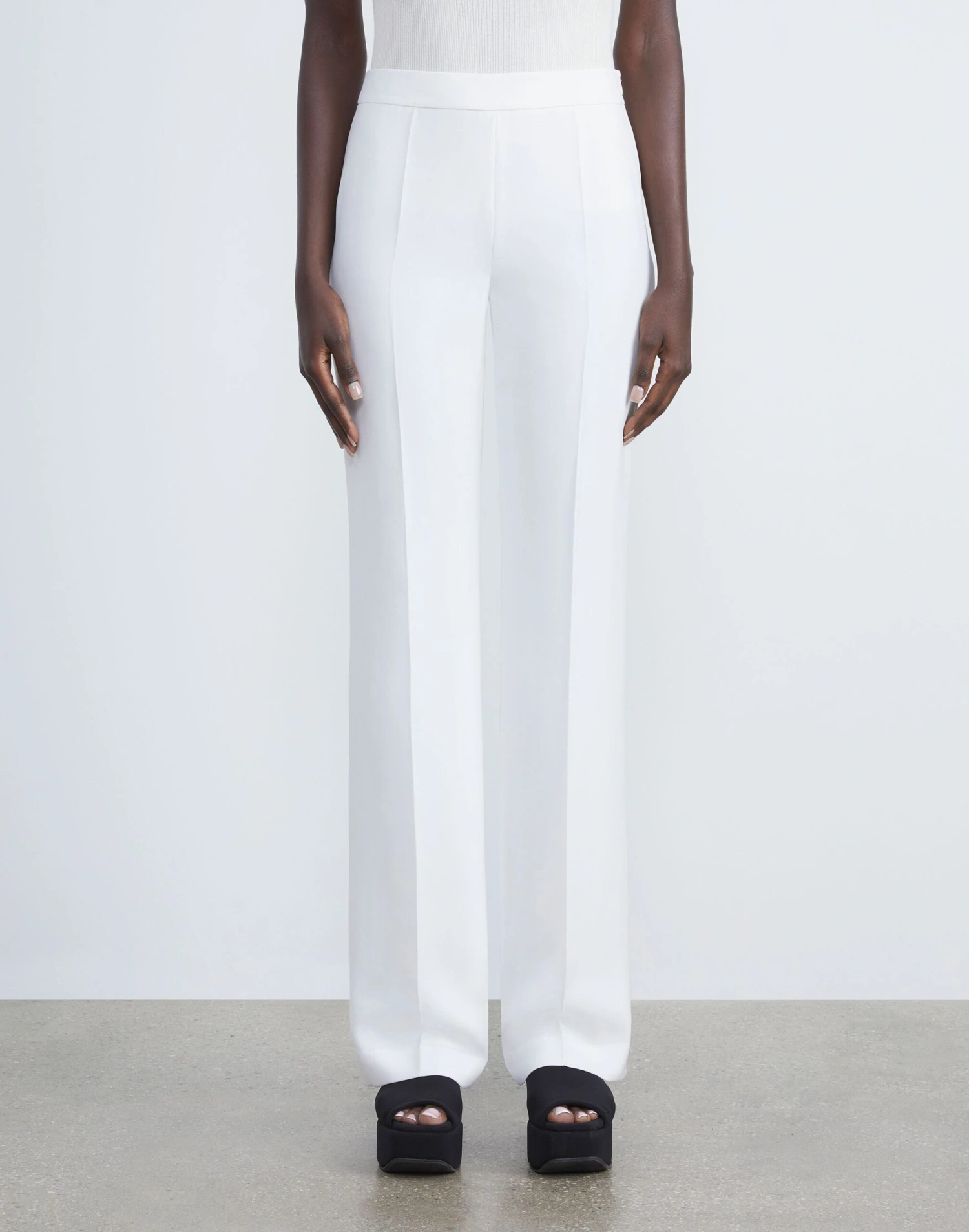 The Gates pant is remastered with a waist-sculpting high rise, elongated length and sharp, flared hem. The fitted silhouette is tailored from House heritage Finesse Crepe fabric, and finished with a clean side zip and soft pressed creases.