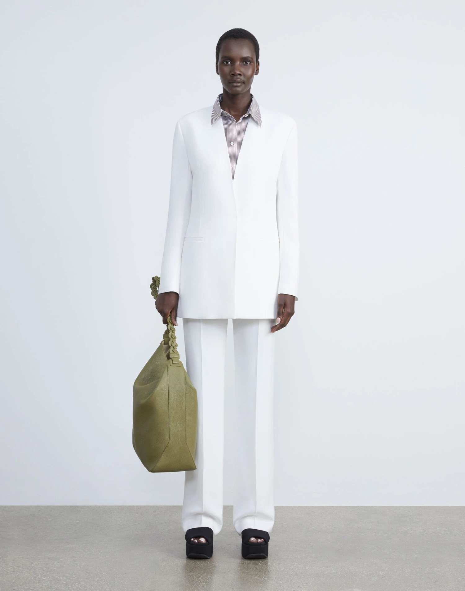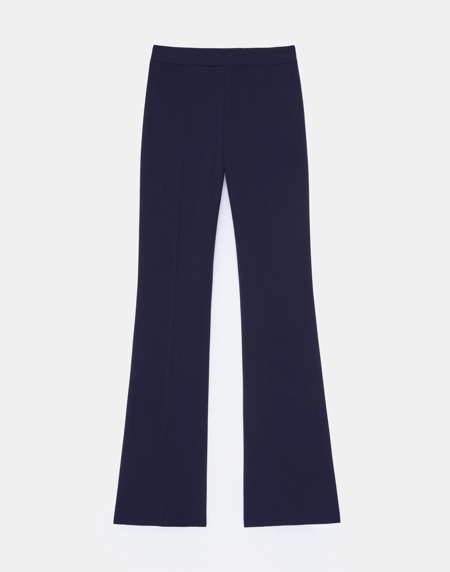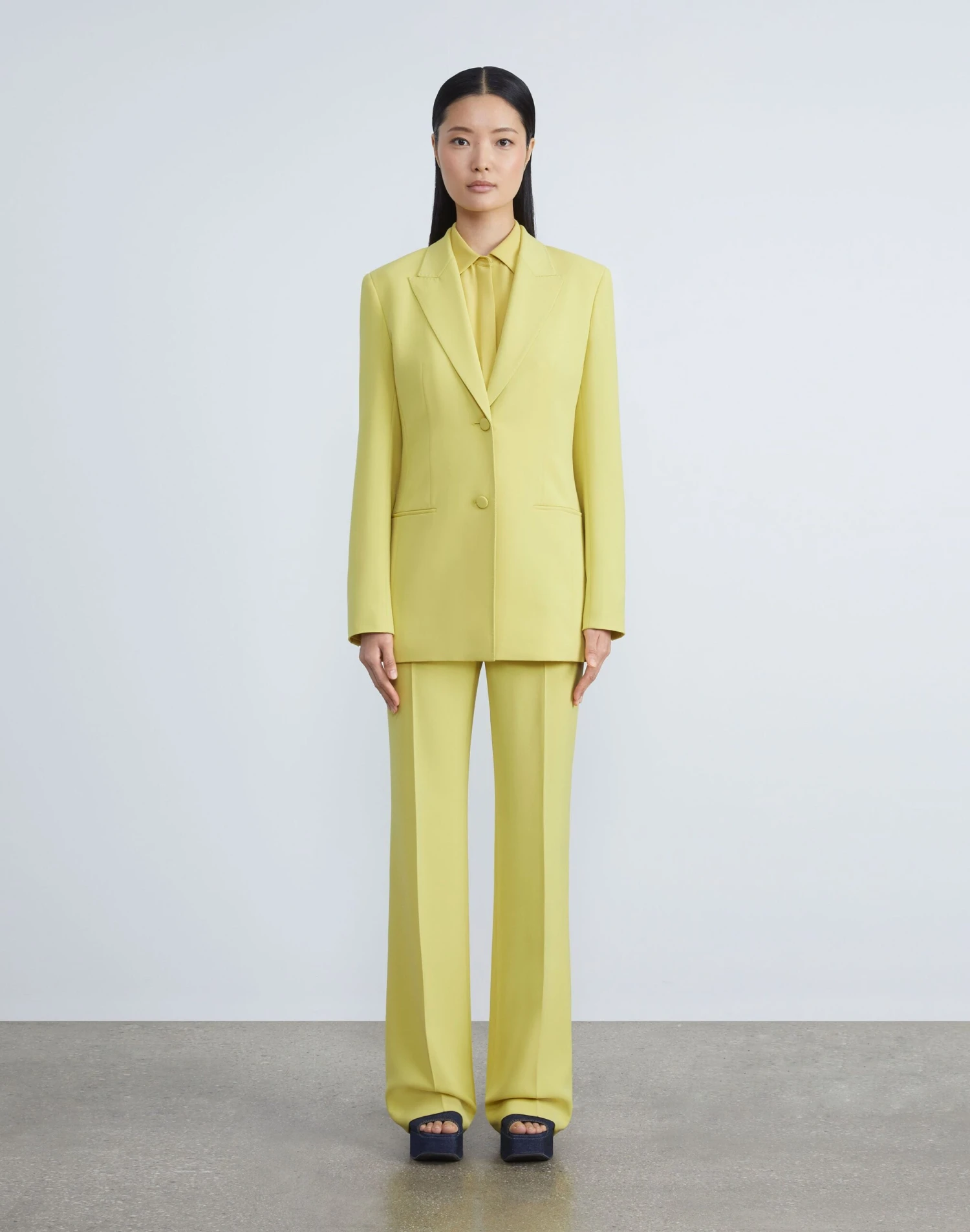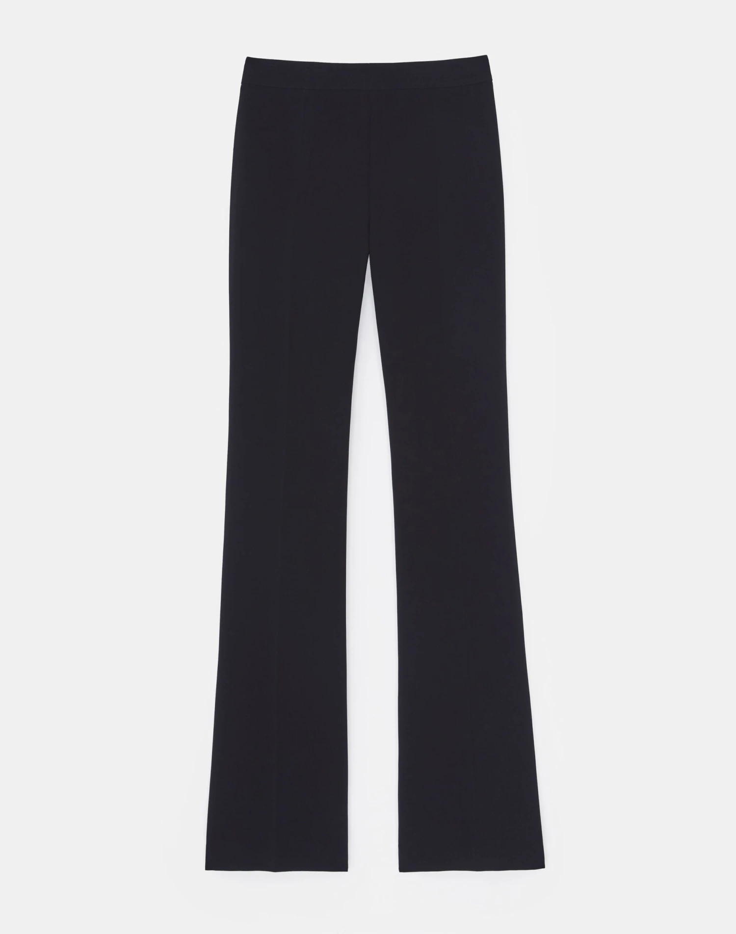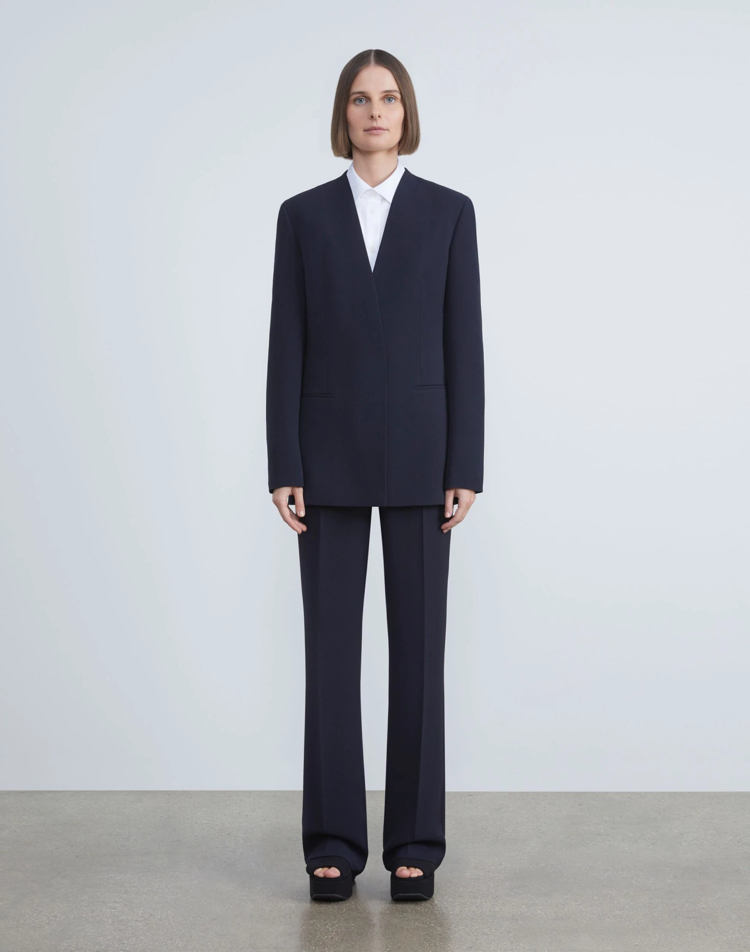 The Gates pant is remastered with a waist-sculpting high rise, elongated length and sharp, flared hem. The fitted silhouette is tailored from House heritage Finesse Crepe fabric, and finished with a clean side zip and soft pressed creases.