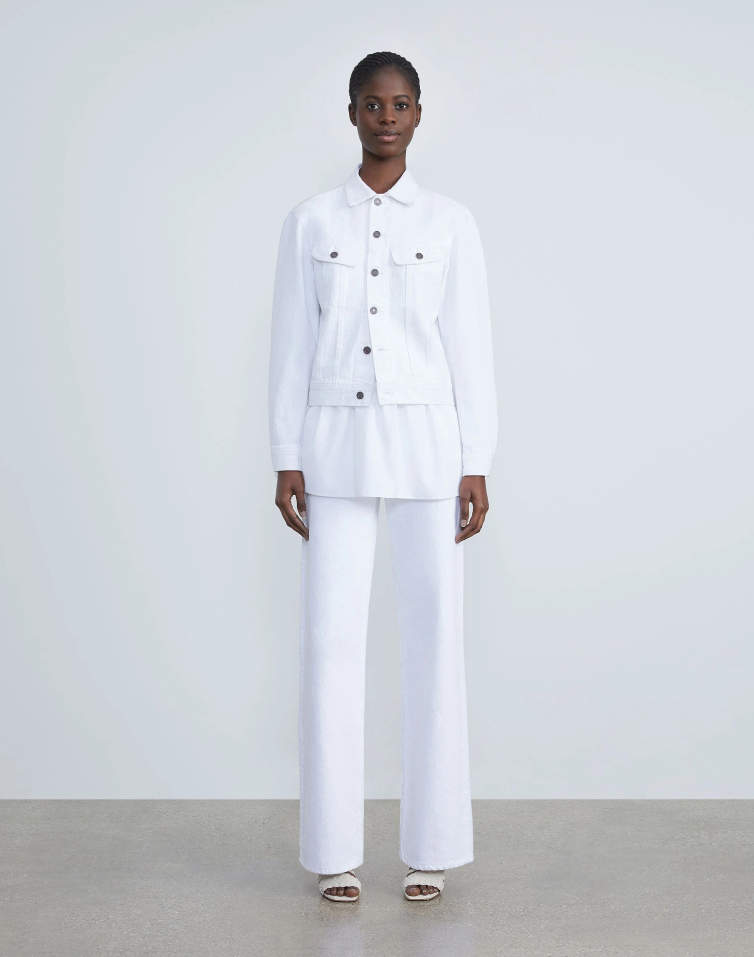 Vintage-inspired design meets modern tailoring in the L148 Denim jacket, featuring rounded sleeves and a tapered fit that’s cropped high on the hip. Every detail is considered—from patch pockets to classic topstitching and logo-embossed hardware. It’s expertly crafted in the USA of soft, yet structured pure cotton denim.