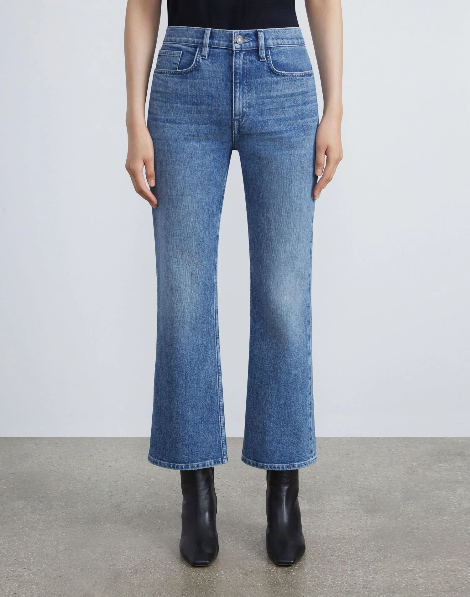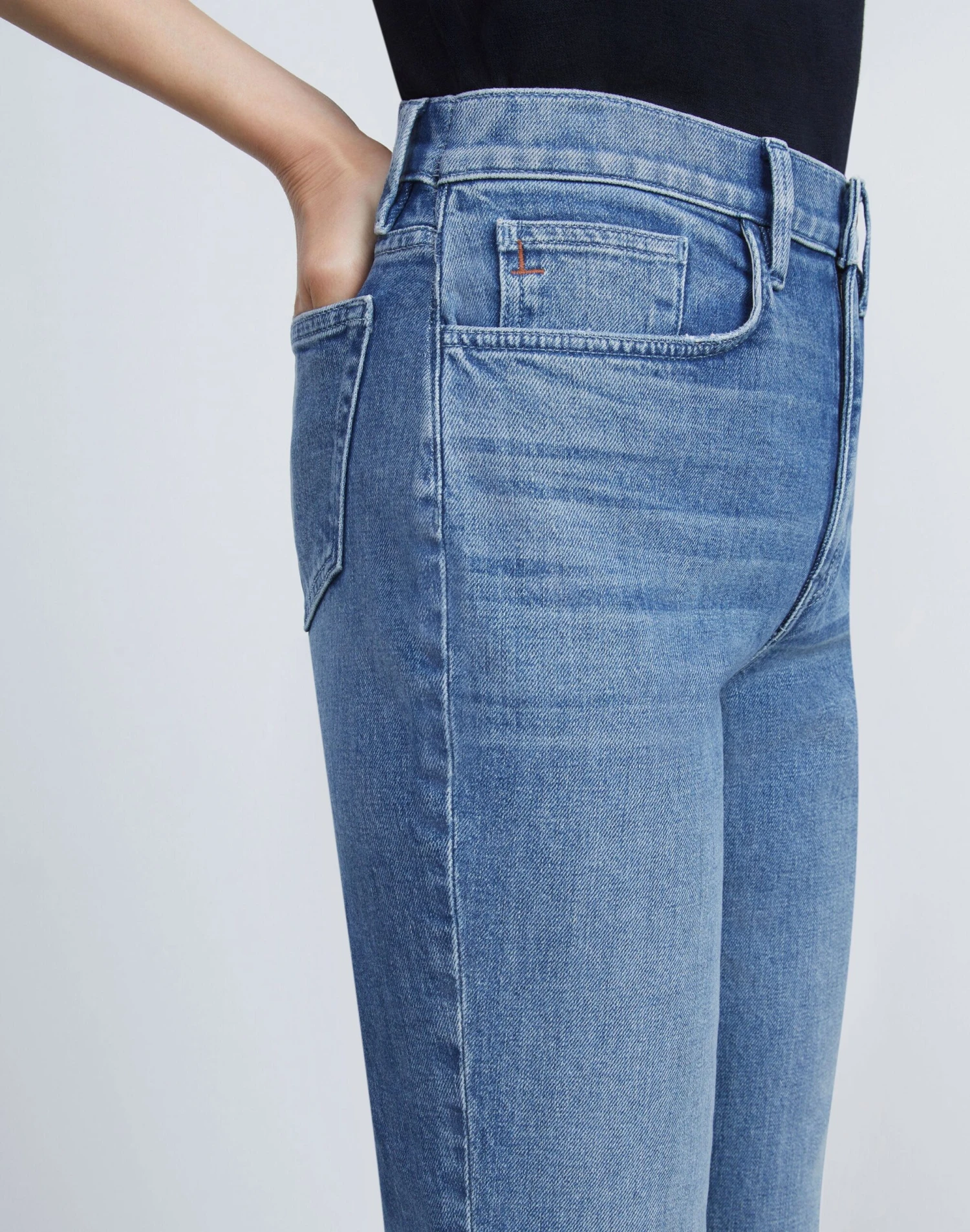 New to the L148 Denim collection, the Mott jean is engineered for ease, with a perfect cut mid rise and fitted shape that flares at the ankle. It’s expertly crafted in the USA from heritage Italian denim—soft yet structured cotton sourced from a legendary, sustainably-minded mill and hand-finished to achieve the unique highs and lows that make each pair truly one-of-a-kind.