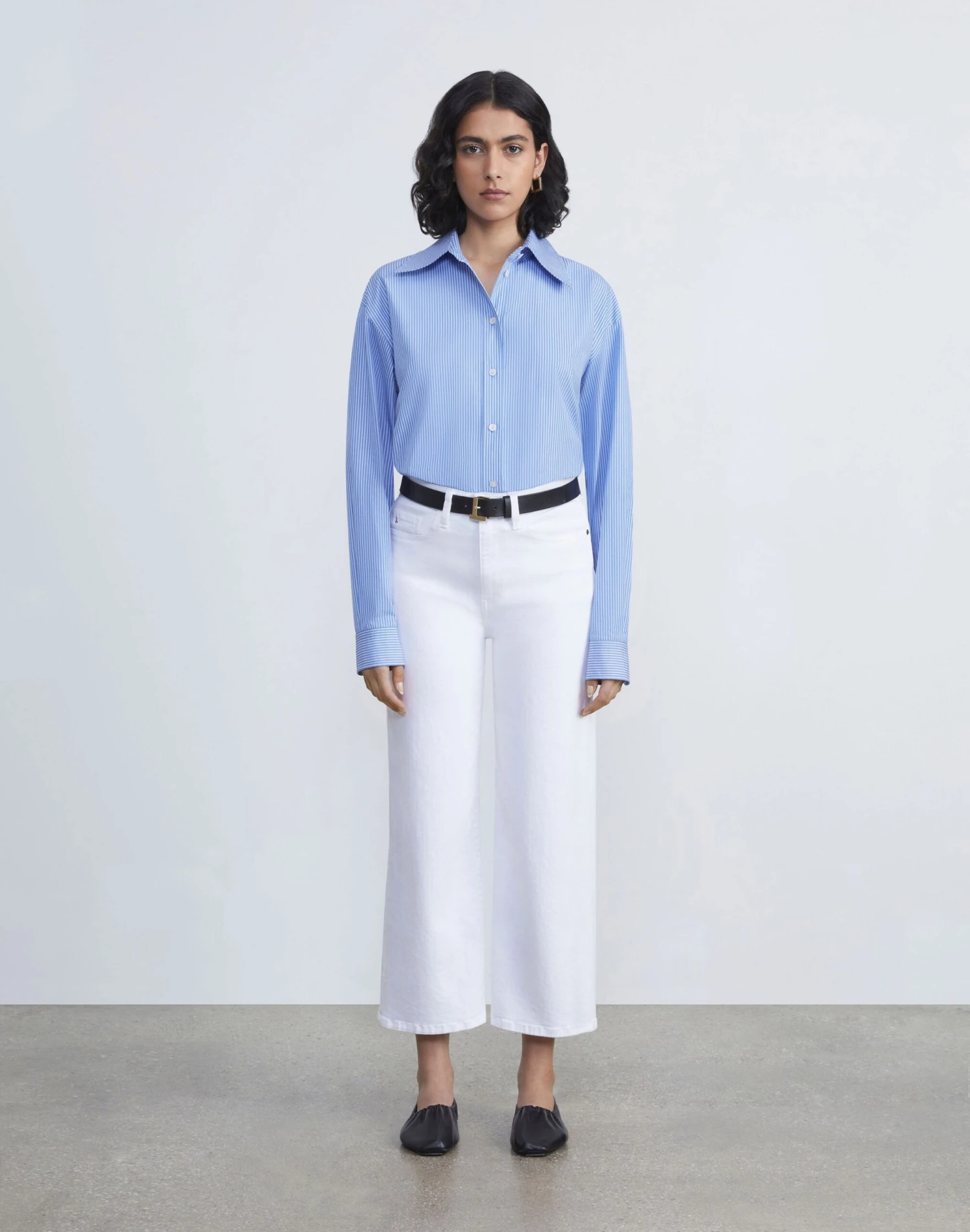This iteration of the Wyckoff Jean is cut with a waist-sculpting high-rise and fluid wide leg that’s cropped just above the ankle. It’s made in the USA from Lafayette 148’s signature Italian denim—a soft, yet structured cotton woven using traditional techniques and sourced from a celebrated, sustainably-minded mill.