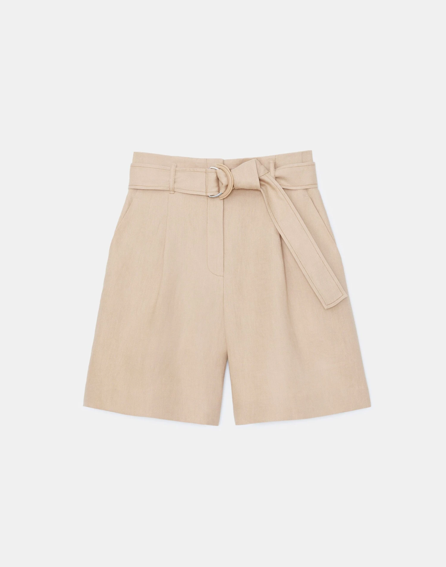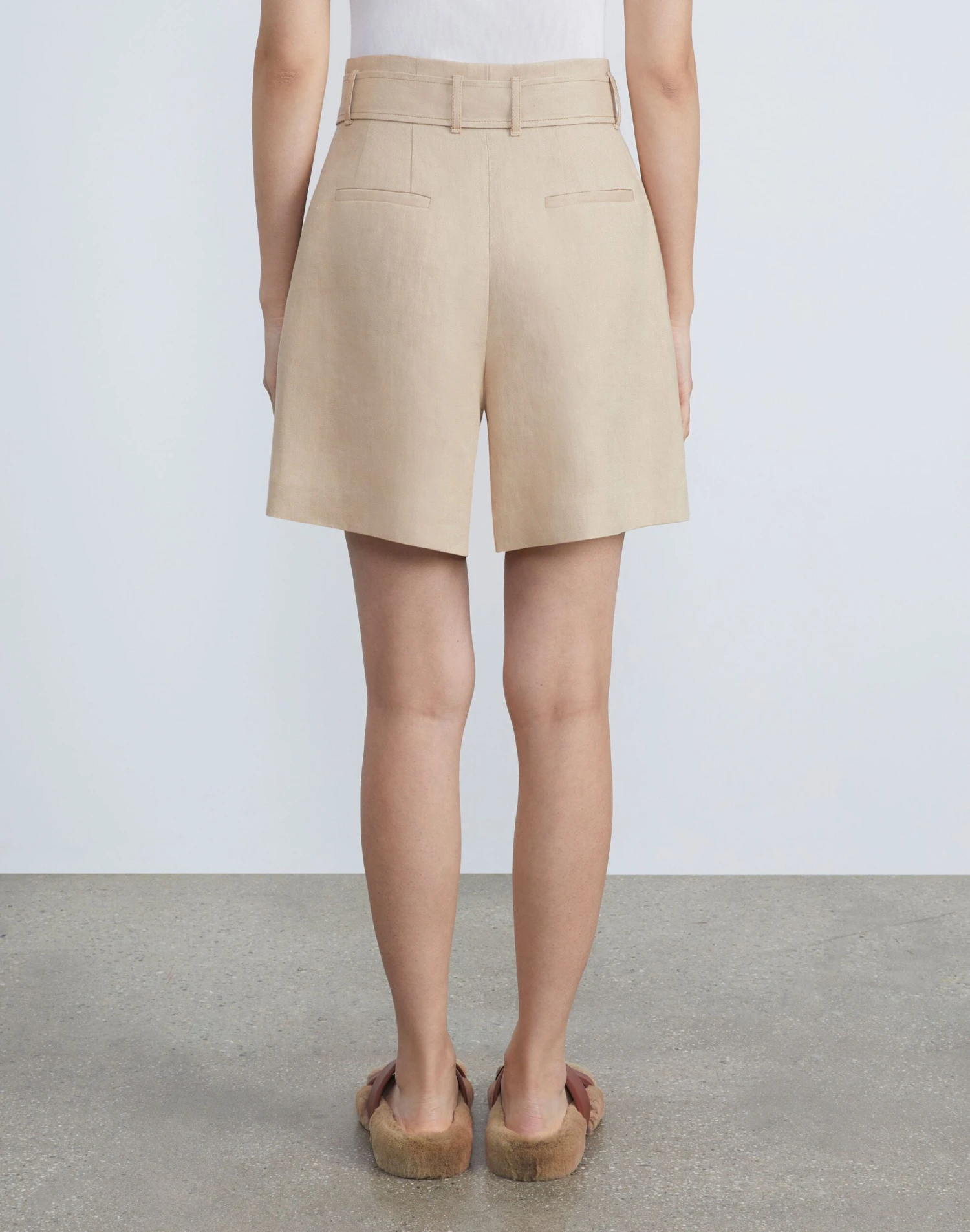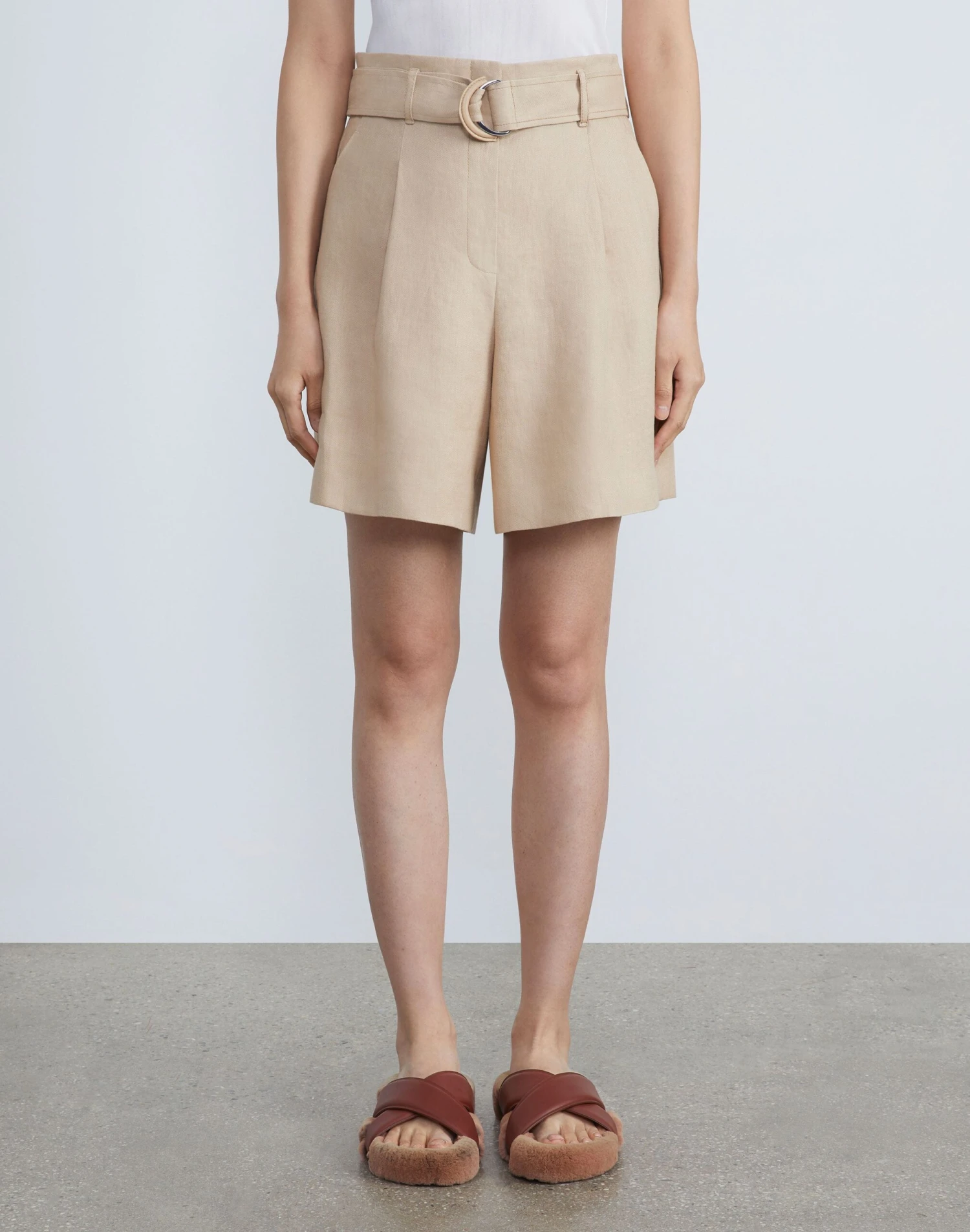 Essential to every wardrobe, the linen Degraw short merges polished tailoring with a relaxed aesthetic. The full-leg cut is finished with a waist-defining high rise and leather-trimmed D-ring buckle belt.
