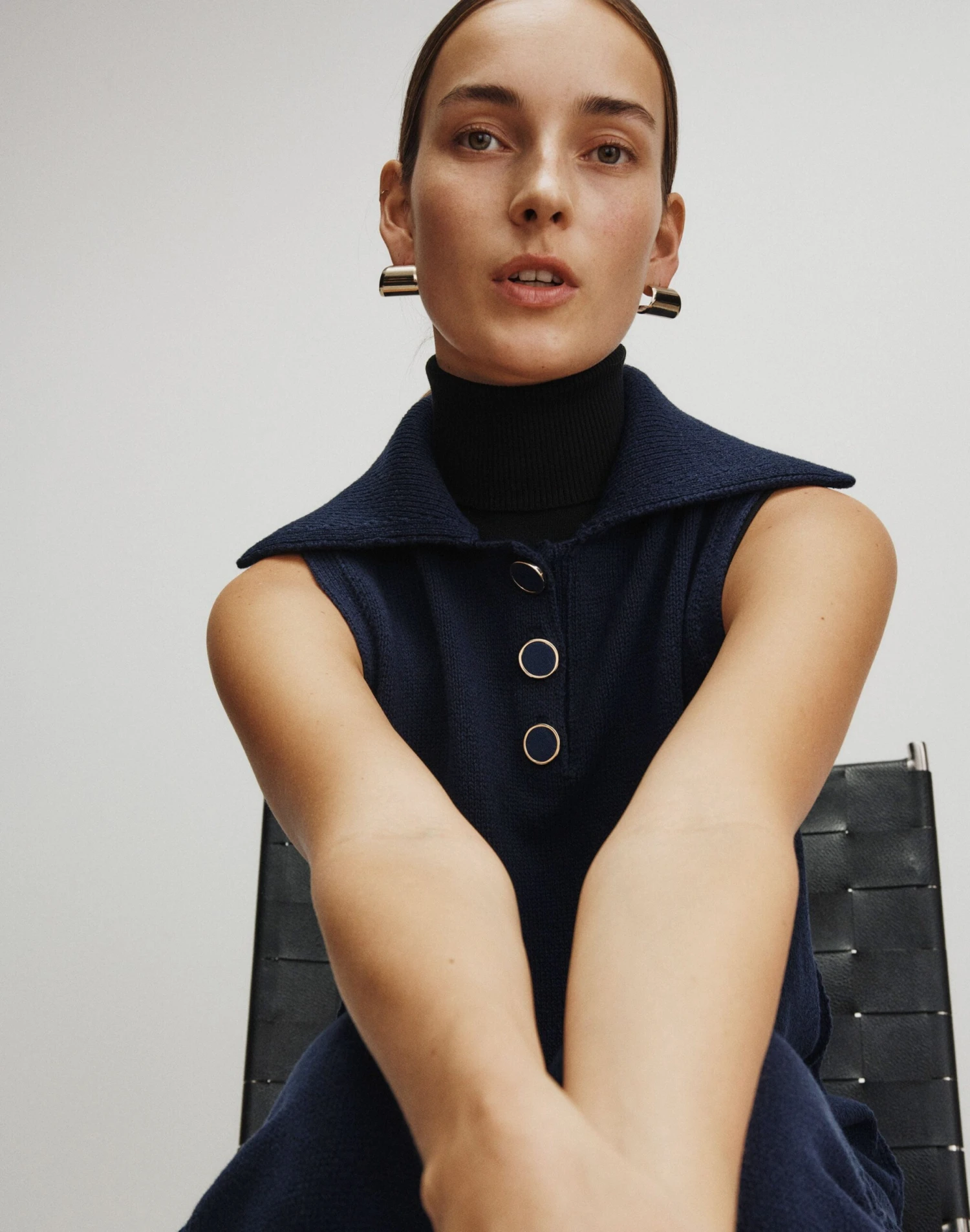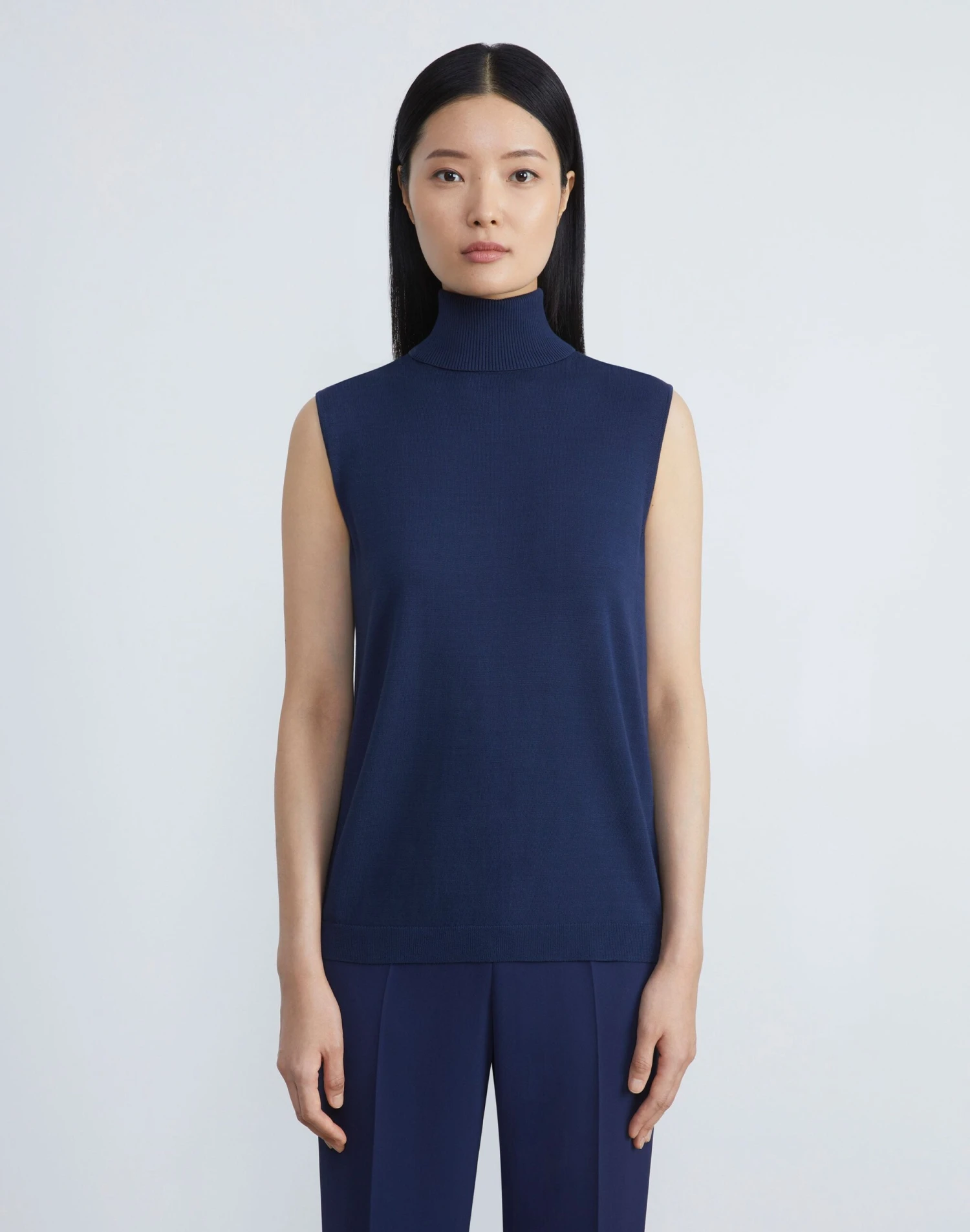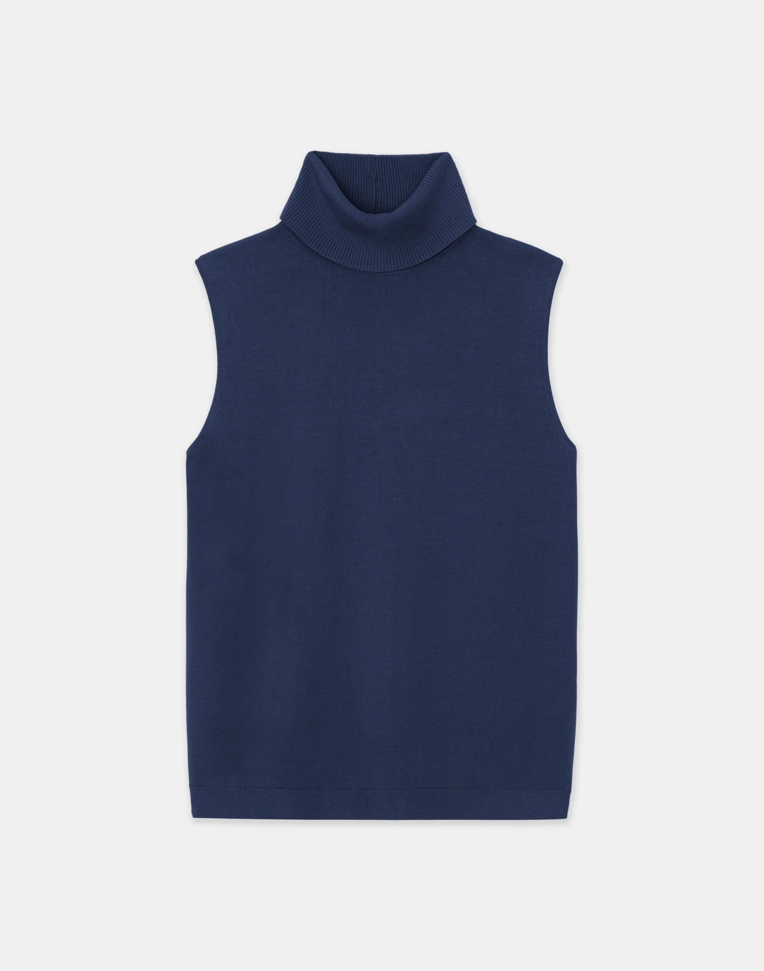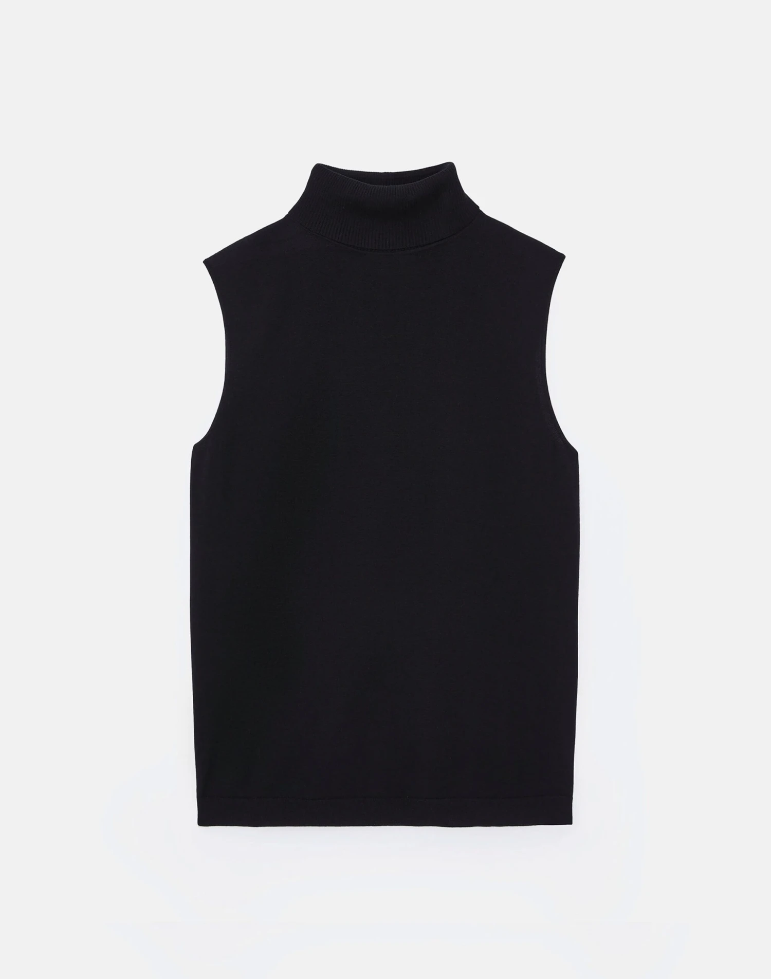 Made for seasonless layering, this turtleneck sweater is crafted from House heritage Matte crepe and plaited with fluid viscose for a smooth fit and soft feel. The relaxed silhouette features a sleeveless design with off-shoulder seams and ribbed hemlines.