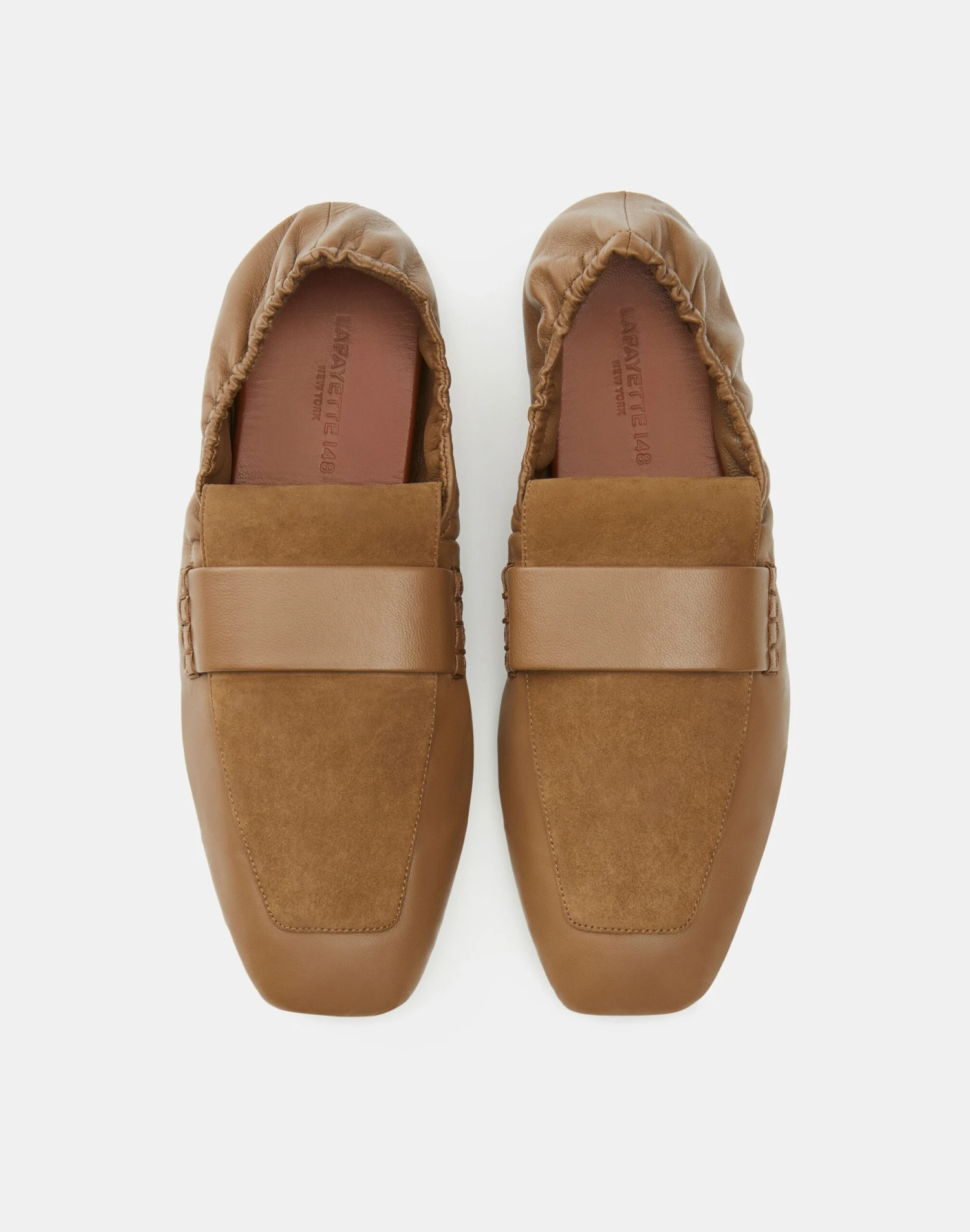 Crafted in Italy from rich nappa leather, this driving loafer is soft, supple and designed to fold in half for effortless packability. The menswear-inspired design slips on with a ruched collar and features a suede tongue, tonal crossband and a cushioned, hand-stitched sole lined in smooth leather.