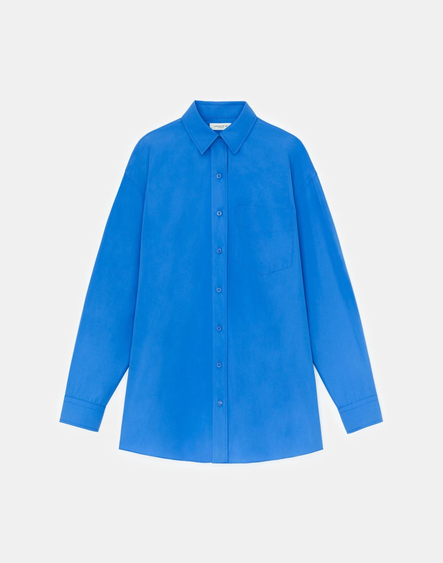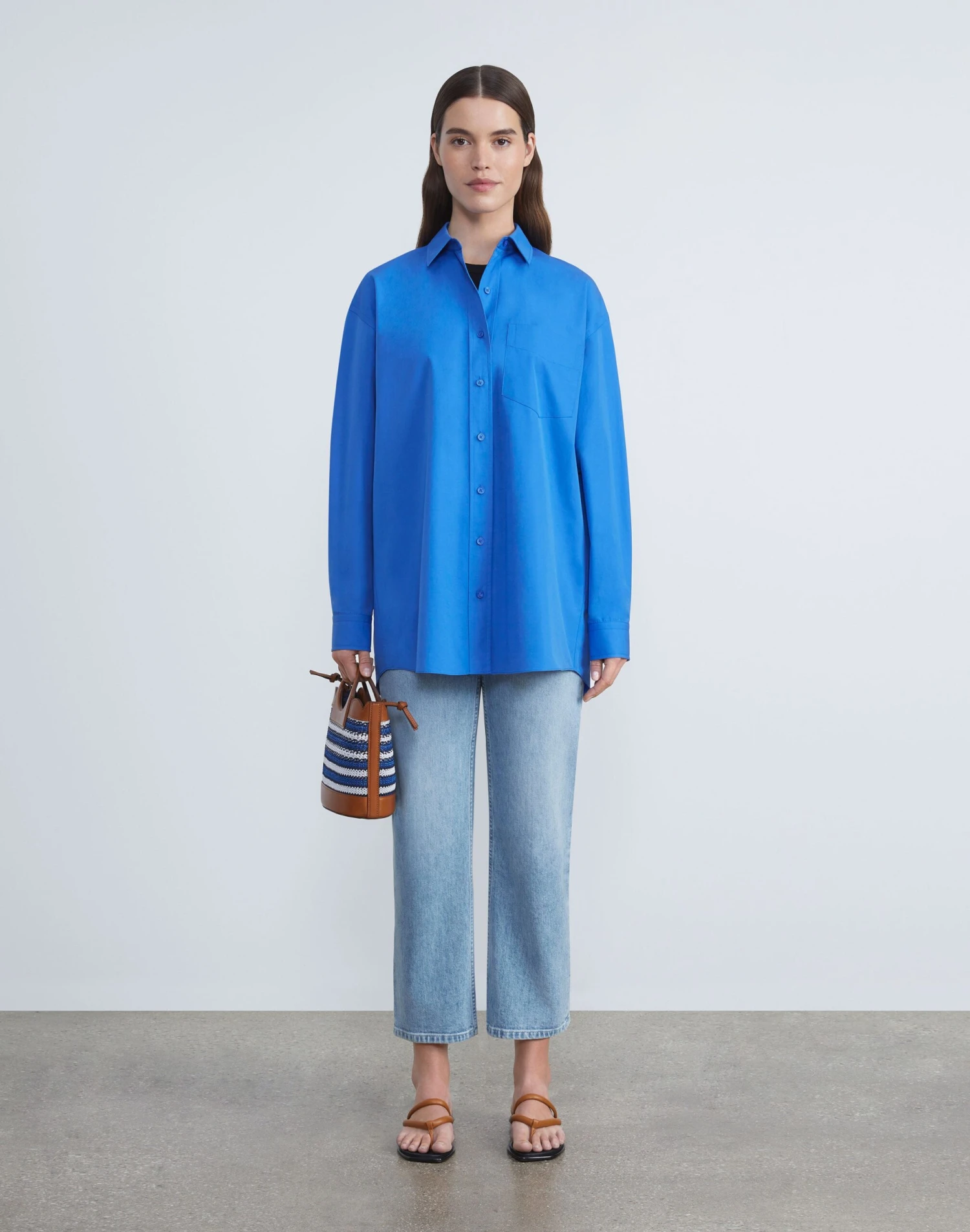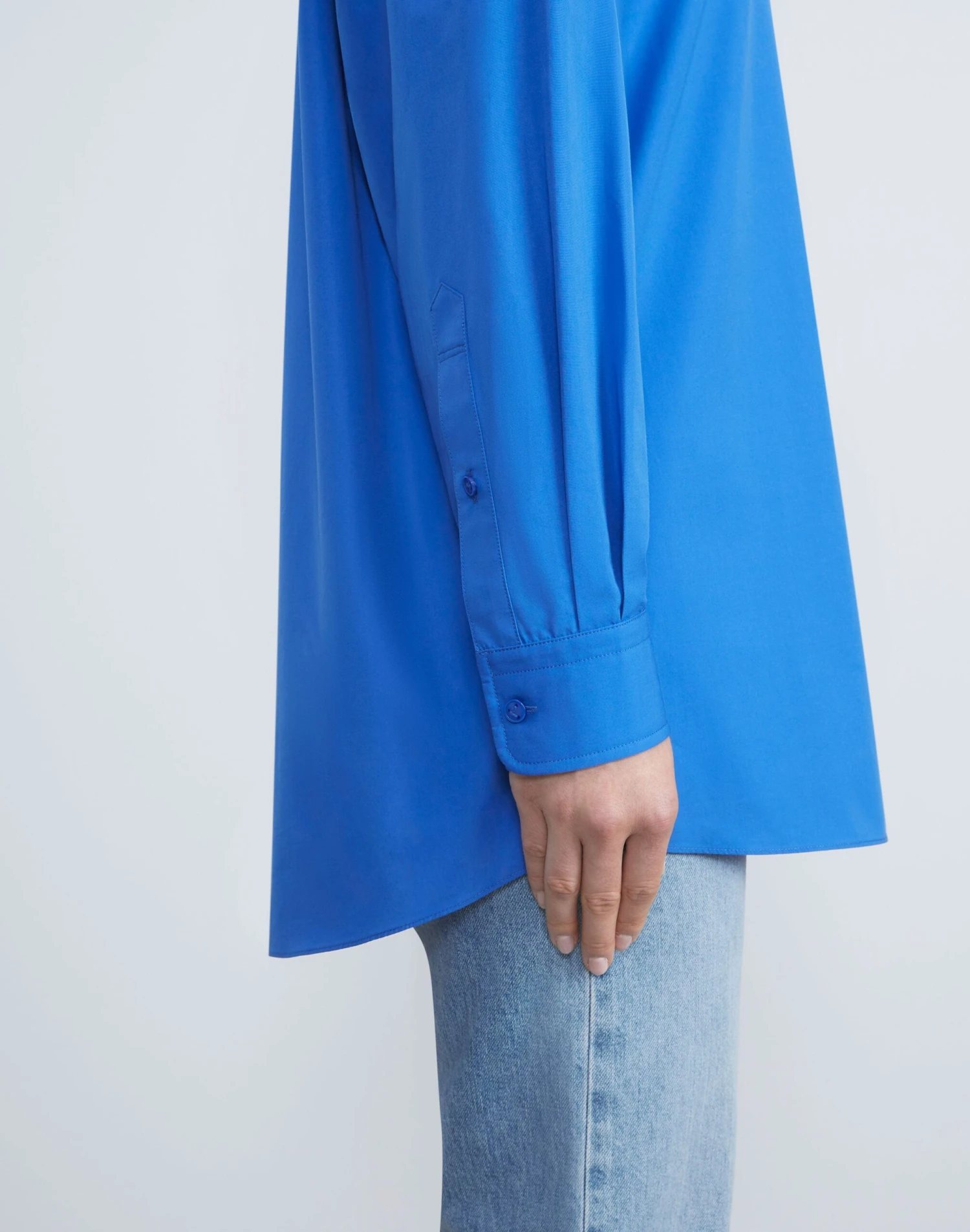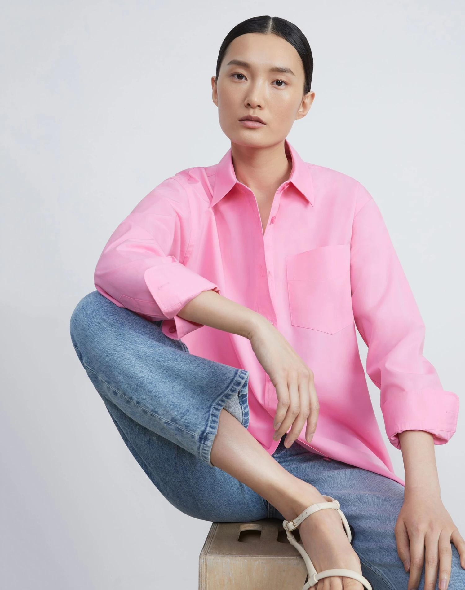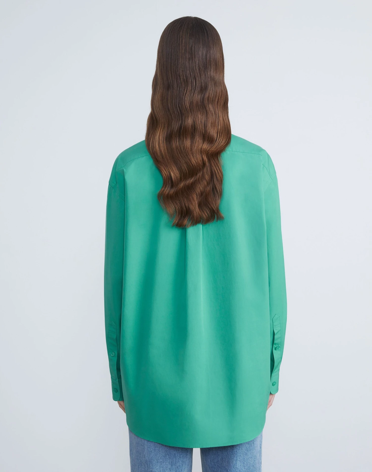 Clean lines and boyfriend-inspired proportions define this button-front shirt, precision cut in an oversized silhouette with a dropped back hem. Crafted from organic Italian cotton poplin, it’s soft and crisp with a structured fit, and finished with a sharp shirt collar and refined button-cuffed sleeves for a sartorial finish.