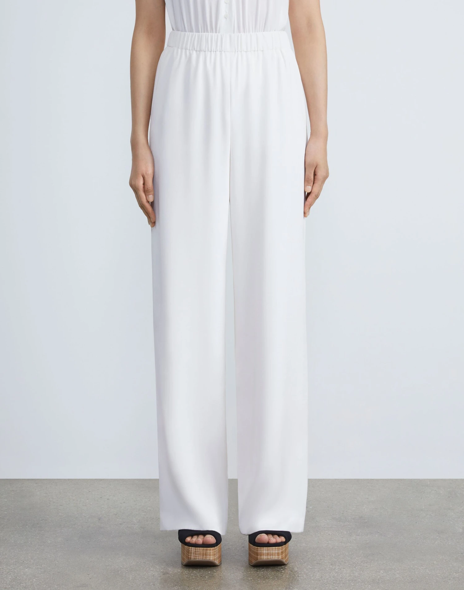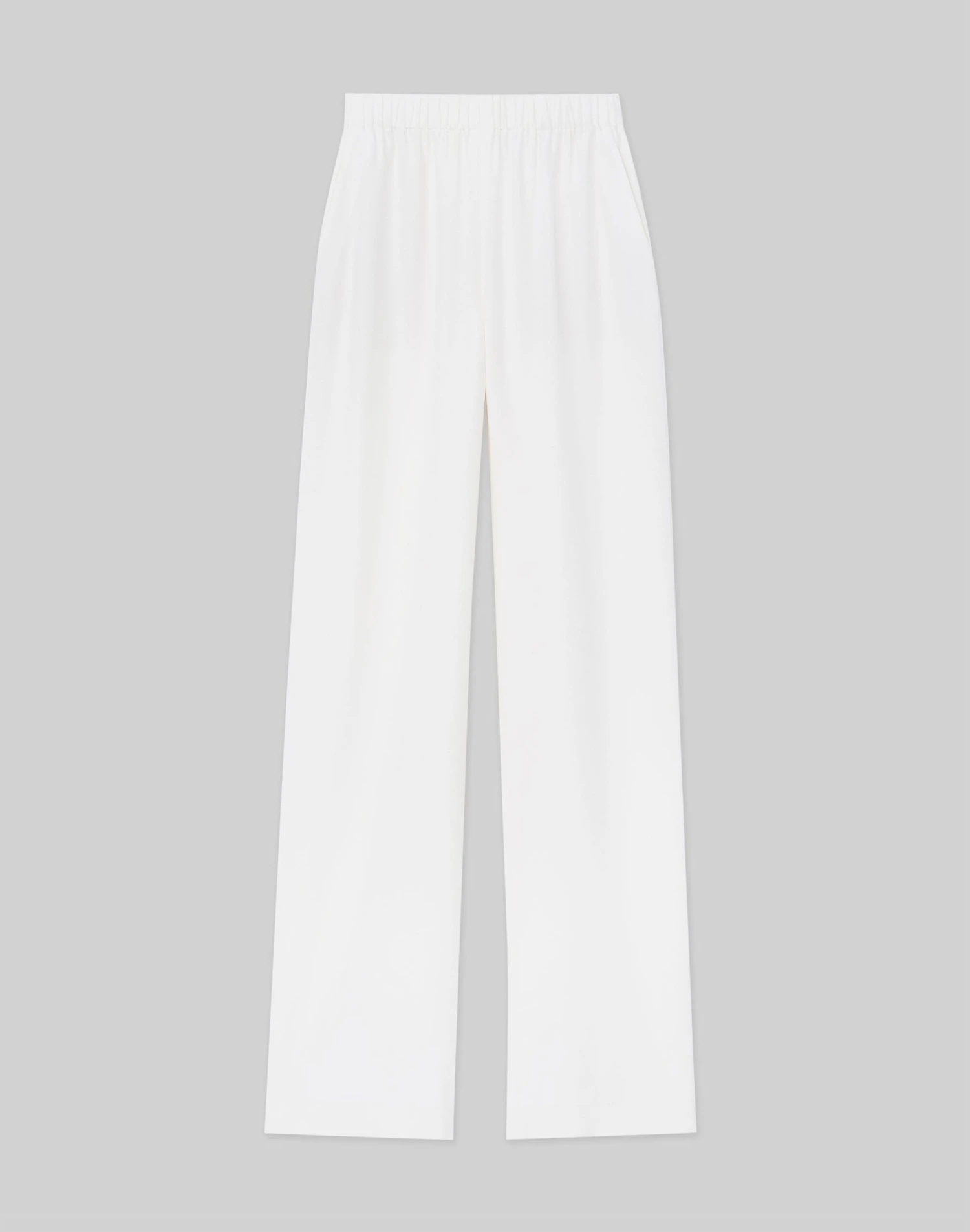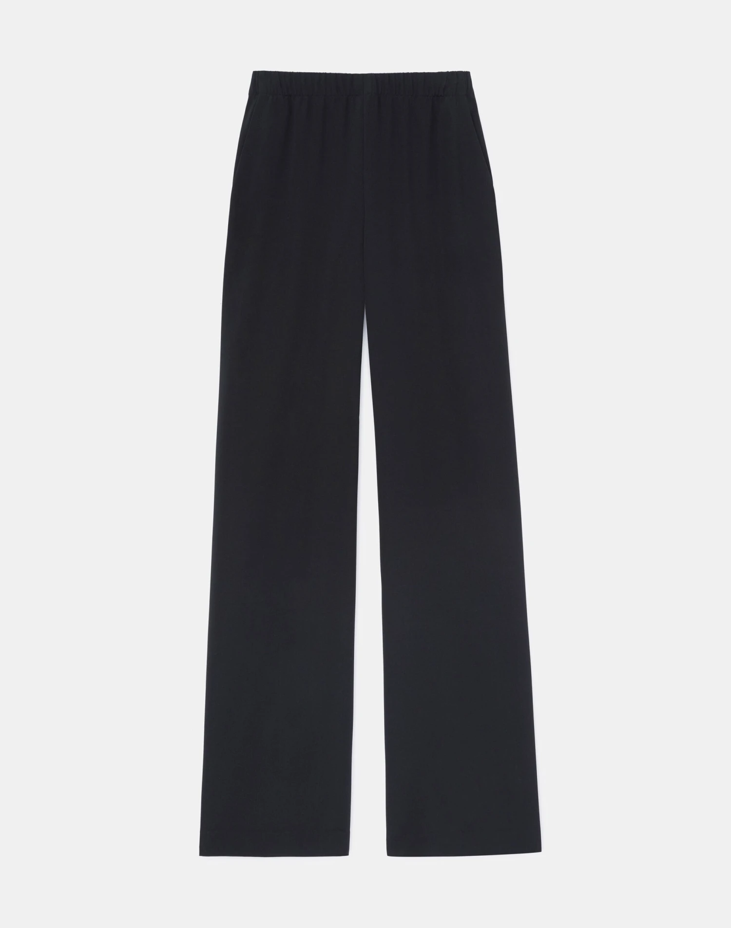 Confidently blurring the lines between relaxed and refined, the Perry pant is rendered in tactile organic silk crepe de chine with a hint of stretch. The effortless pull-on design drapes fluidly through a full-leg finish.