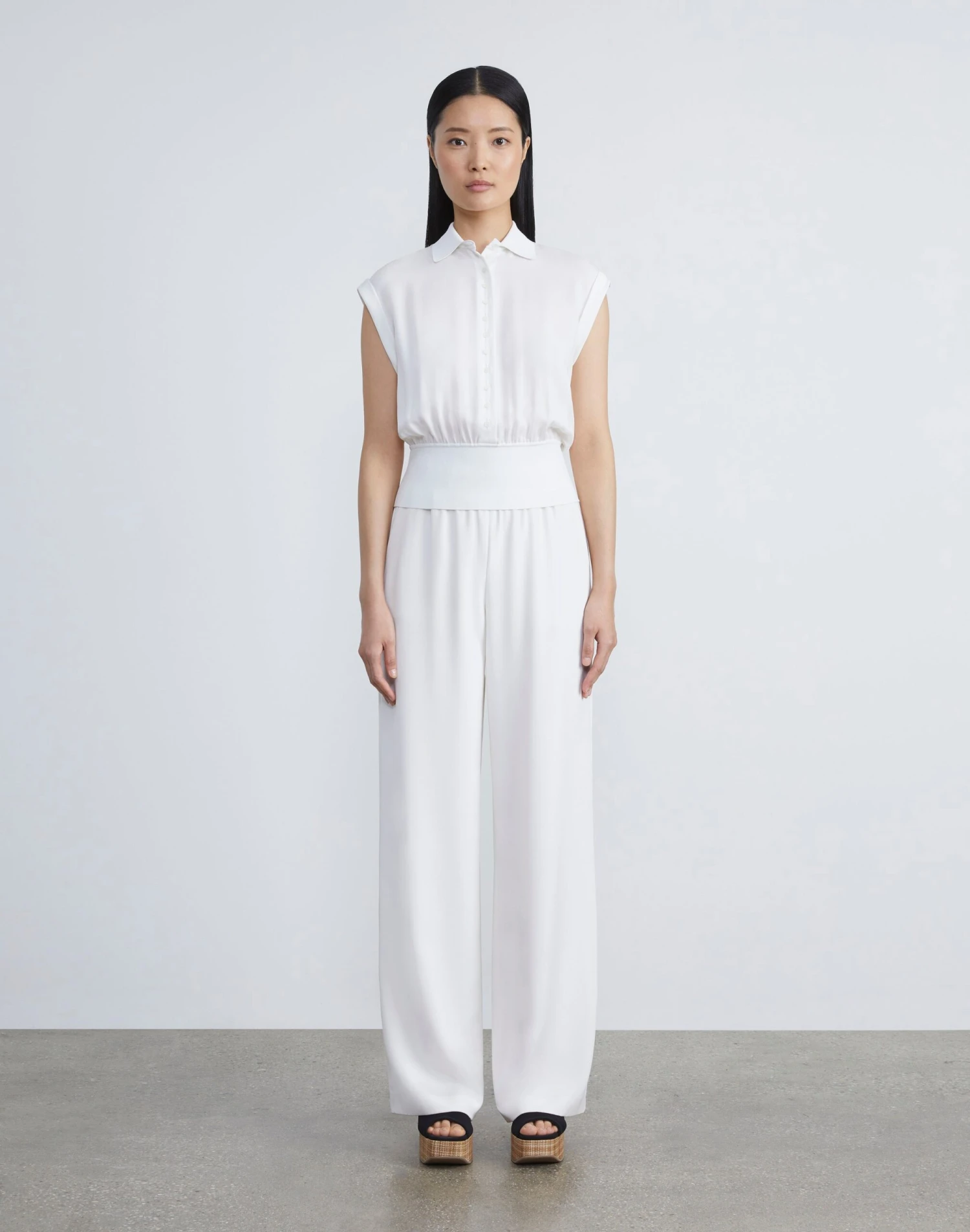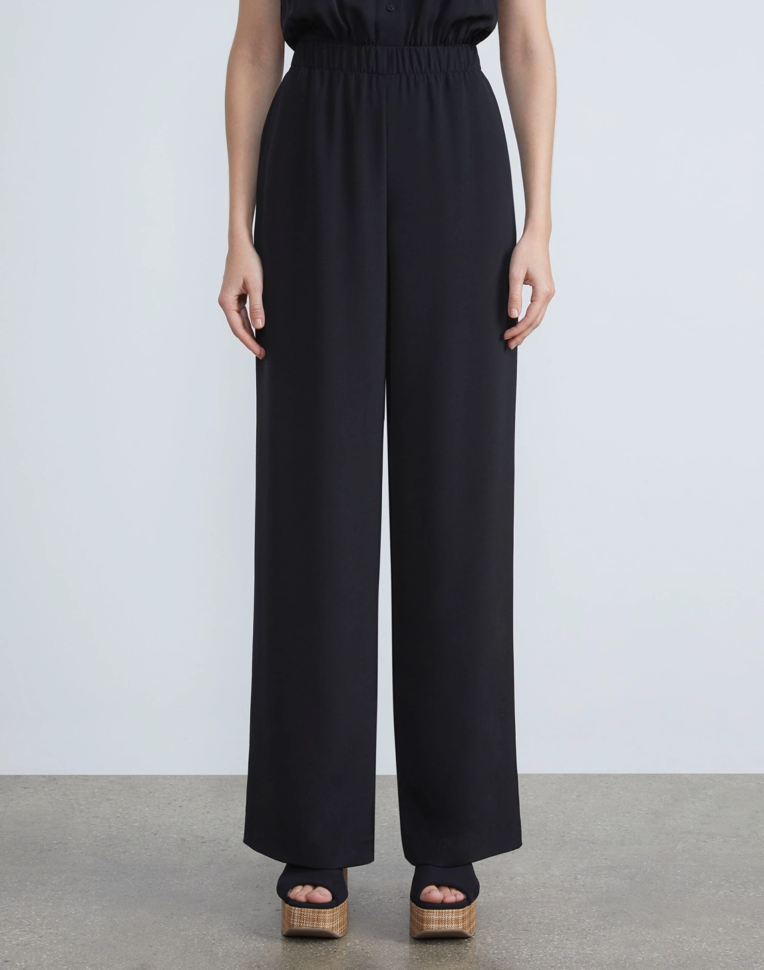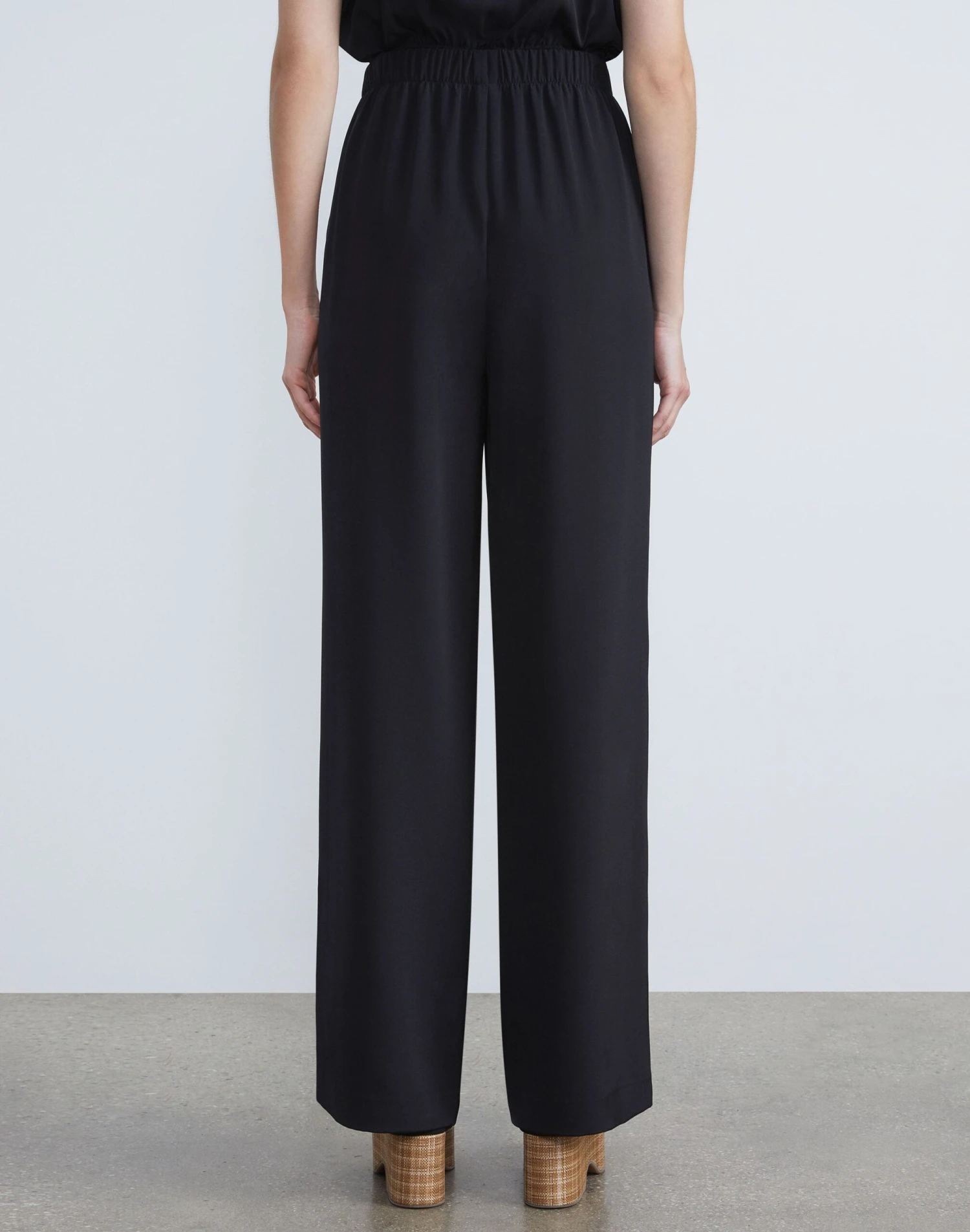 Confidently blurring the lines between relaxed and refined, the Perry pant is rendered in tactile organic silk crepe de chine with a hint of stretch. The effortless pull-on design drapes fluidly through a full-leg finish.