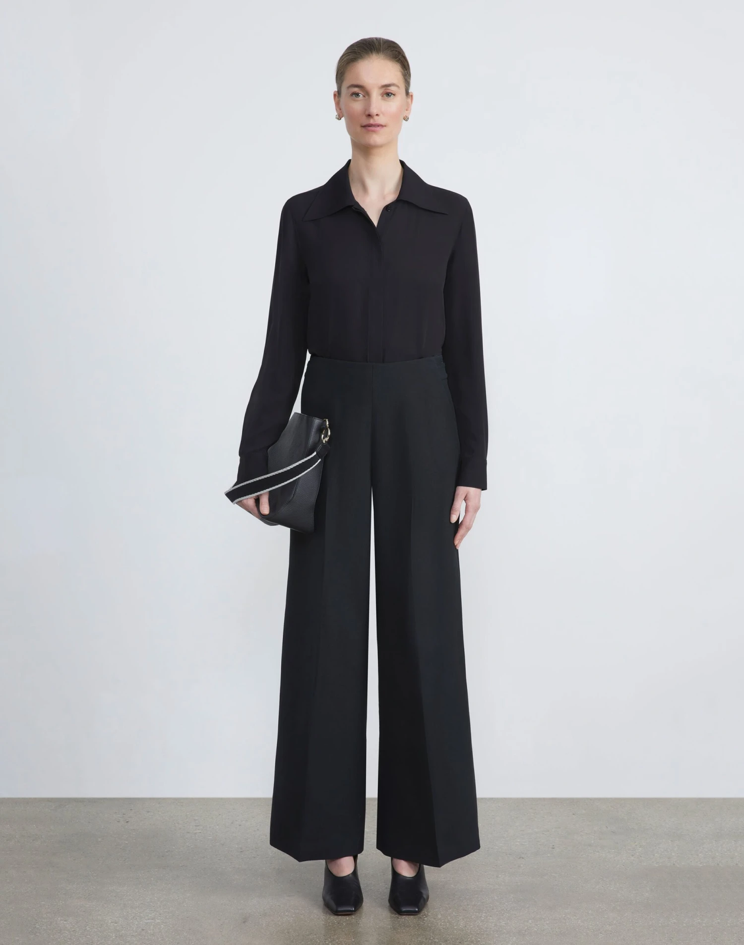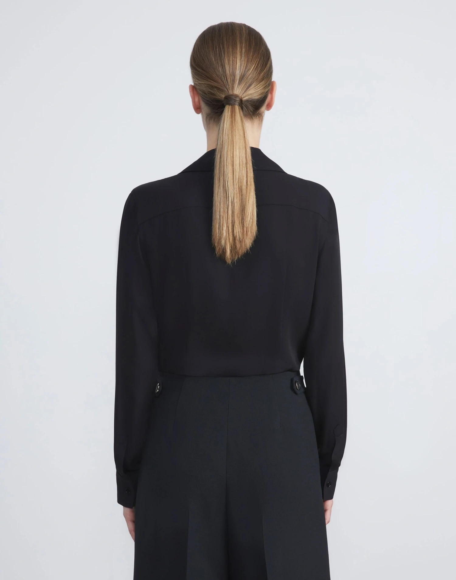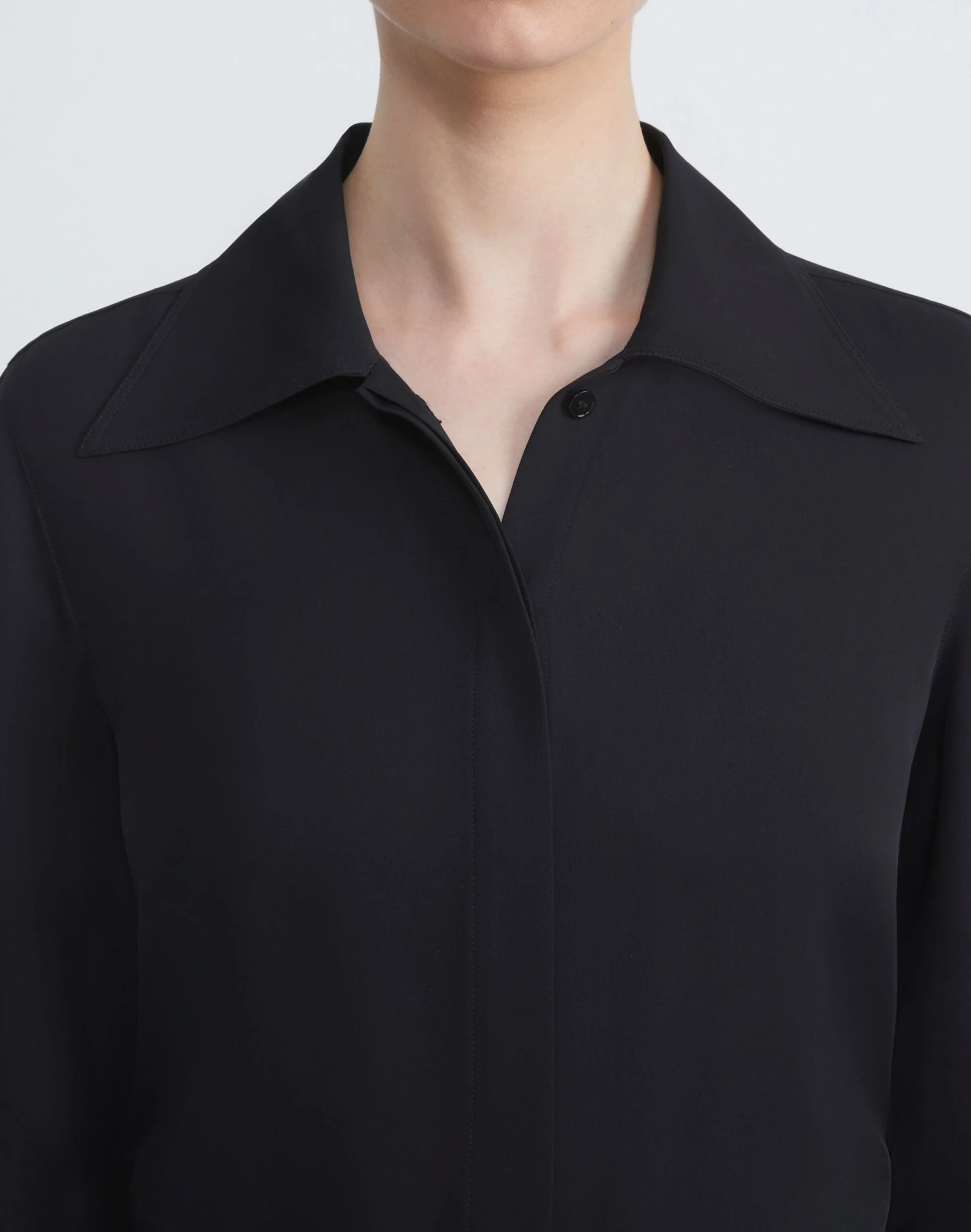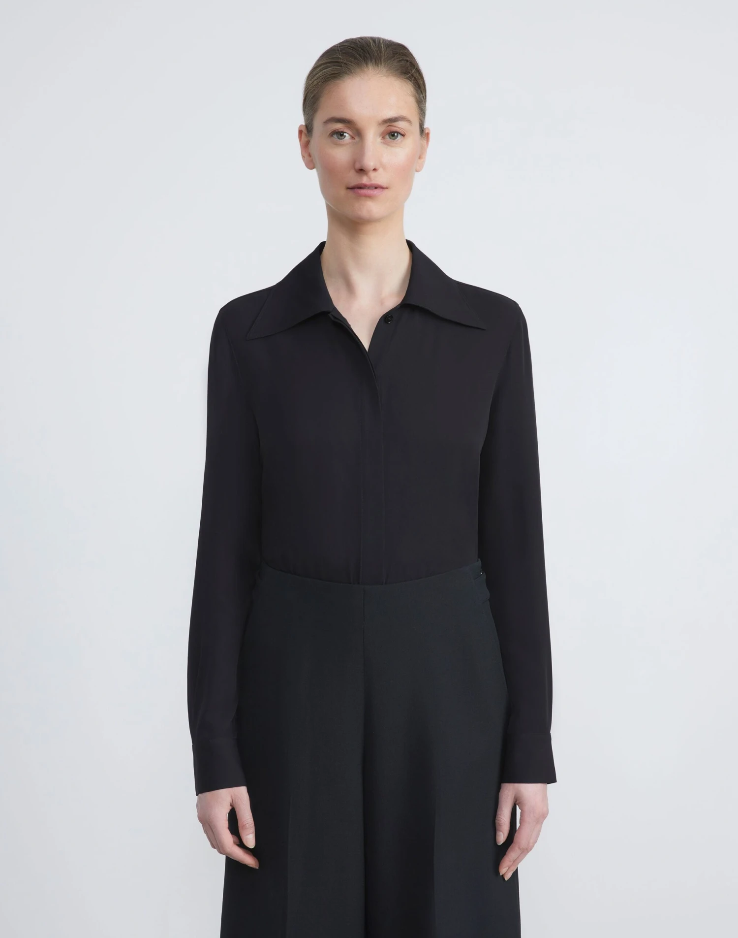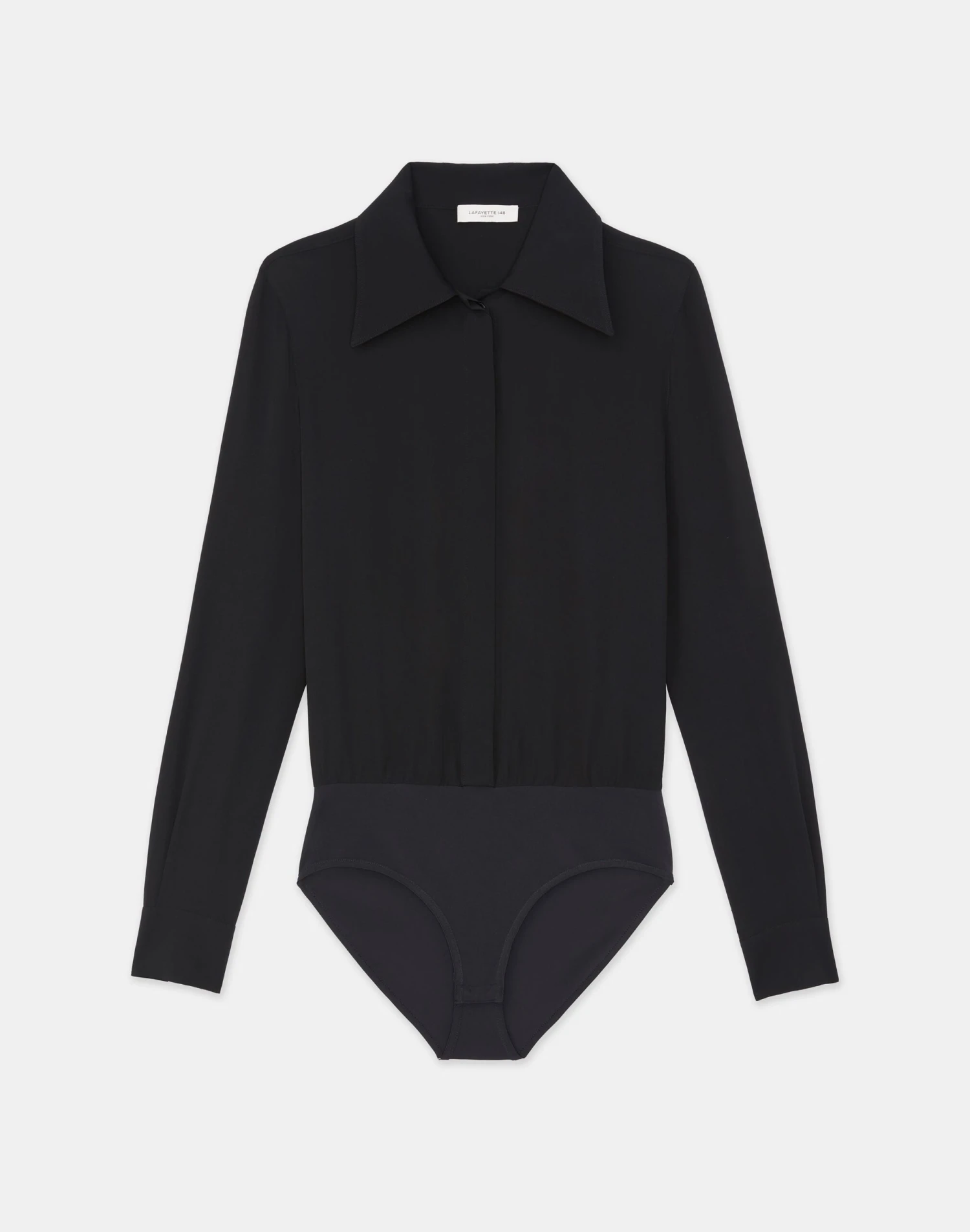 Pared-back to perfection, this long-sleeve blouse bodysuit is expertly crafted from organic silk georgette with light, fluid drape. It’s punctuated with the collection’s vintage-inspired cutaway collar and clean-finished with button cuffs and a hidden placket.