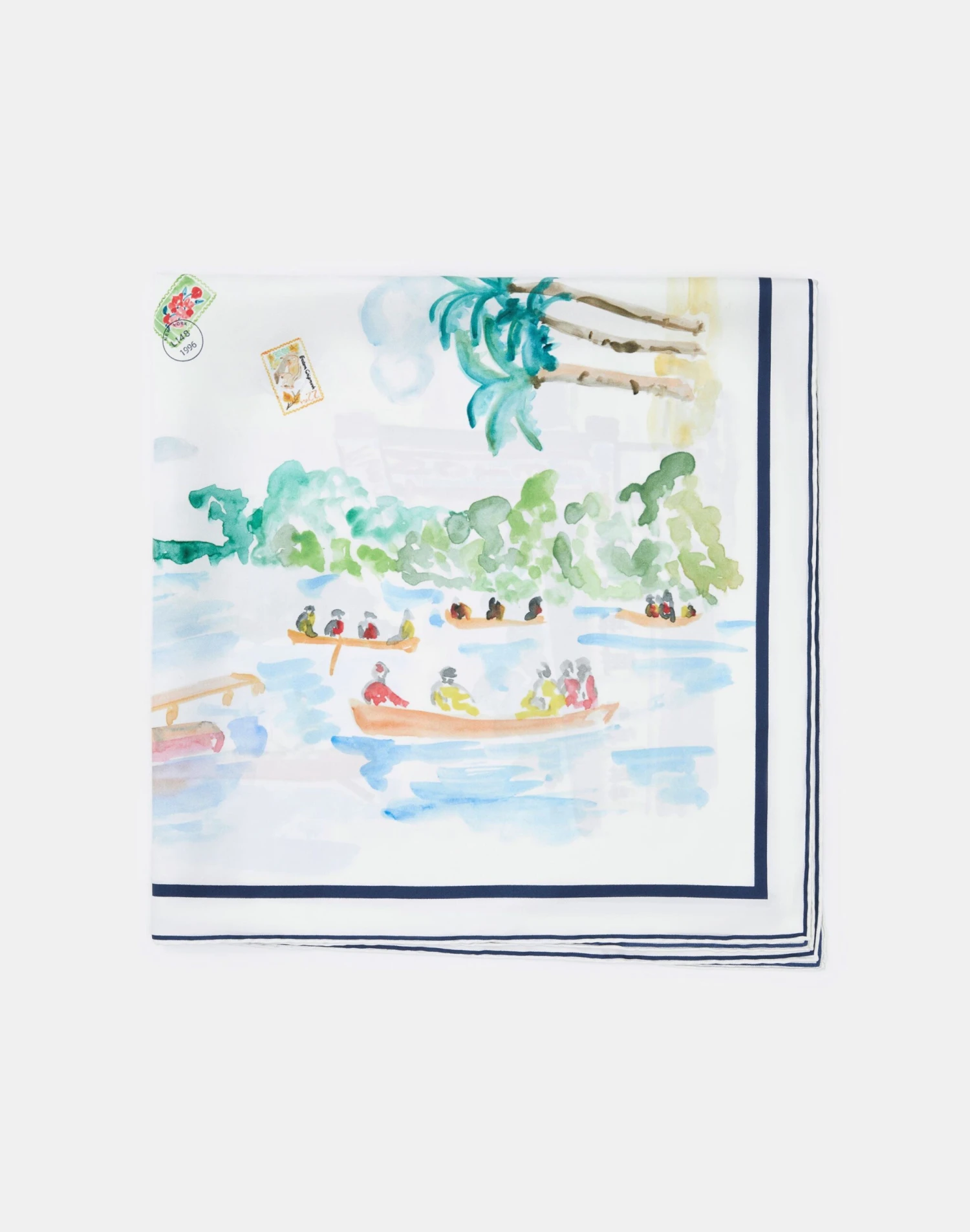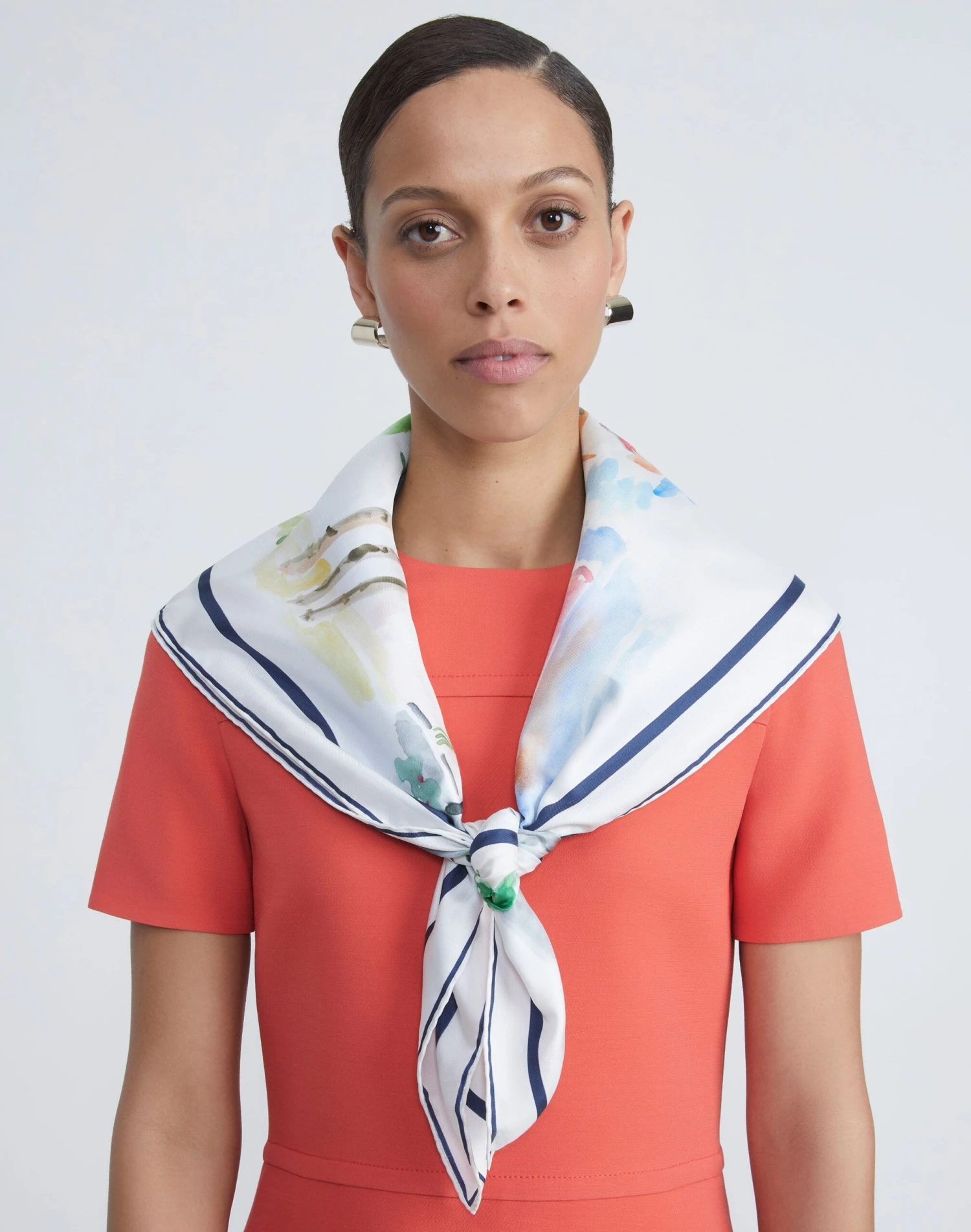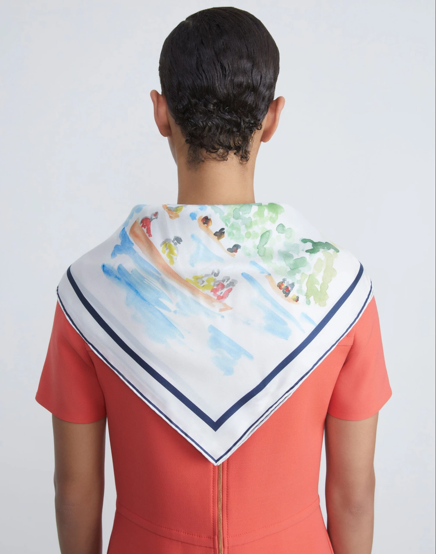 Celebrating Pre-Fall 2023’s postal inspiration, this fluid square scarf features the collection’s hand-painted Postcards print—a custom creation by L148’s resident artist. It’s crafted in Italy from pure silk and meticulously finished with hand-rolled edges.