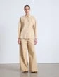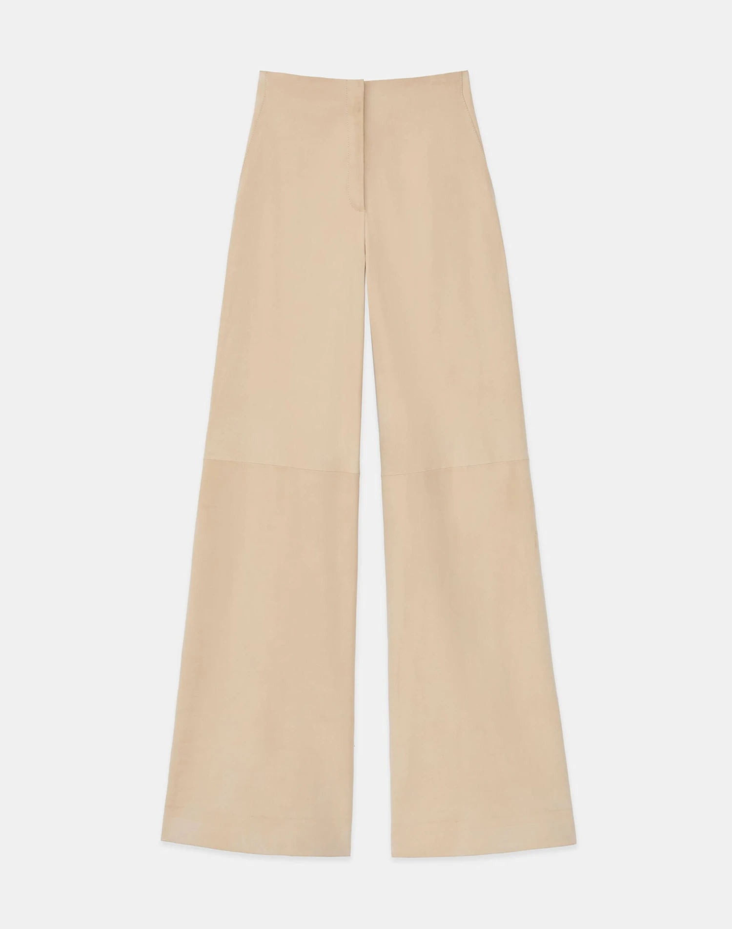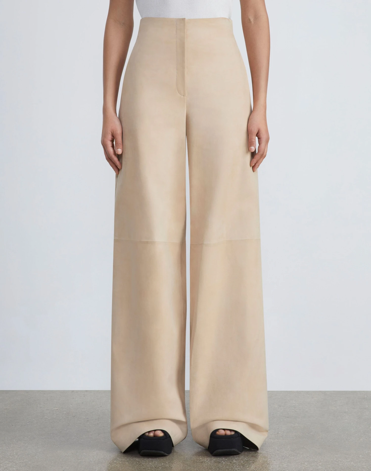 Modern luxury and sculptural simplicity coalesce in the Thames pant, precision cut from supple Italian suede with an ultra wide leg. The elongating high-rise design is defined by contouring darts and a postal uniform-inspired buckle tab belt. Pair it with the coordinating .