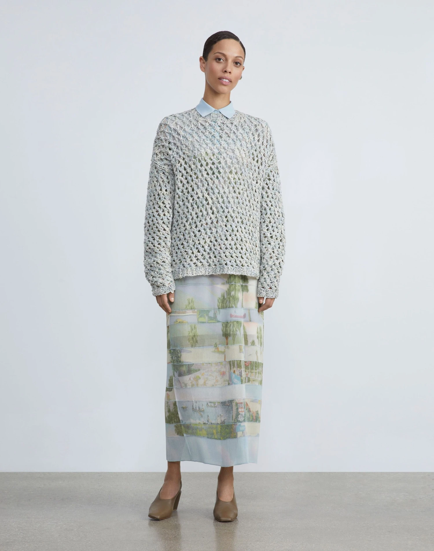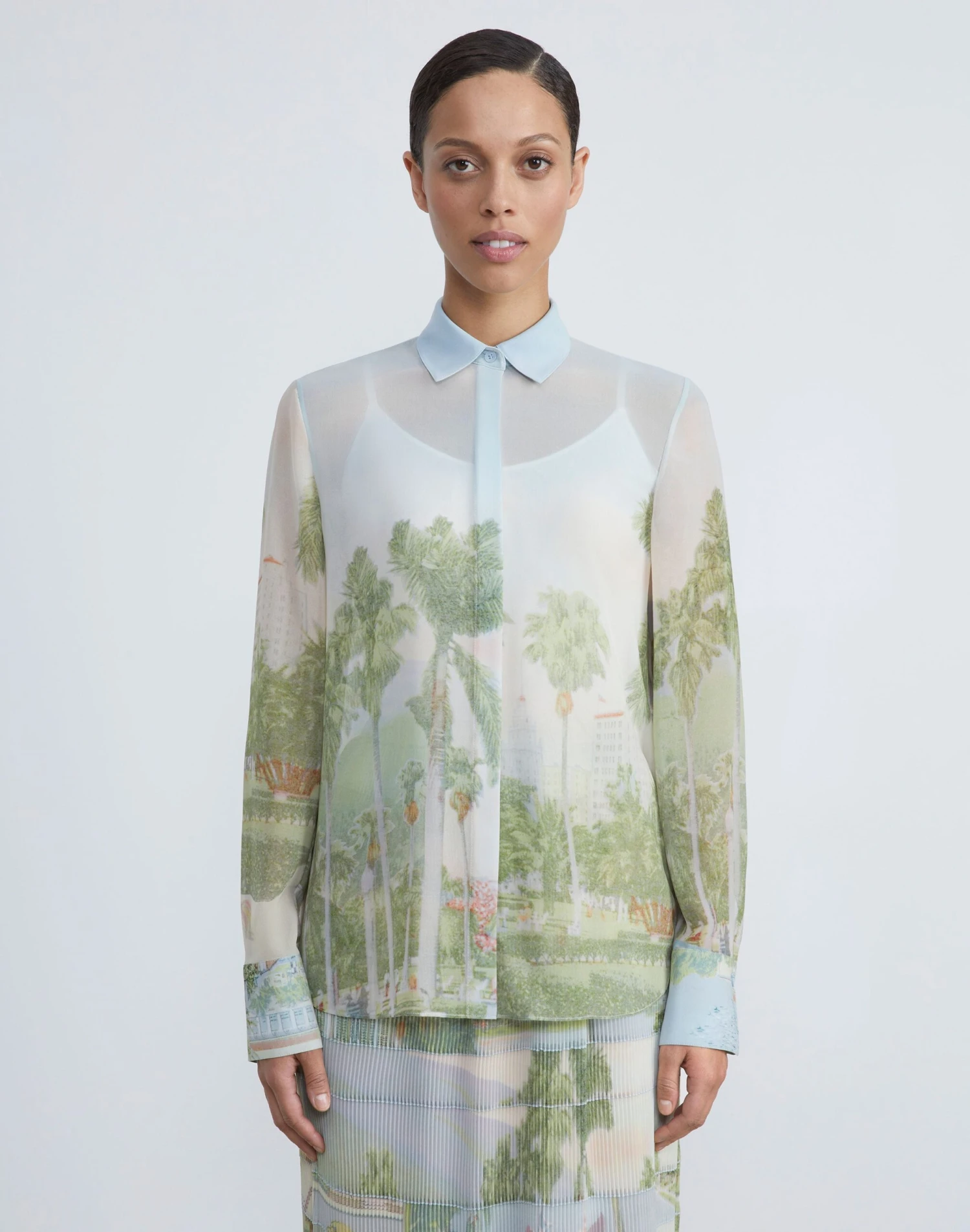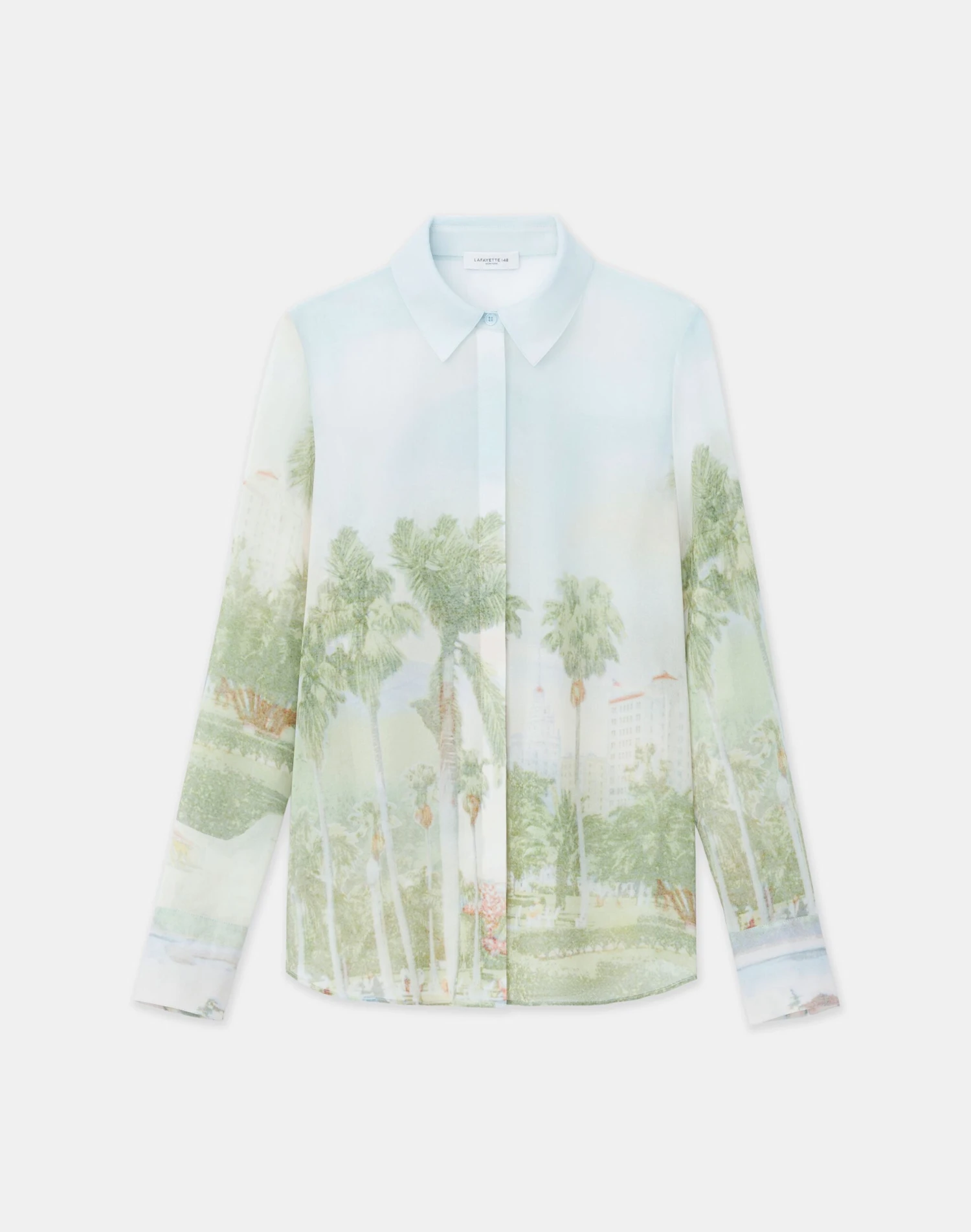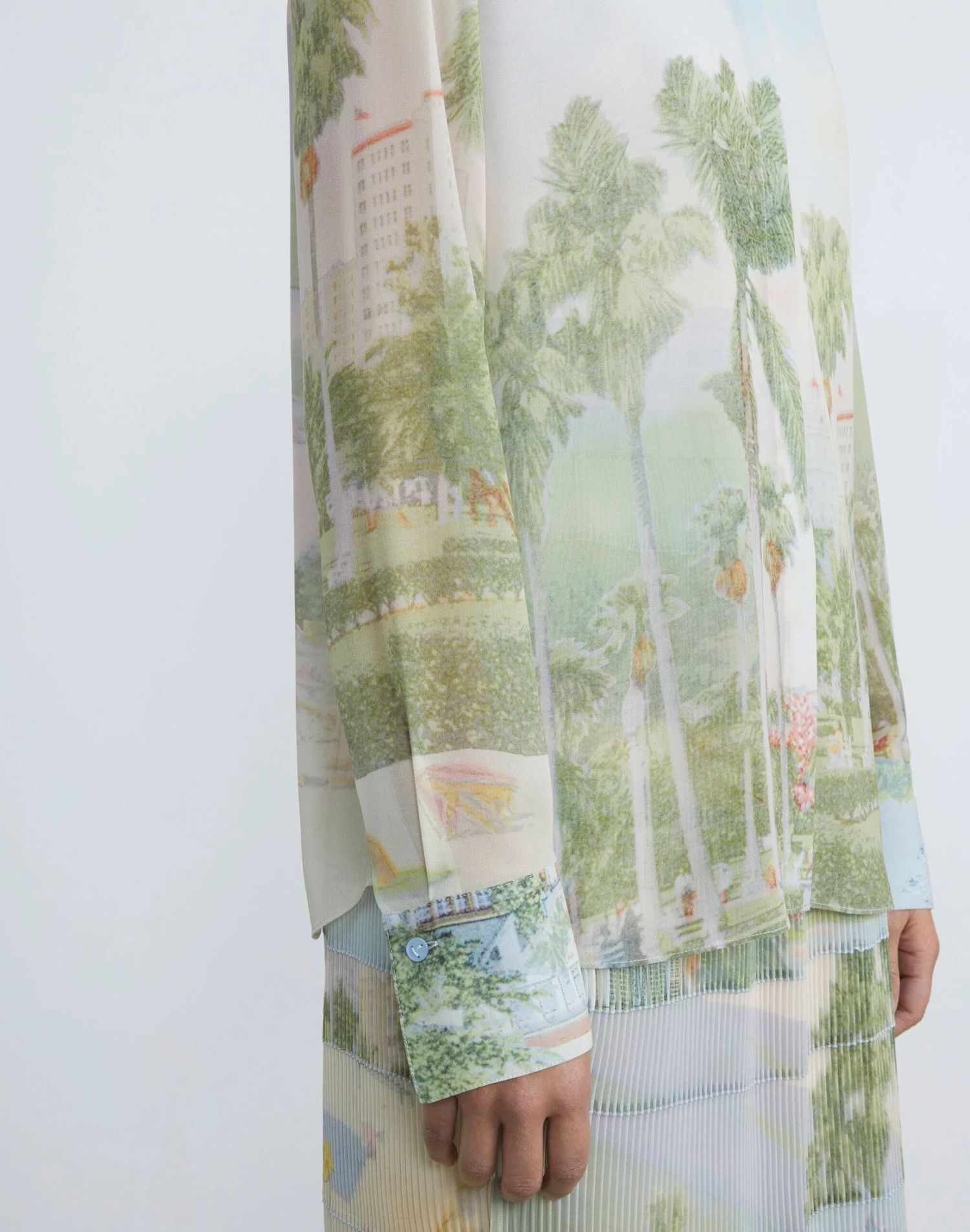 An immaculate canvas for the Pre-Fall 2023 collection’s vintage Postcards print, this heritage long-sleeve blouse is crafted on a gossamer canvas of lightweight chiffon. The minimalist design is cut in a straight silhouette with a polished shirt collar, button cuffs and hidden placket.