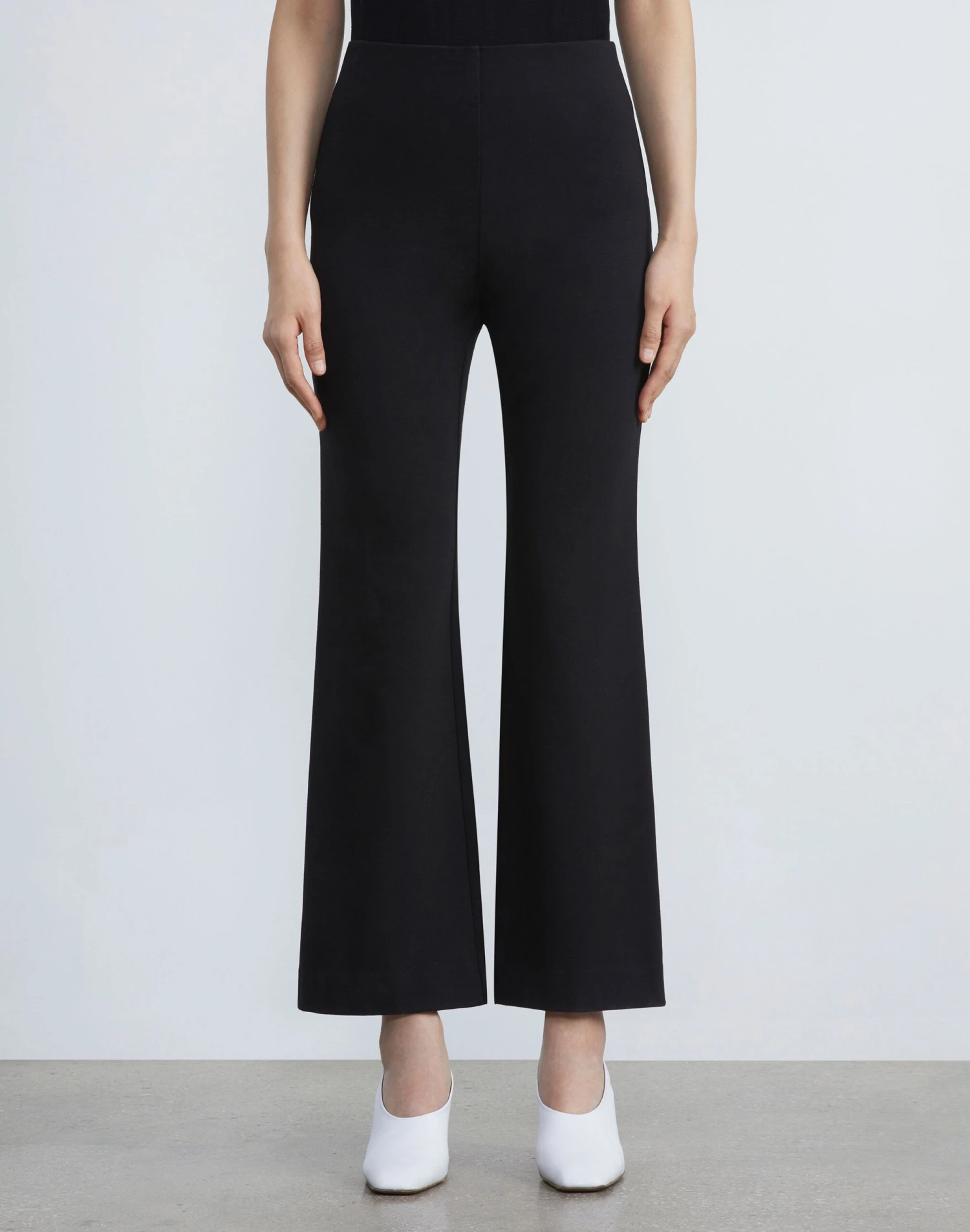Relaxed tailoring and modern proportions come together in this at-ease update to the Gates pant, constructed from regenerated Italian Punto Milano with contouring stretch. It’s expertly cut with a slightly fitted shape and flared, ankle hem and finished with an elasticized waistband.