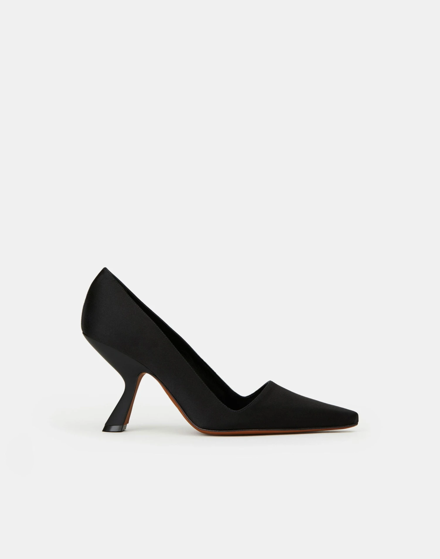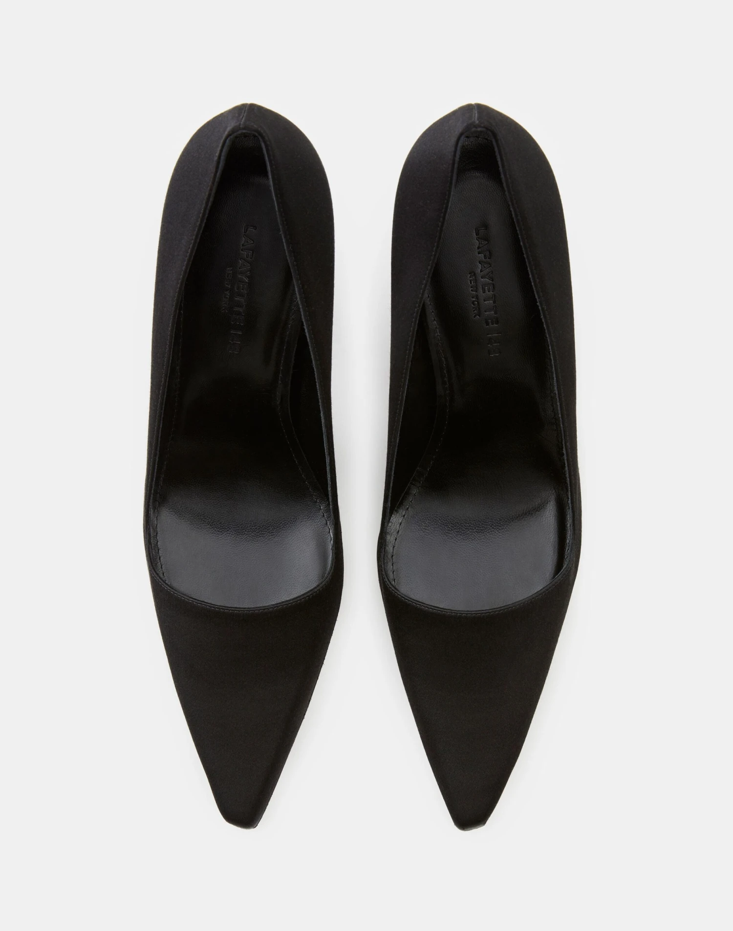 Defined by impeccable Italian craftsmanship, curved lines and sculptural design, this modern pump is set on L148’s signature architectural icon heel. Beautifully constructed in smooth satin, the pointed-toe silhouette is lined in softly structured leather and finished with a cushioned footbed and flawless fit.