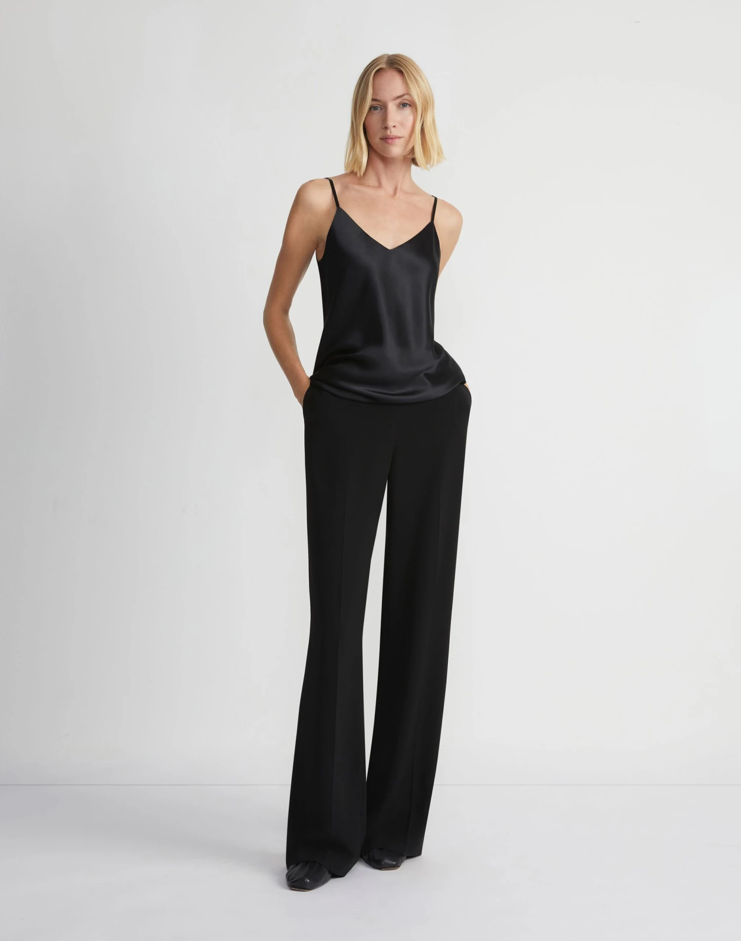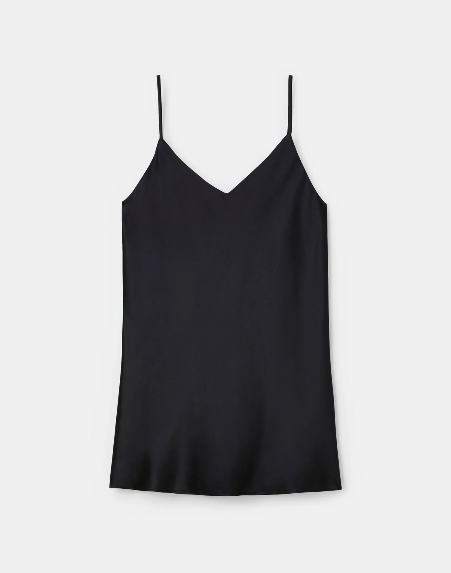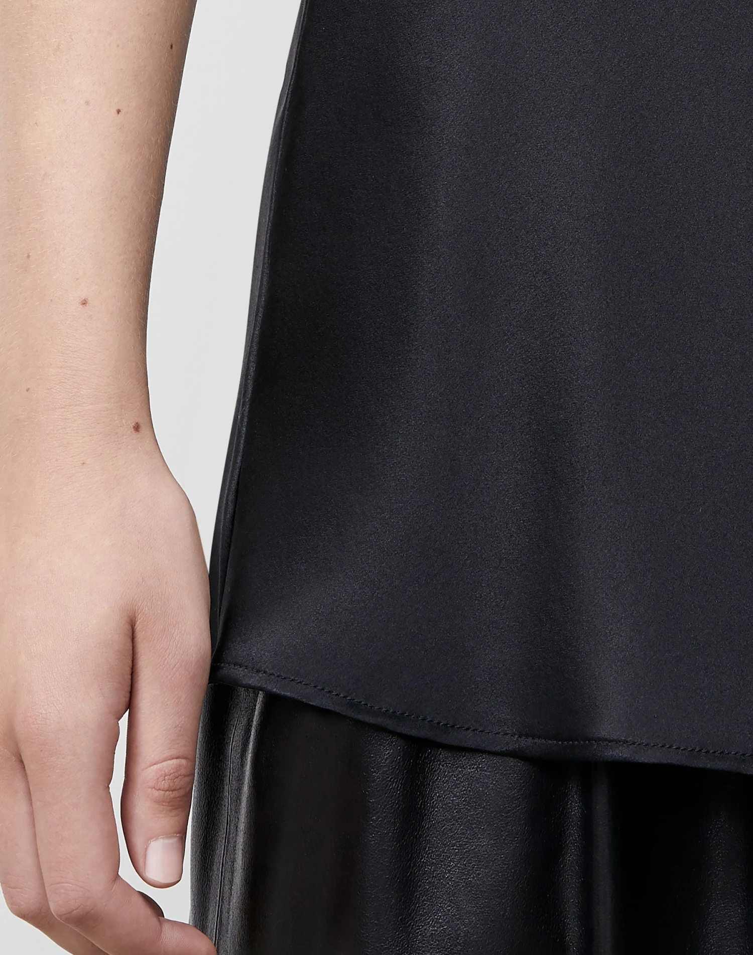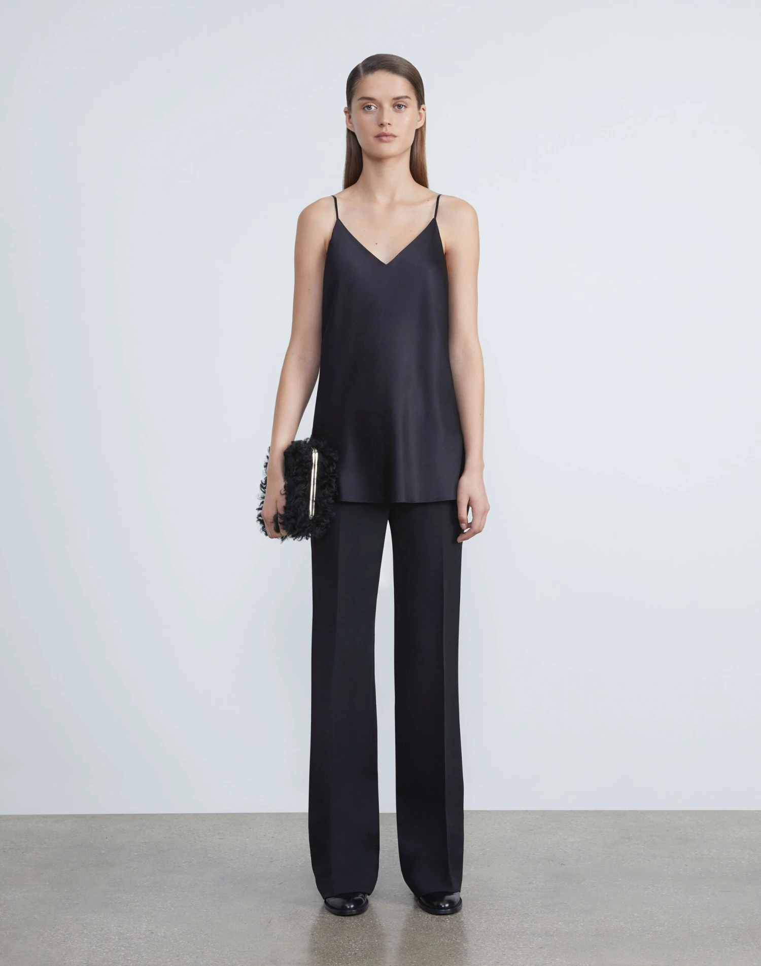 Simply striking, this design-favorite tank is crafted in lustrous, pure silk charmeuse. It’s cut on the bias, draping effortlessly through thin straps and a sharp V-neckline.