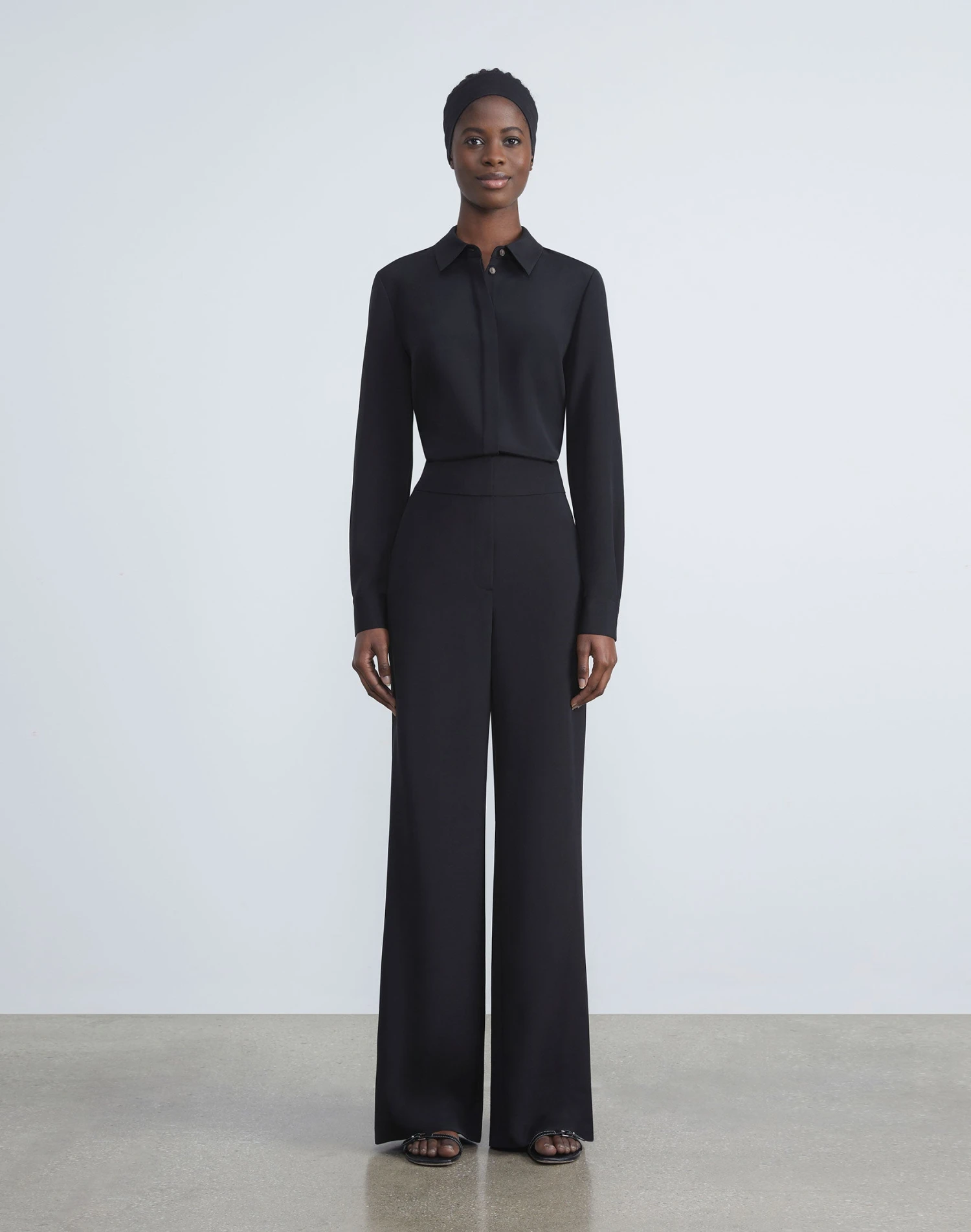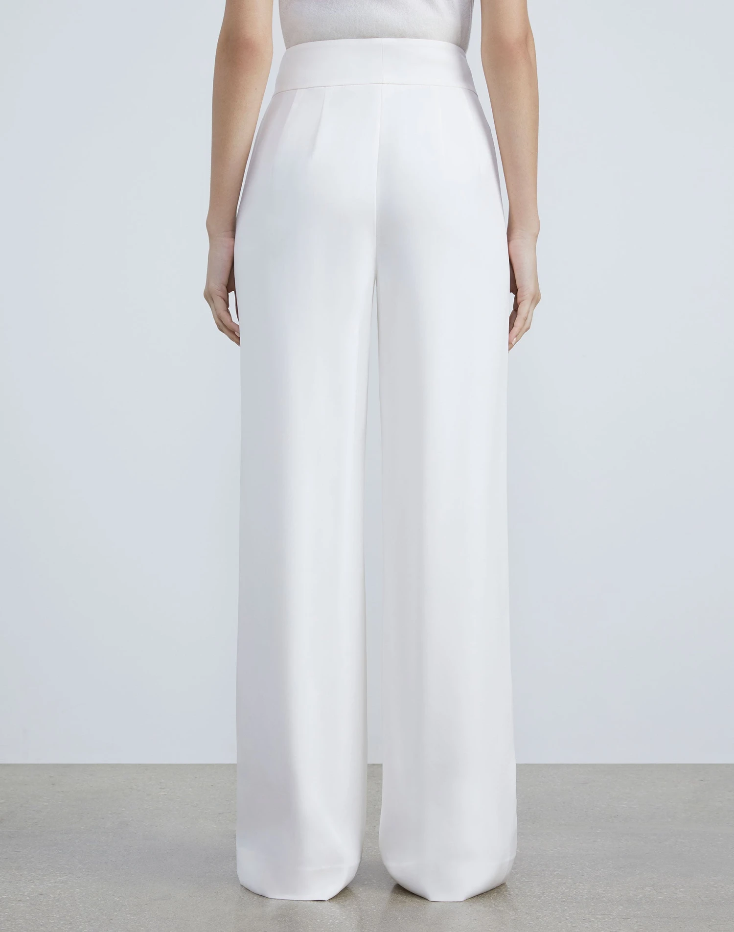 Rendered in fluid silk crepe de chine, this luxe update to the Dalton Pant is cut with a high-rise waist that drapes through a wide-leg and pooling hem. Make it a modern suiting look with the matching .