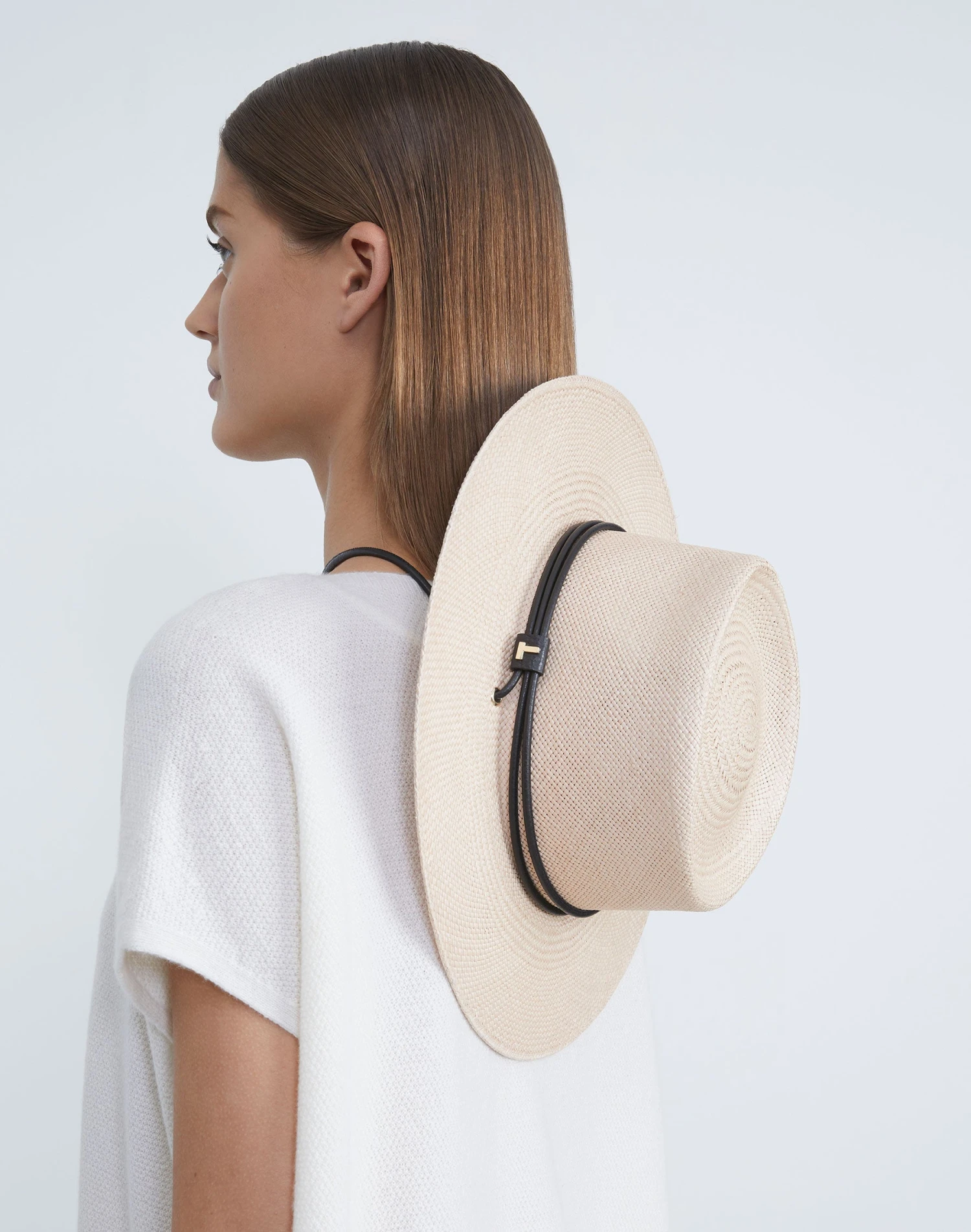 Debuting for Spring/Summer 2022, the Bolero Icon Hat fuses exquisite Italian craftsmanship and modern design. Each hat is expertly woven from natural Ecuadorian straw, and hand-finished in Italy with precision to achieve a structured shape. It’s accented with a thin, double-wrapped Italian leather band and an adjustable leather strap, and finished with the signature L148 L Beam icon in polished silver-tone metal.