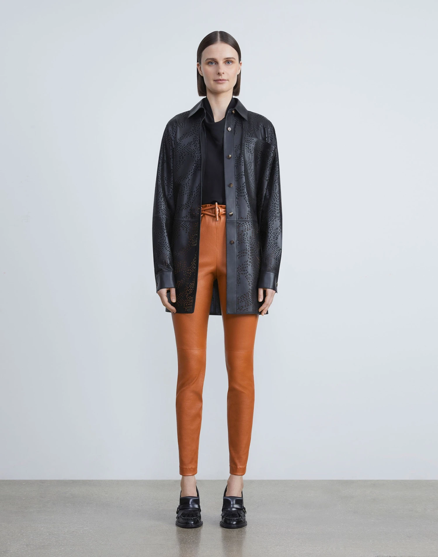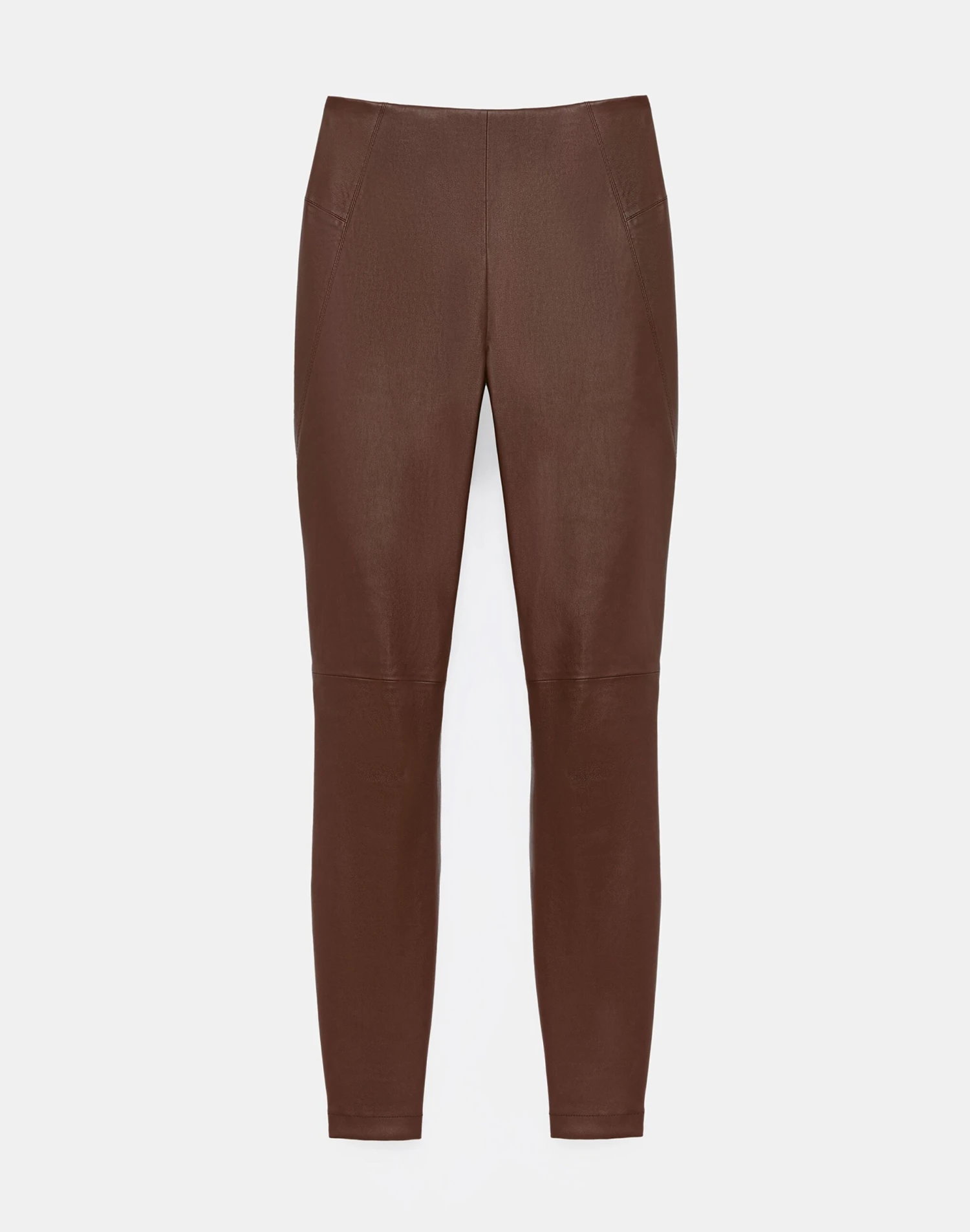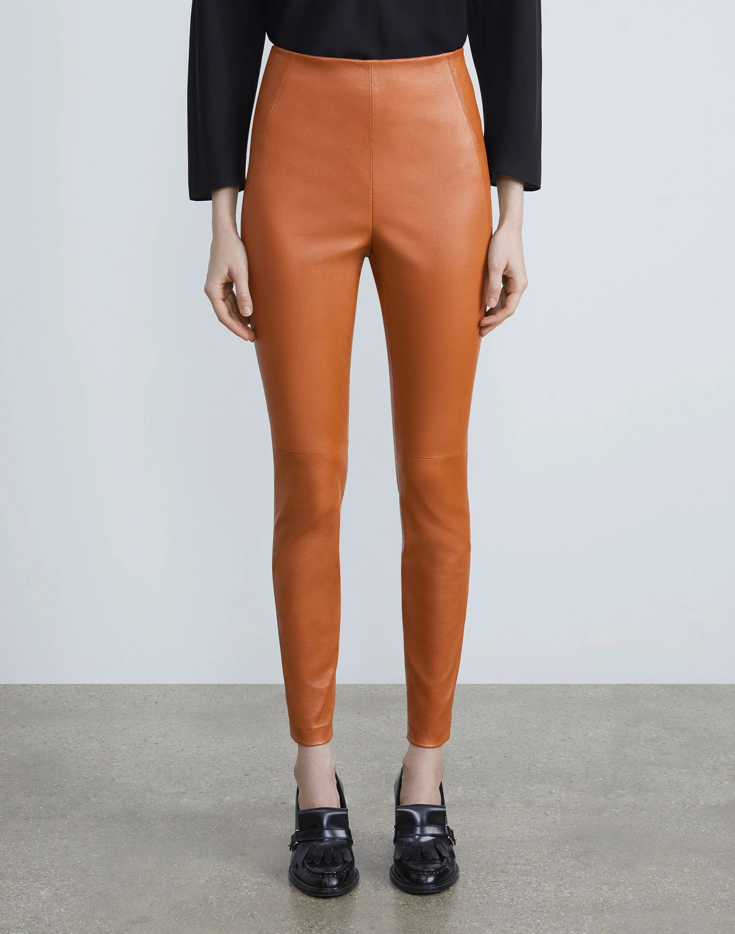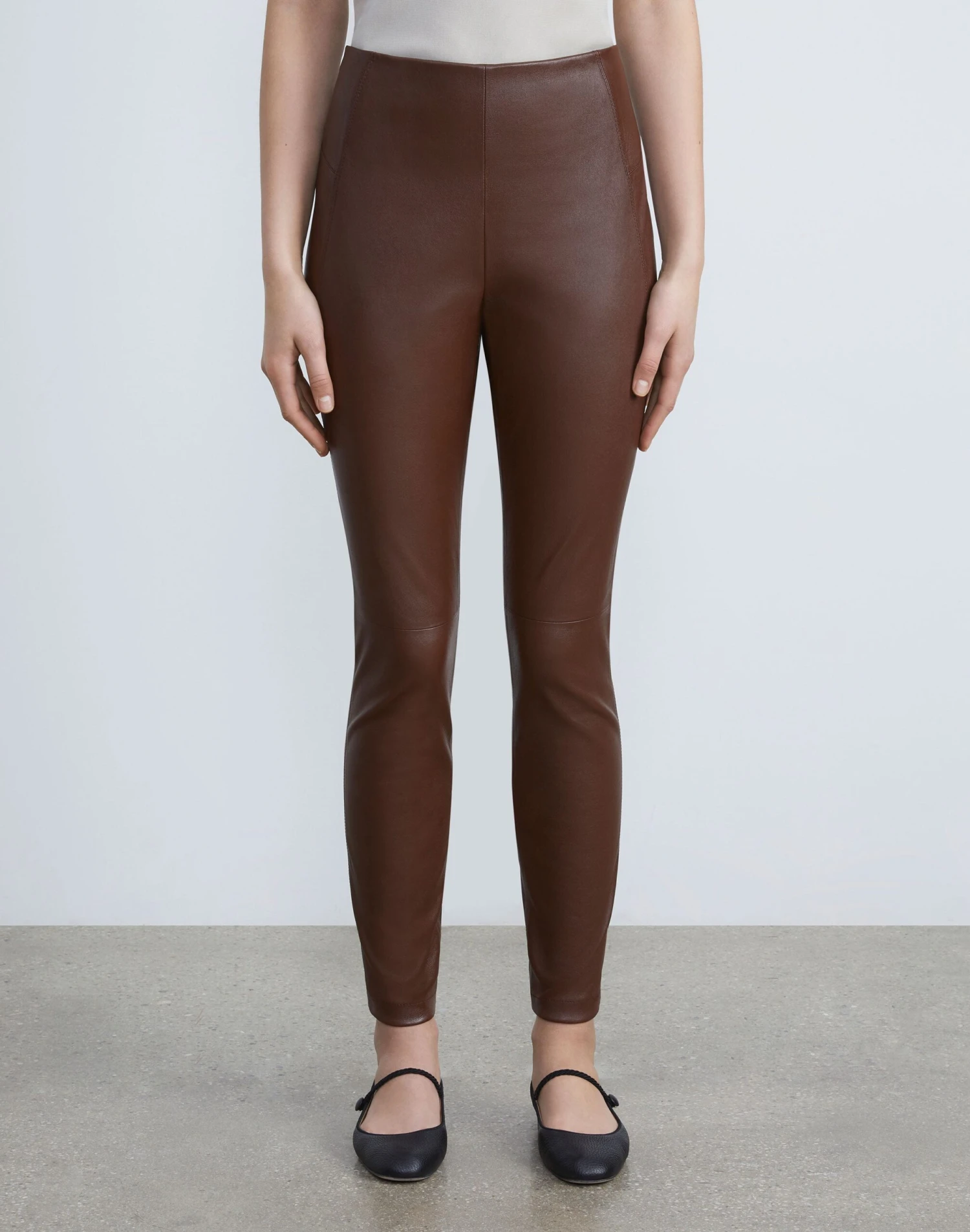 Sculpted seams render a flattering, slim fit in the ankle-length Greenwich legging. The elongating, pull-on design is expertly cut in sleek, Italian stretch nappa leather with a rich sheen and fashioned with an elasticized waist for ease of wear.