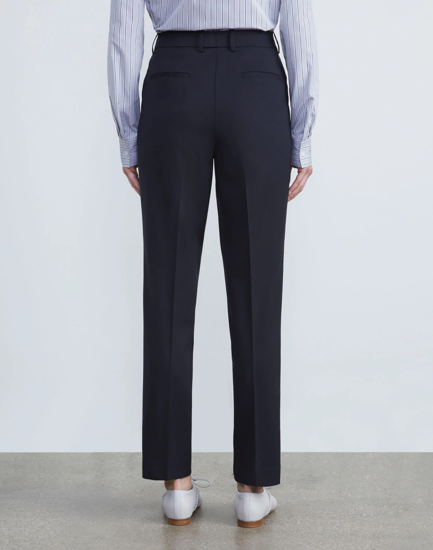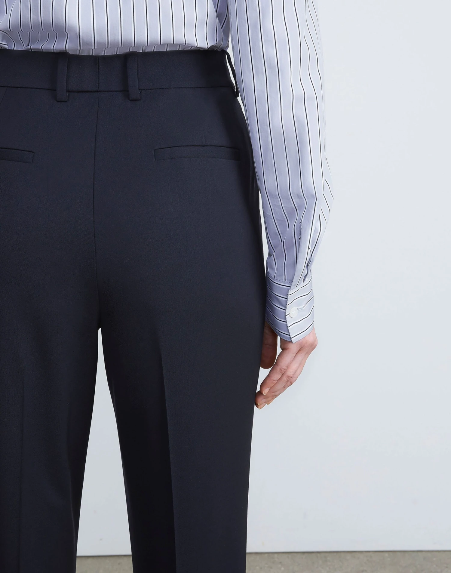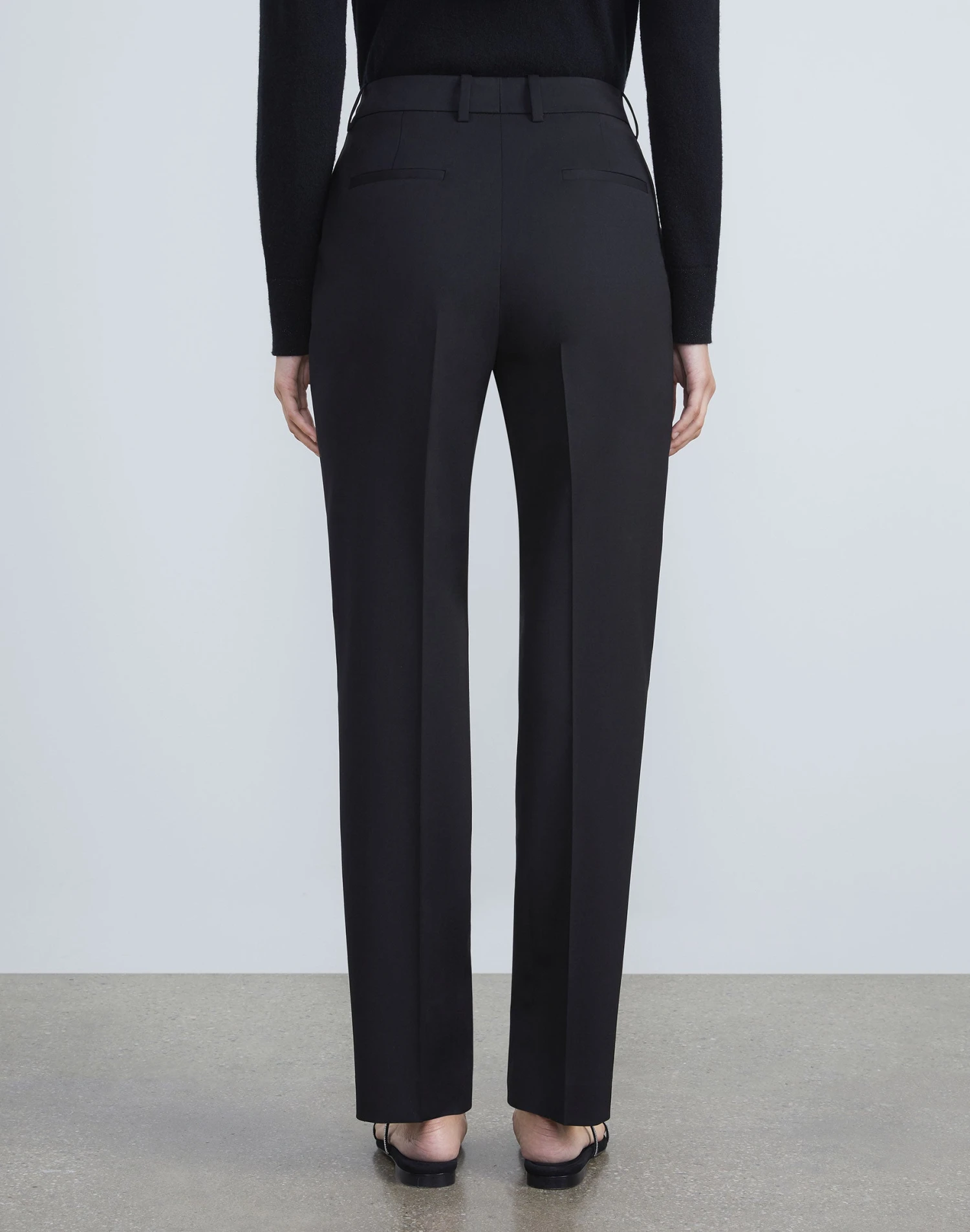 Beloved for its clean lines and flattering construction, the Clinton Pant is updated in a luxuriously refined Italian virgin wool suiting with a hint of stretch. It’s impeccably tailored with a sculpting high-rise and a modern, straight-leg fit.