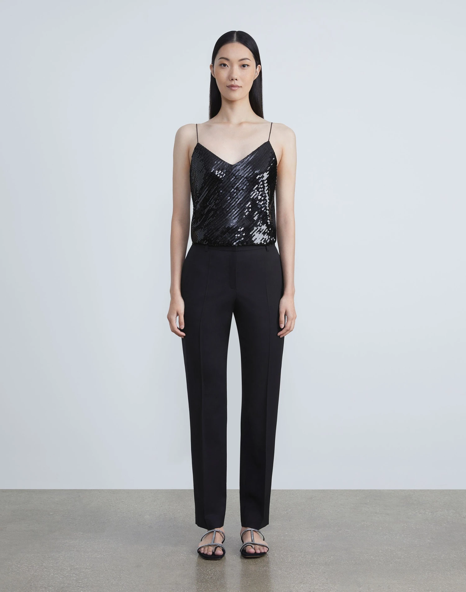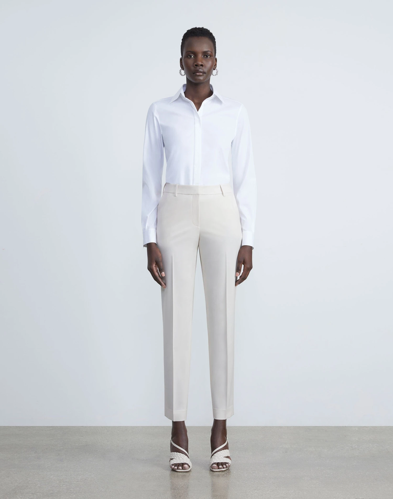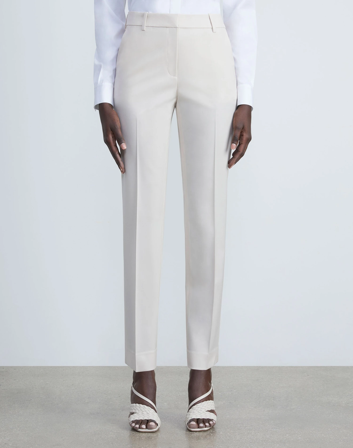 Beloved for its clean lines and flattering construction, the Clinton Pant is updated in a luxuriously refined Italian virgin wool suiting with a hint of stretch. It’s impeccably tailored with a sculpting high-rise and a modern, straight-leg fit.