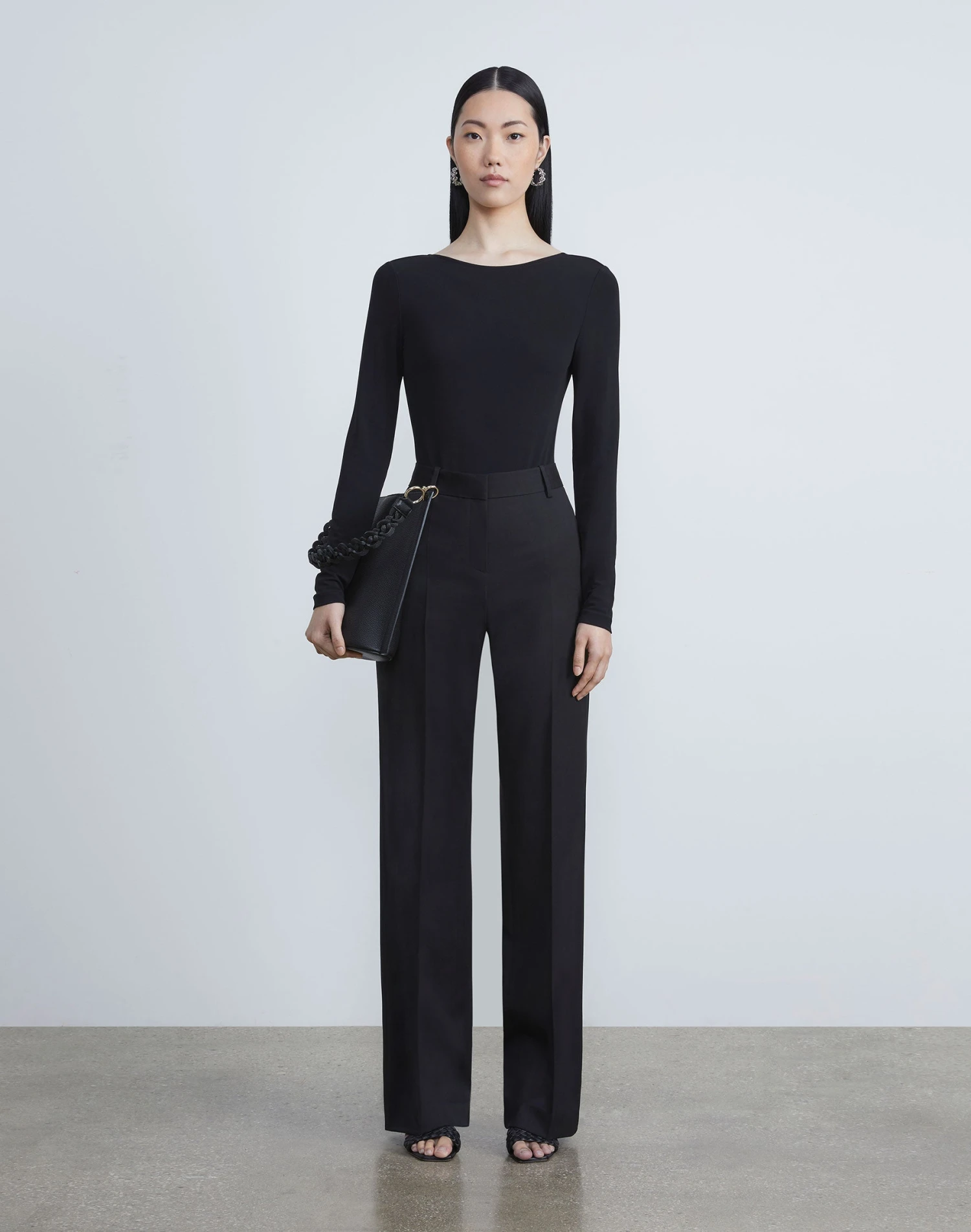 With a fluid fit and elongated design, the Gates Pant offers a fashion-forward twist on menswear-inspired tailoring. It’s crafted in the finest Italian wool—softly structured, with a crisp hand and hint of stretch—and flawlessly constructed with a flattering high-rise and clean finishes.