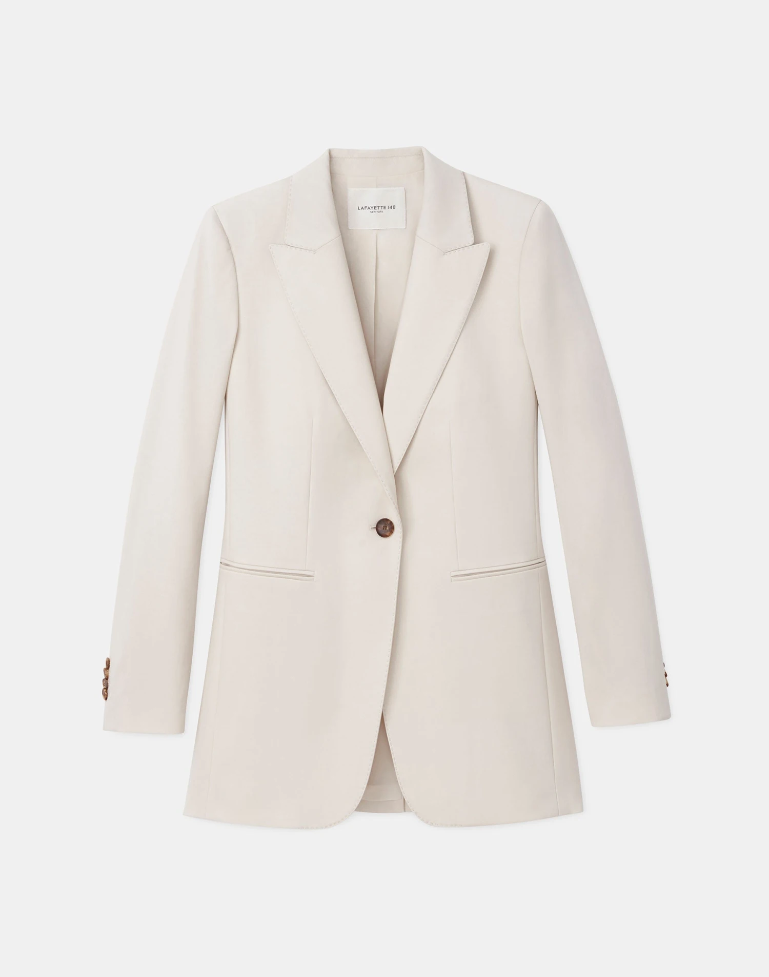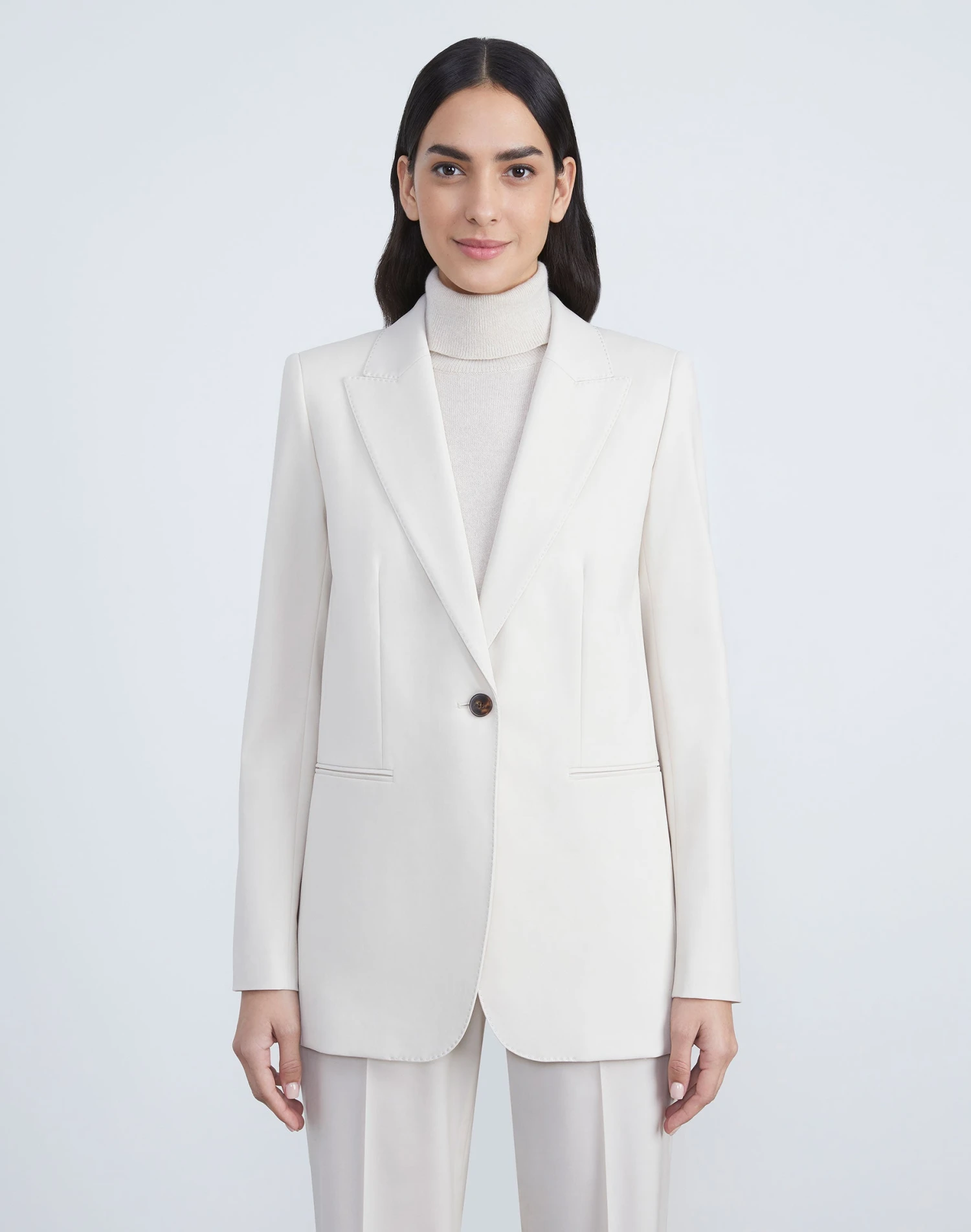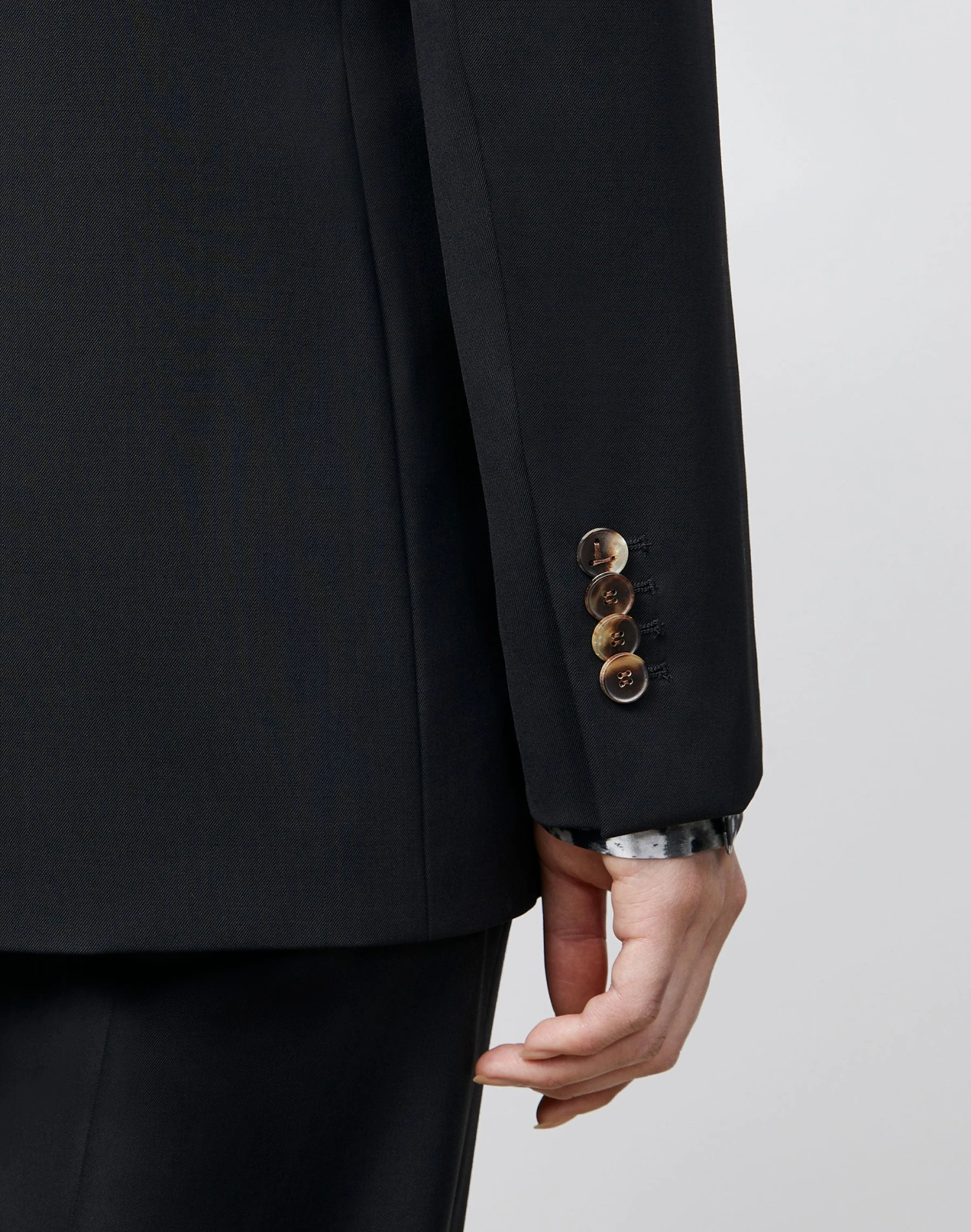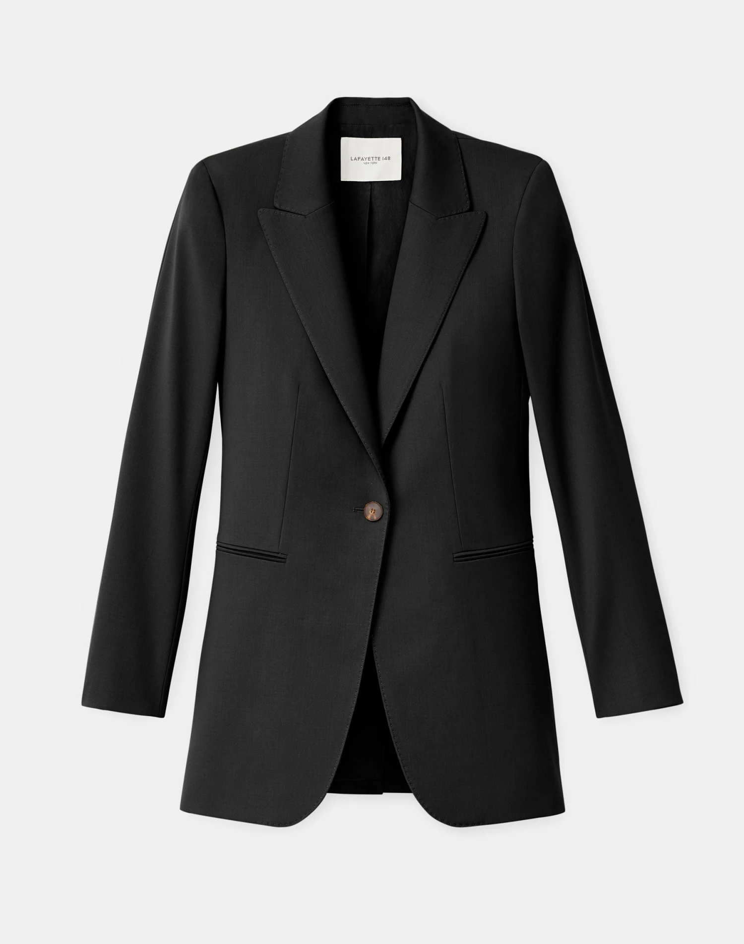 An exceptionally refined foundation piece, this single-button blazer is crafted from ultra-refined Italian wool suiting. It’s expertly tailored with softly structured shoulders, architectural lapels and hand-finished pickstitching.