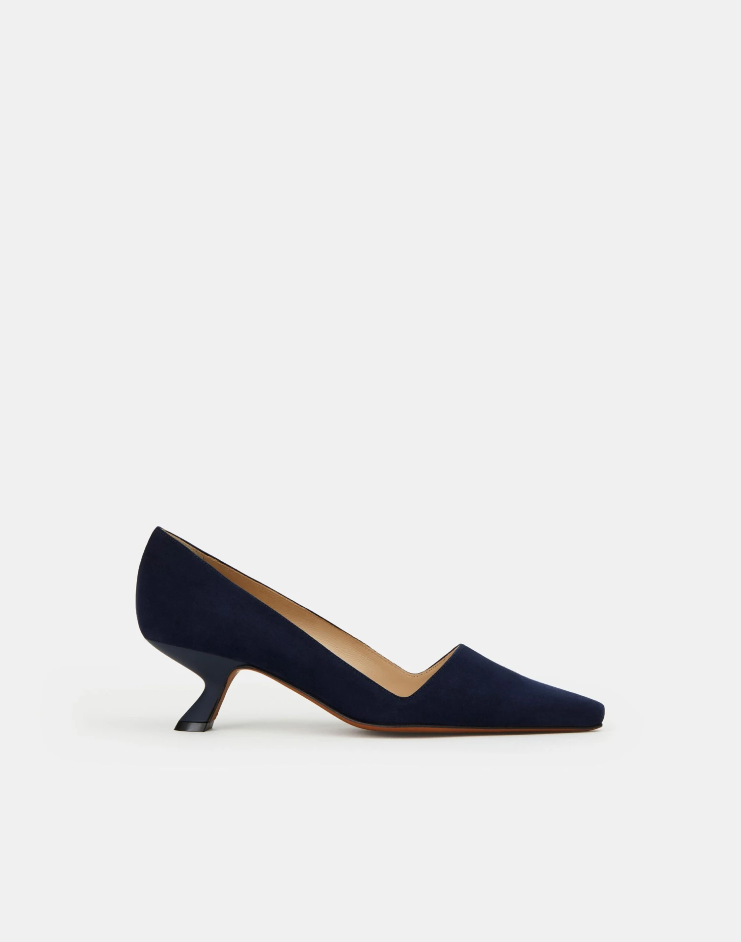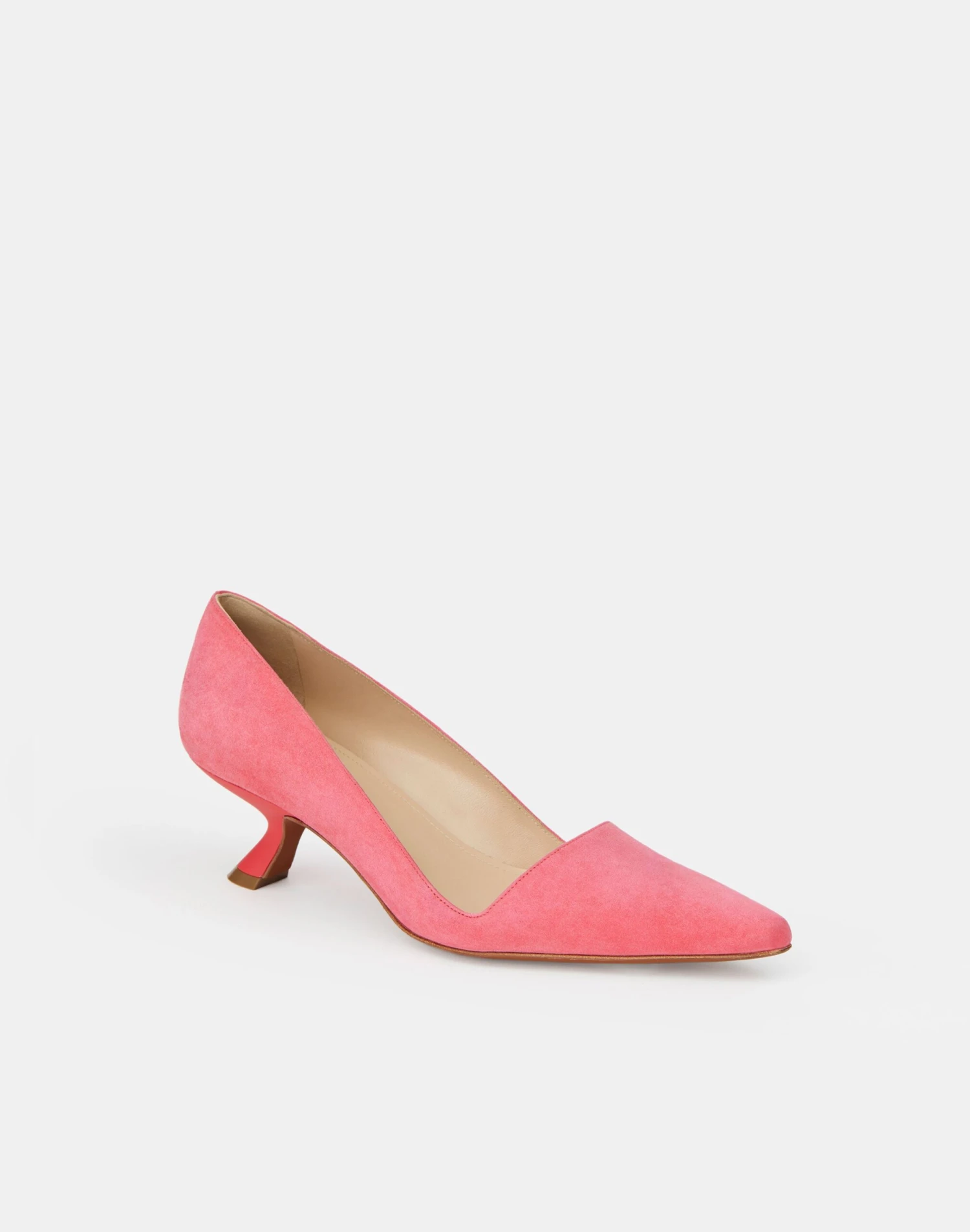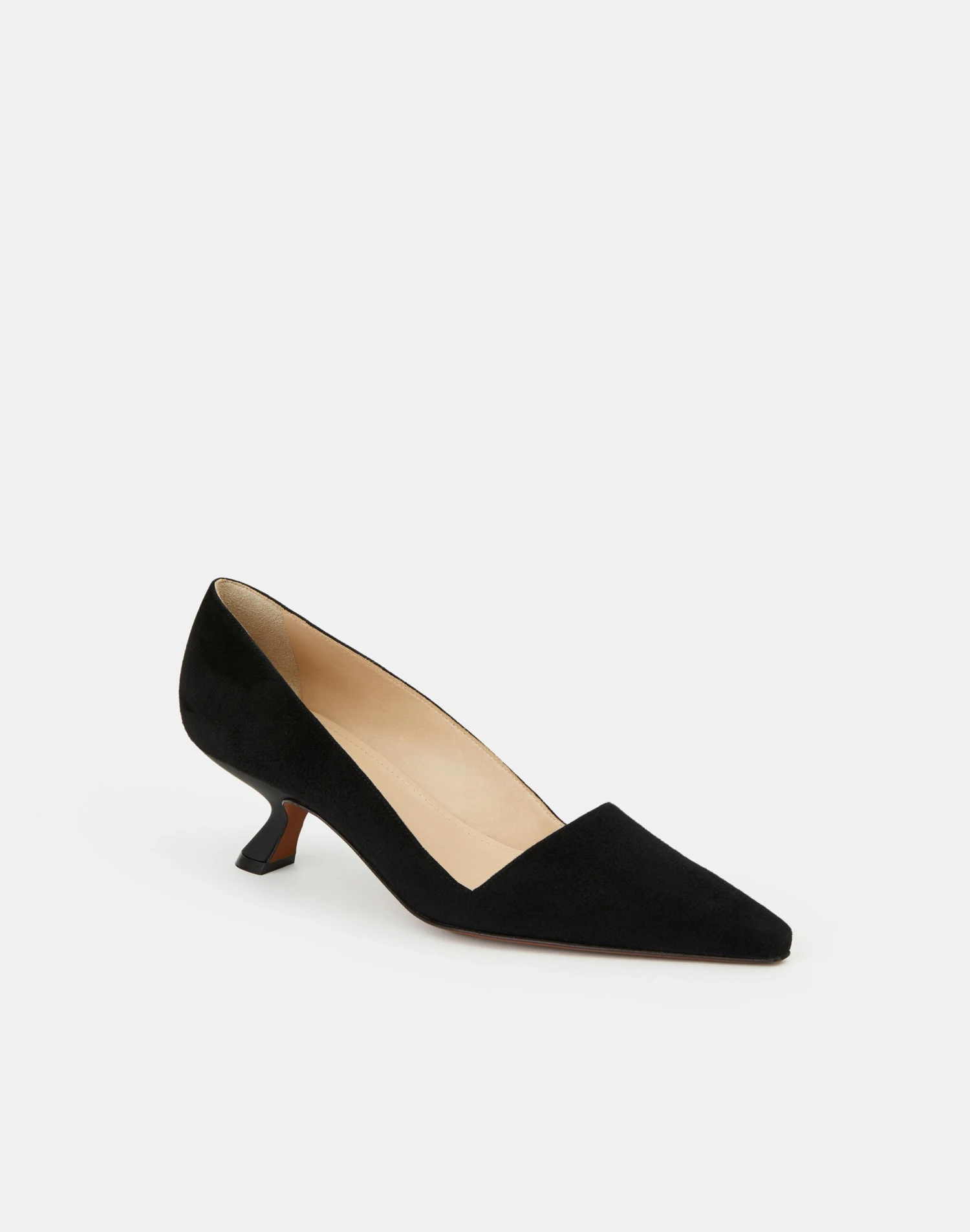 Defined by impeccable Italian craftsmanship, curved lines and sculptural design, this modern pump is set on L148’s signature petite, icon heel. Beautifully constructed in plush suede, the pointed-toe silhouette is lined in softly structured leather and finished with a cushioned footbed and flawless fit.