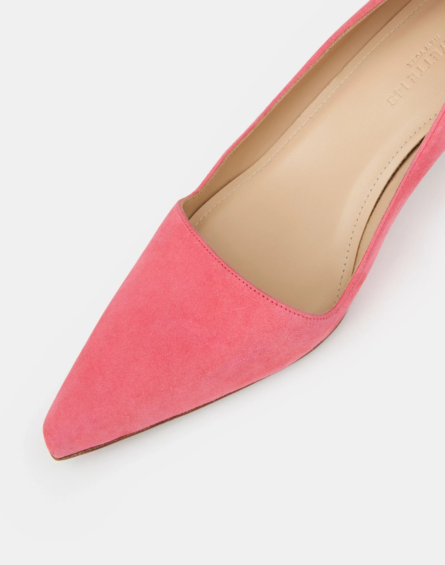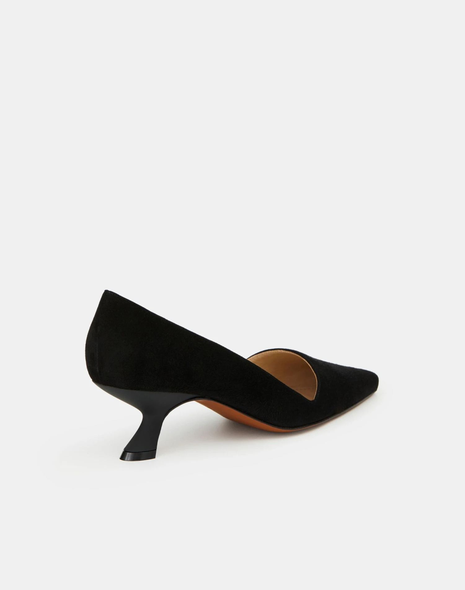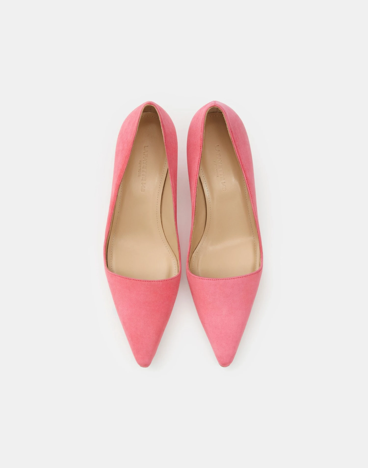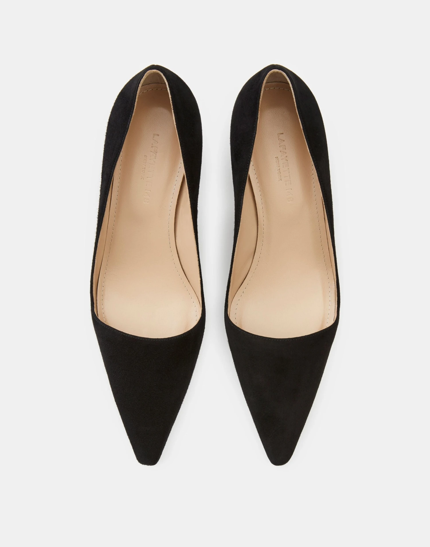 Defined by impeccable Italian craftsmanship, curved lines and sculptural design, this modern pump is set on L148’s signature petite, icon heel. Beautifully constructed in plush suede, the pointed-toe silhouette is lined in softly structured leather and finished with a cushioned footbed and flawless fit.