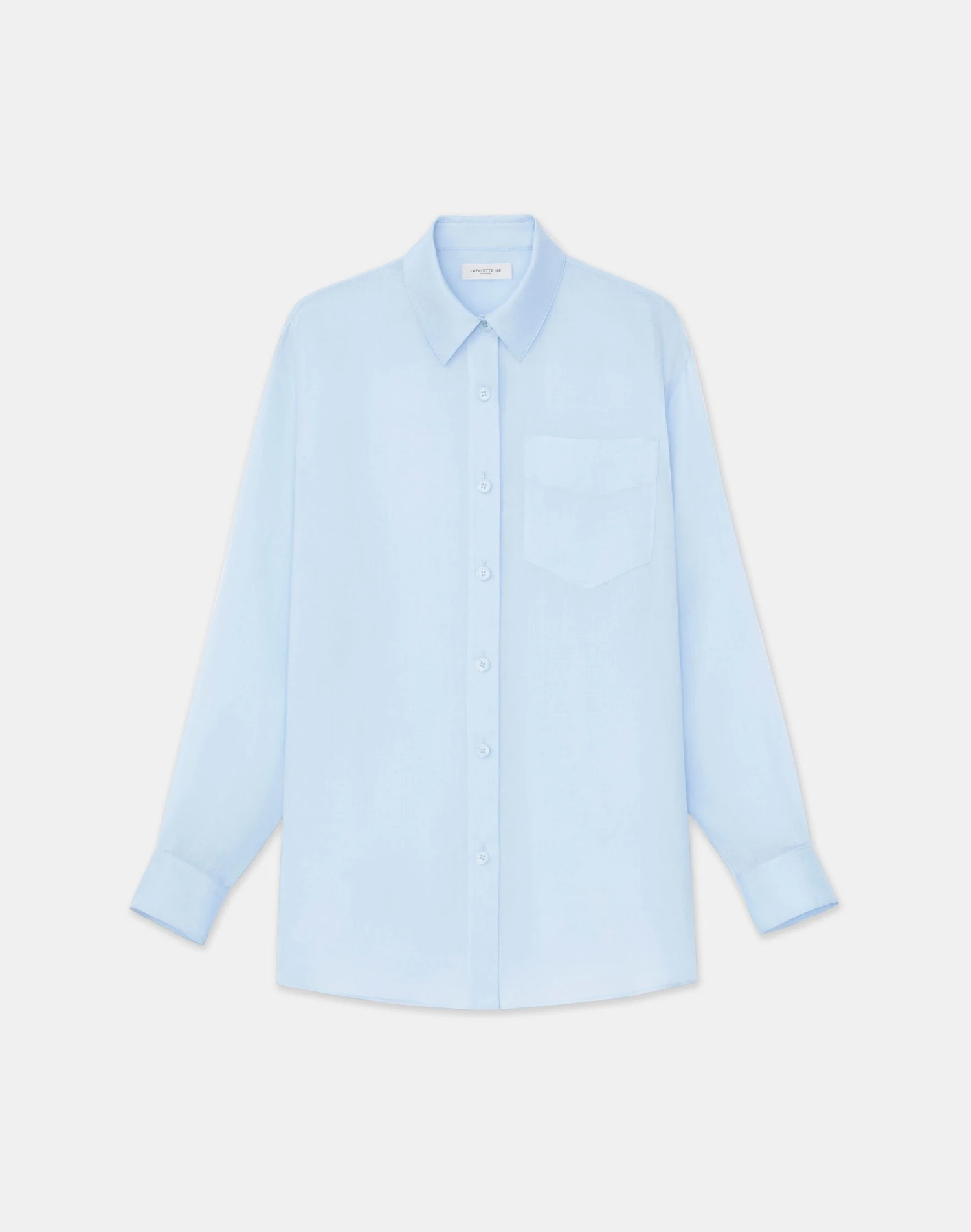 L148’s uniform codes and modern proportions define this button-front shirt, precision cut in an oversized silhouette with a dropped back hem. It’s crafted from soft, weightless sustainable Gemma Cloth Voile and clean-finished with a shirt collar, button cuffs and single patch pocket.