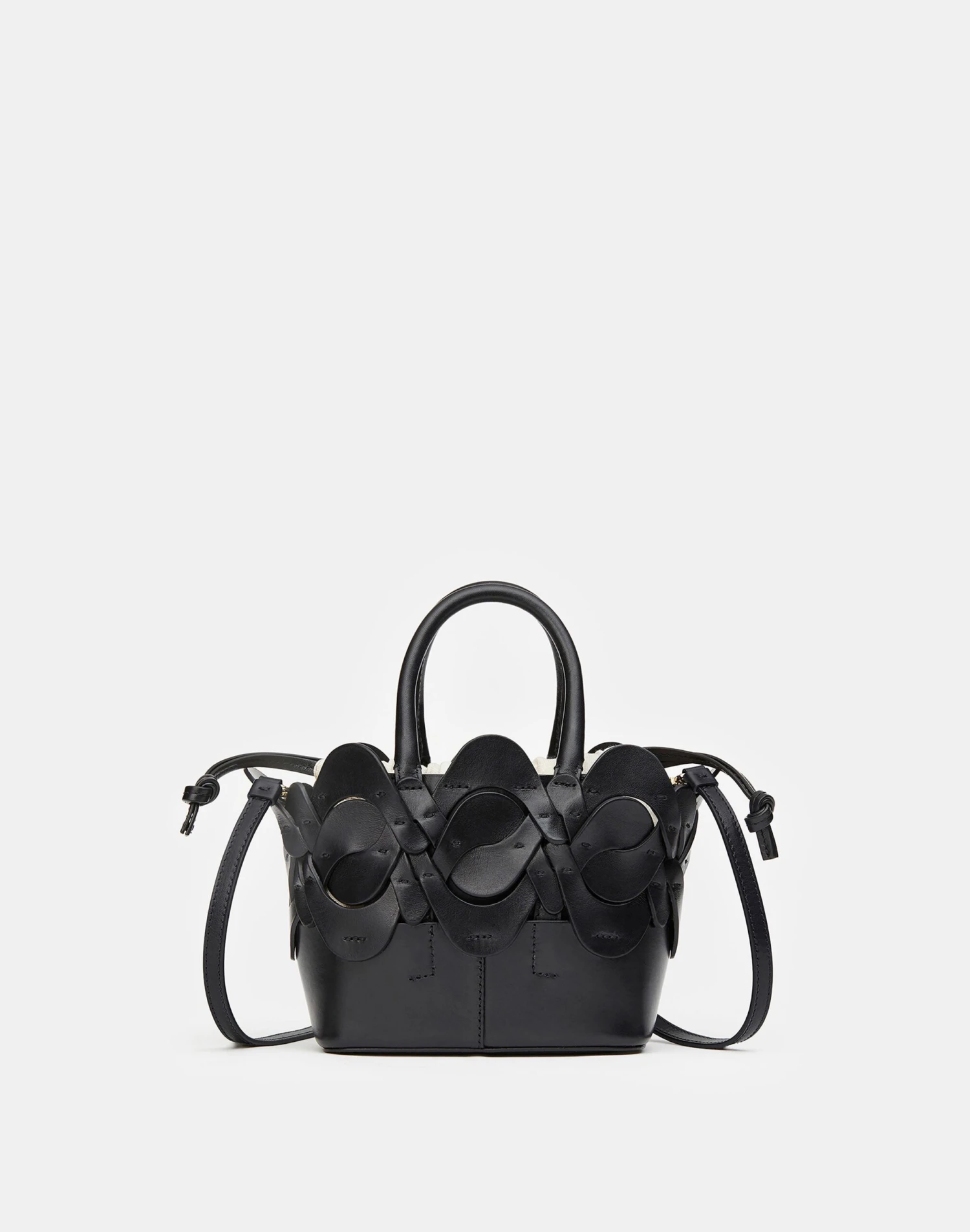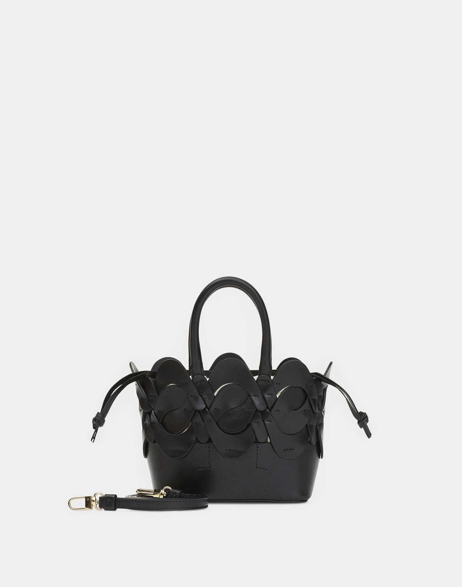 - Detachable crossbody strap w/ lobster clasp; 22.5″ drop