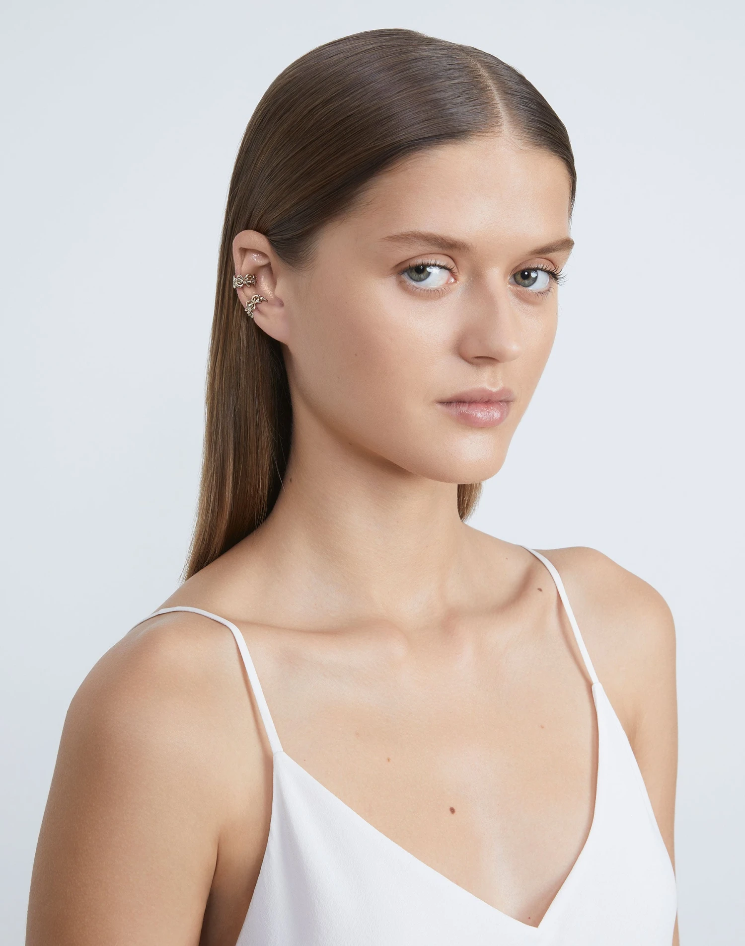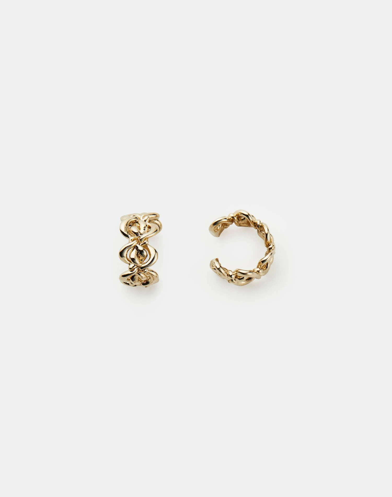 Crafted in Italy, this pair of ear cuffs features the L148 8 Knot icon—a symbol of unbreakable strength—with artisanal etching to create a textural woven effect. The sculptural pair is polished in gold-tone metal, and features a slip-on design that’s striking alone and effortless to pair.